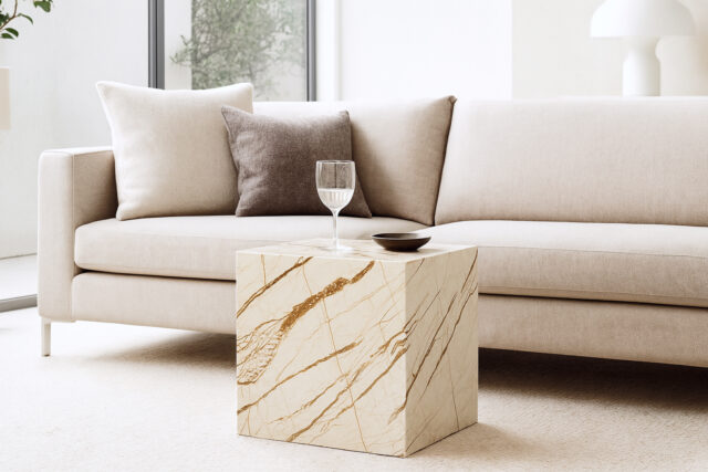 Saga Round Pedestal Dining Table, Fiore Bianco Marble, 47in