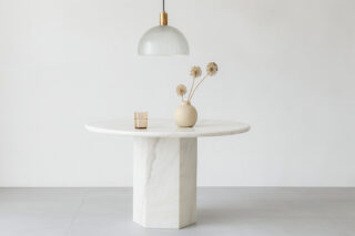 Saga Round Pedestal Dining Table, Travertine, 47in