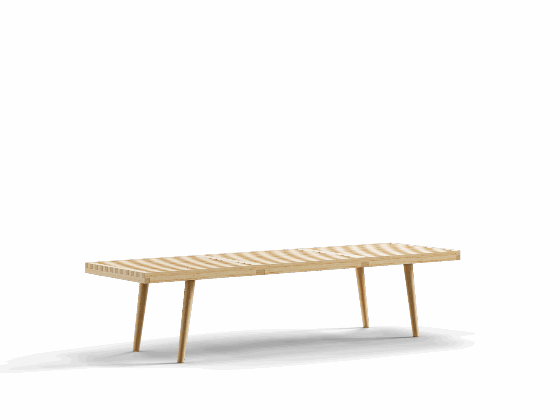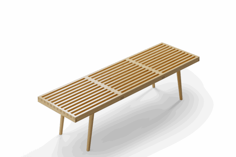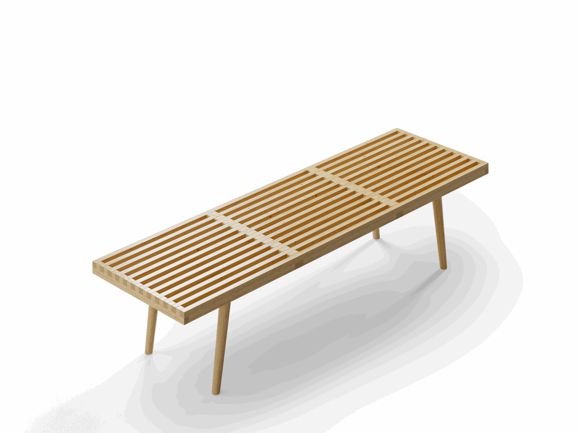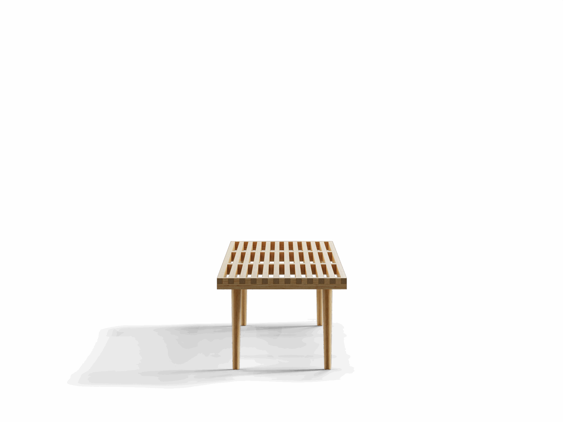 The Platform Bench is based on the classic George Nelson Bench and is the perfect complement for just about any room. Over the years the benches have been used in a variety of spaces, and as such are not just suited to the home environment, but also within commercial offices, bars, and waiting areas. Its clean and unique lines are perfect for accenting any room and will be a perfect fit for any empty space. Open slats with uniform spacing allow air and light to pass through.This item is not manufactured by or affiliated with the original designer(s) and associated parties.