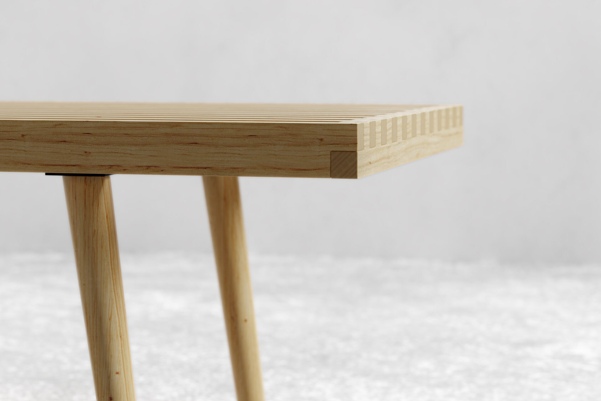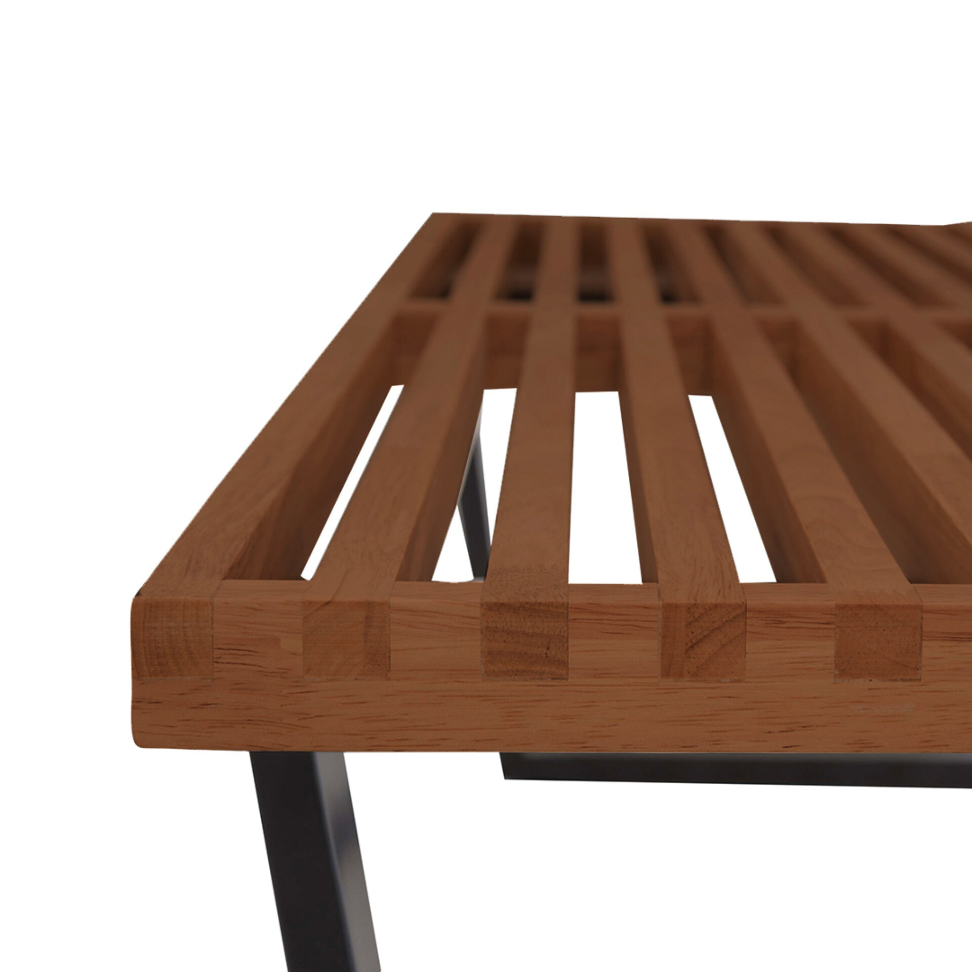 The Platform Bench is based on the classic George Nelson Bench and is the perfect complement for just about any room. Over the years the benches have been used in a variety of spaces, and as such are not just suited to the home environment, but also within commercial offices, bars, and waiting areas. Its clean and unique lines are perfect for accenting any room and will be a perfect fit for any empty space. Open slats with uniform spacing allow air and light to pass through.This item is not manufactured by or affiliated with the original designer(s) and associated parties.