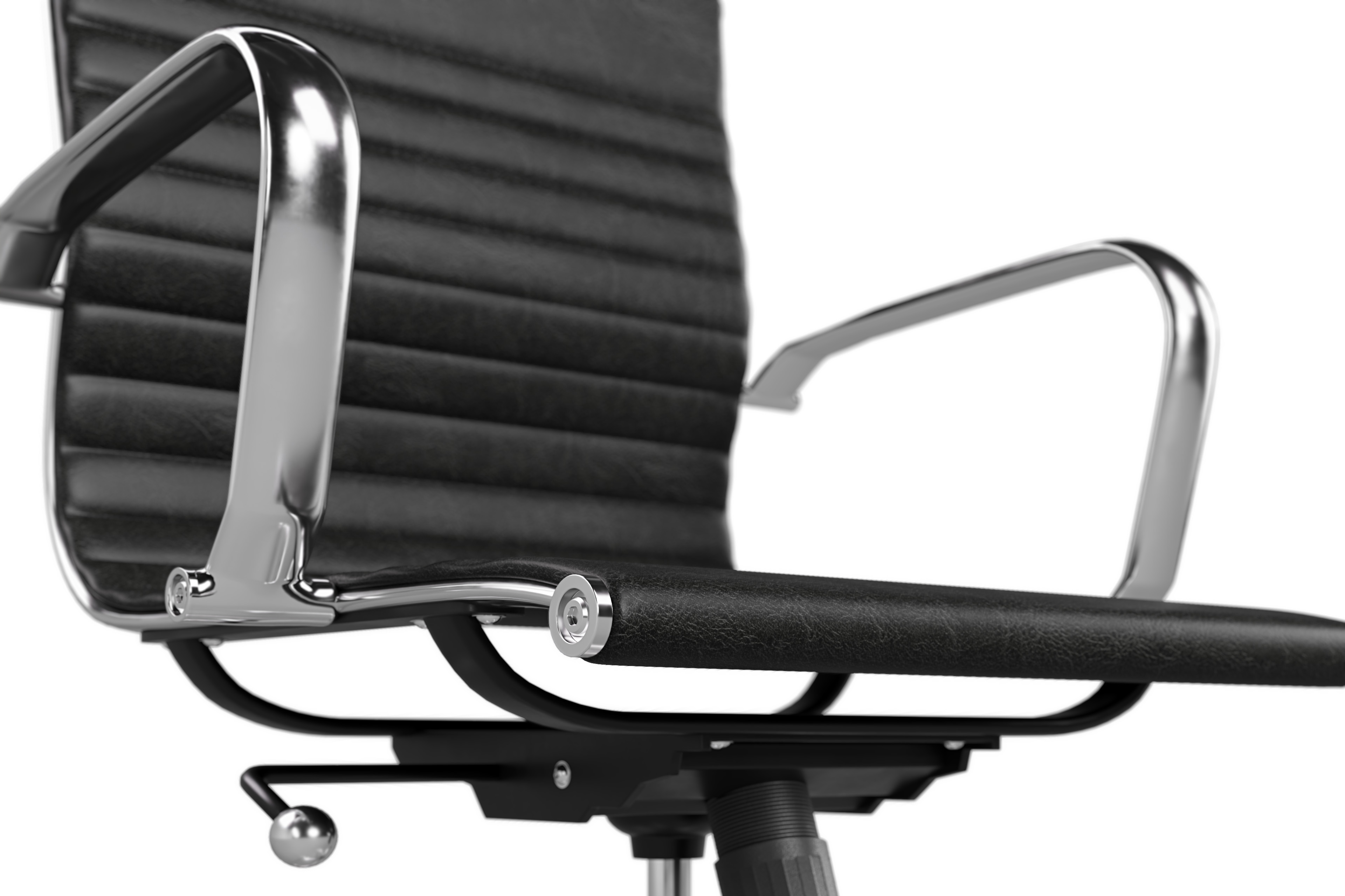 Crafted from high-quality vegan leather and supported by a sturdy chrome-finish base, our ribbed office chair embodies sleek sophistication. The finely contoured ribbed design enhances ergonomic comfort while accentuating its mid-century silhouette — a seamless blend of durability, modern elegance, and everyday performance.