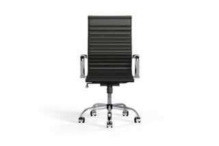 Designed for effortless focus, this black ribbed office chair combines modern ergonomics with timeless style. Its swivel function, silent caster wheels, and adjustable height ensure seamless movement, while the chrome-finish base adds polish. A balance of elegance and function, it transforms daily work into fluid, inspired productivity.
