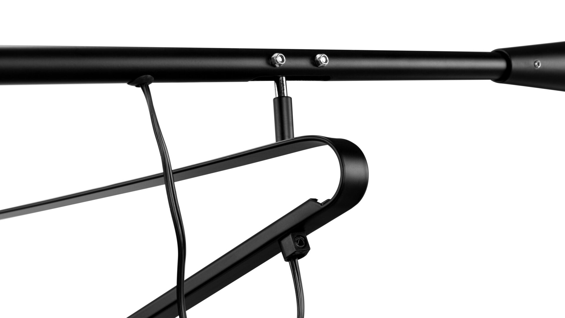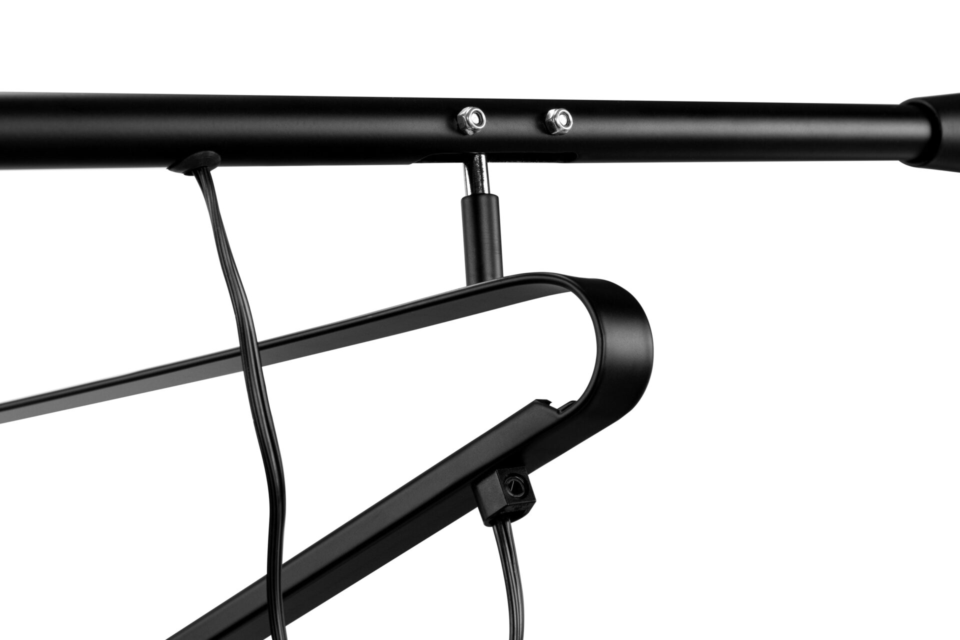 - Material: Black powder coated steel and cast iron counterweight