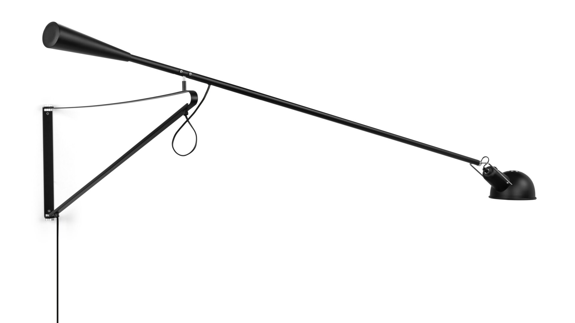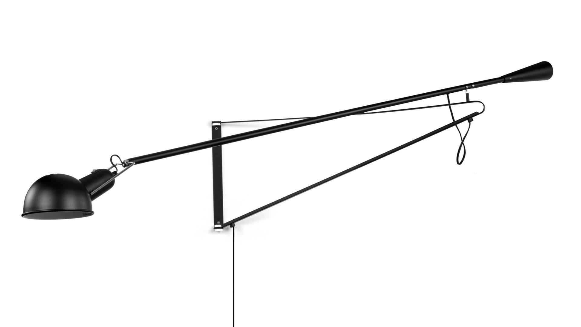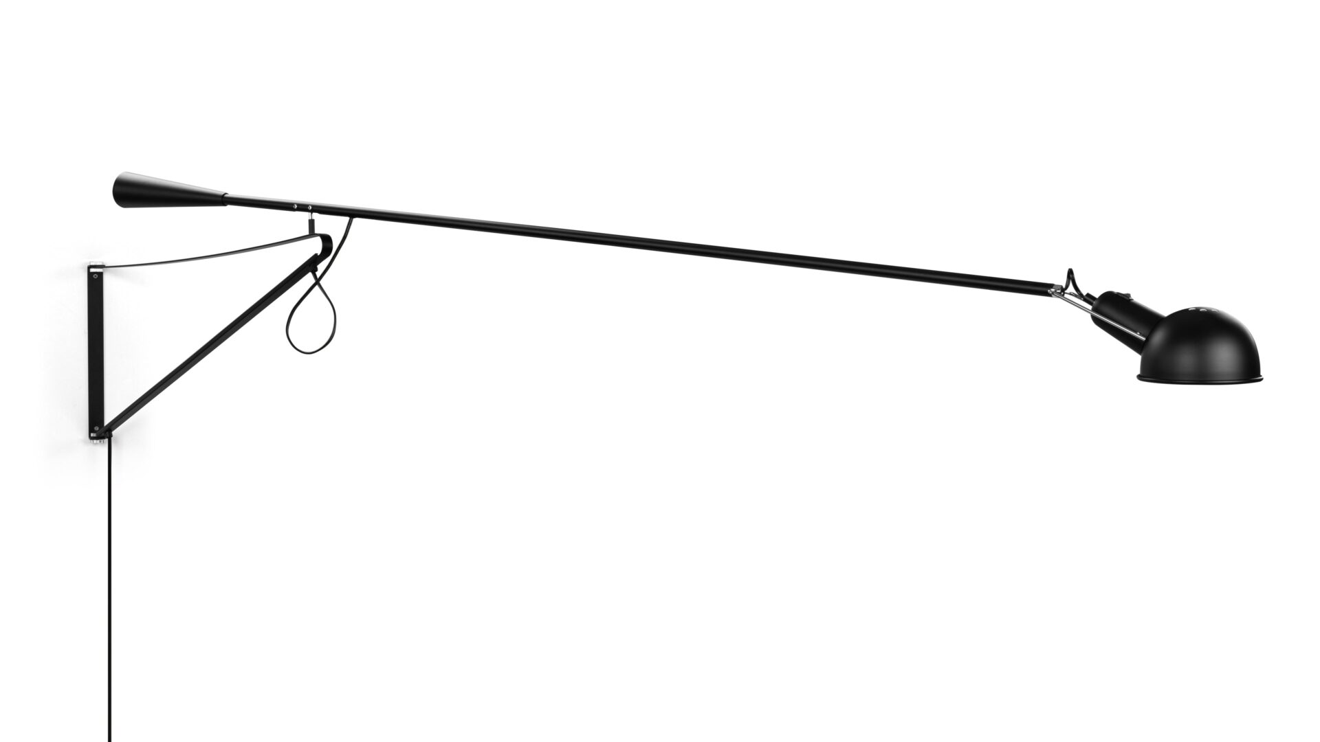 Illuminate your space stylishly with the 265 Wall-Mounted Lamp, boasting an adjustable arm that extends and rotates 360 degrees for focused lighting. The 265 Wall Lamp offers a modern industrial design with clean lines, making a bold statement in any room.