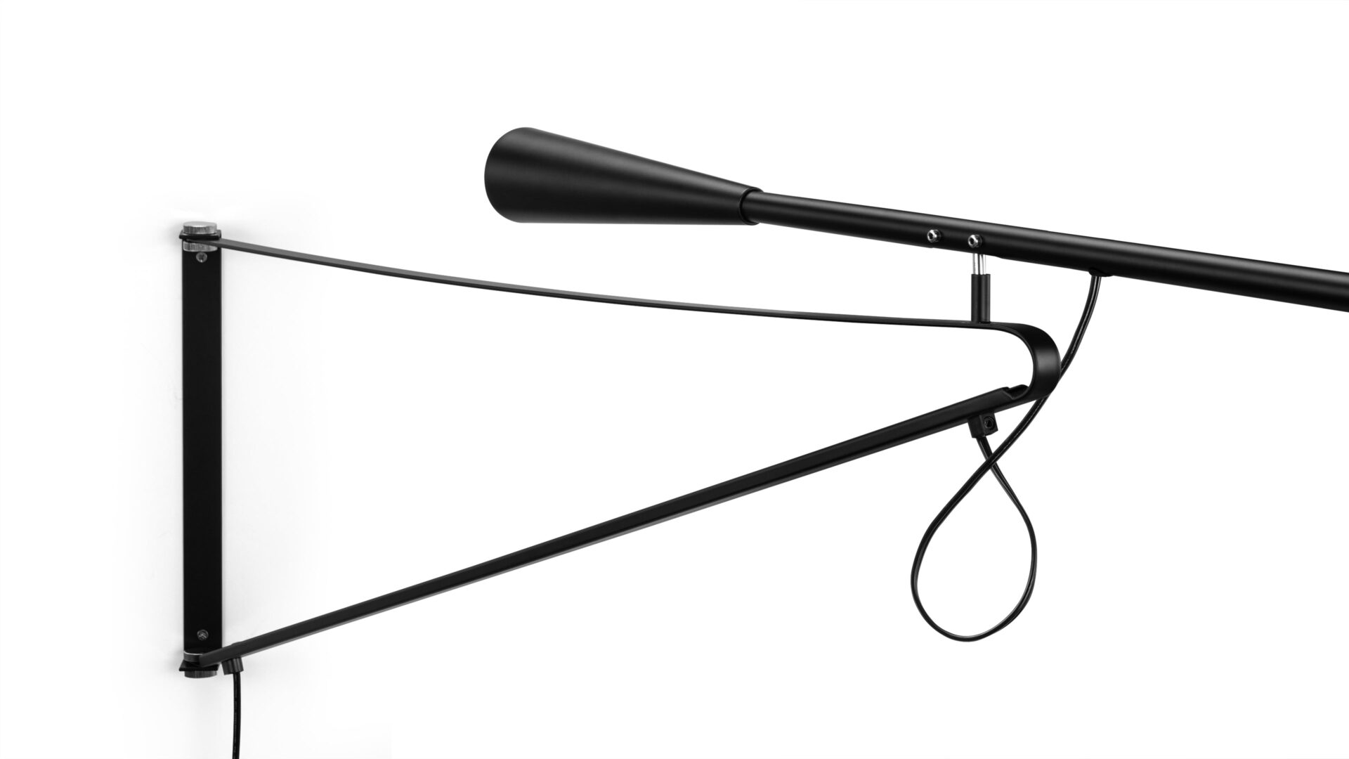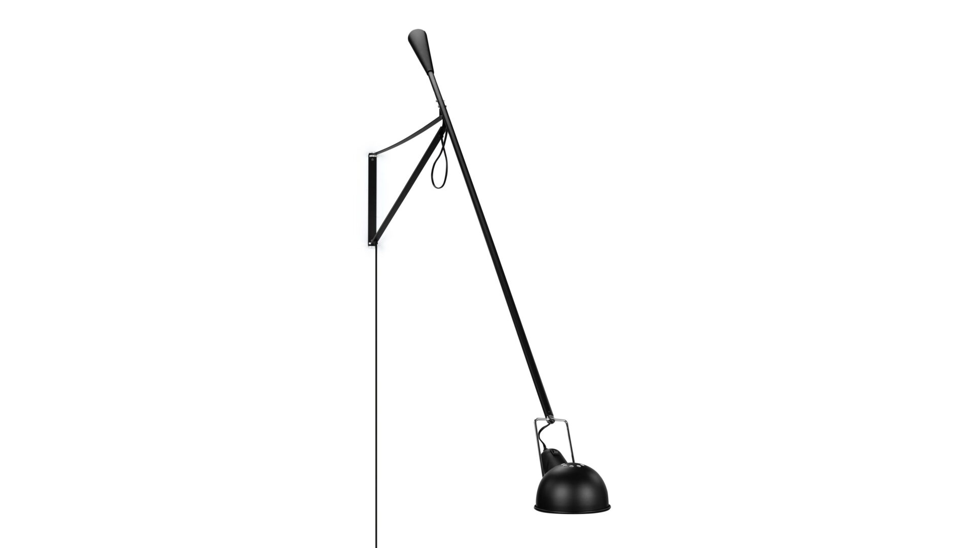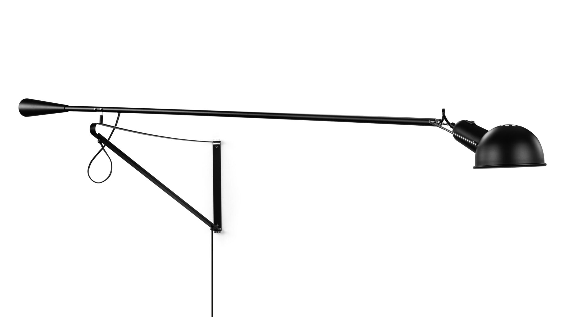Illuminate your space stylishly with the 265 Wall-Mounted Lamp, boasting an adjustable arm that extends and rotates 360 degrees for focused lighting. The 265 Wall Lamp offers a modern industrial design with clean lines, making a bold statement in any room.