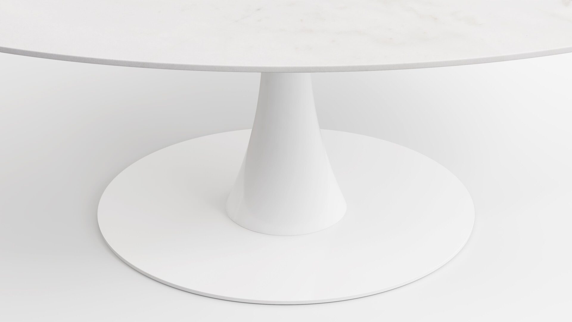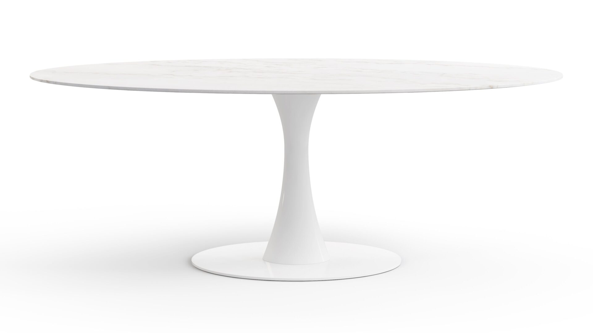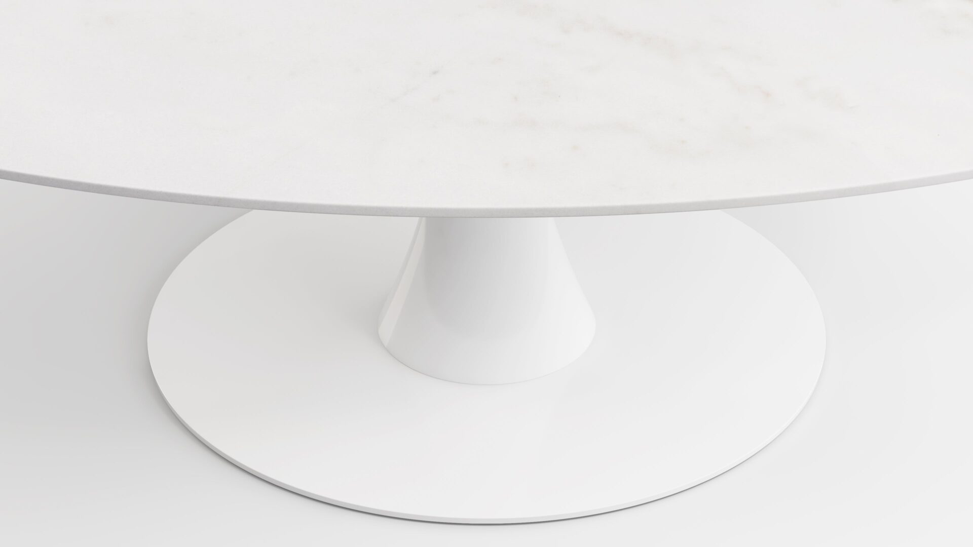 Elevate your space with the sophisticated Aarhus Table featuring a chic design and pedestal base that swaps traditional legs for a sleek yet sturdy central base. Inspired by mid-1950s futuristic aesthetics, this versatile piece doubles as a dining table or contemporary desk alternative, now available in a stunning Calacatta Marble finish. Upgrade your space with this impeccably minimalist, functional, and elegant furniture solution.