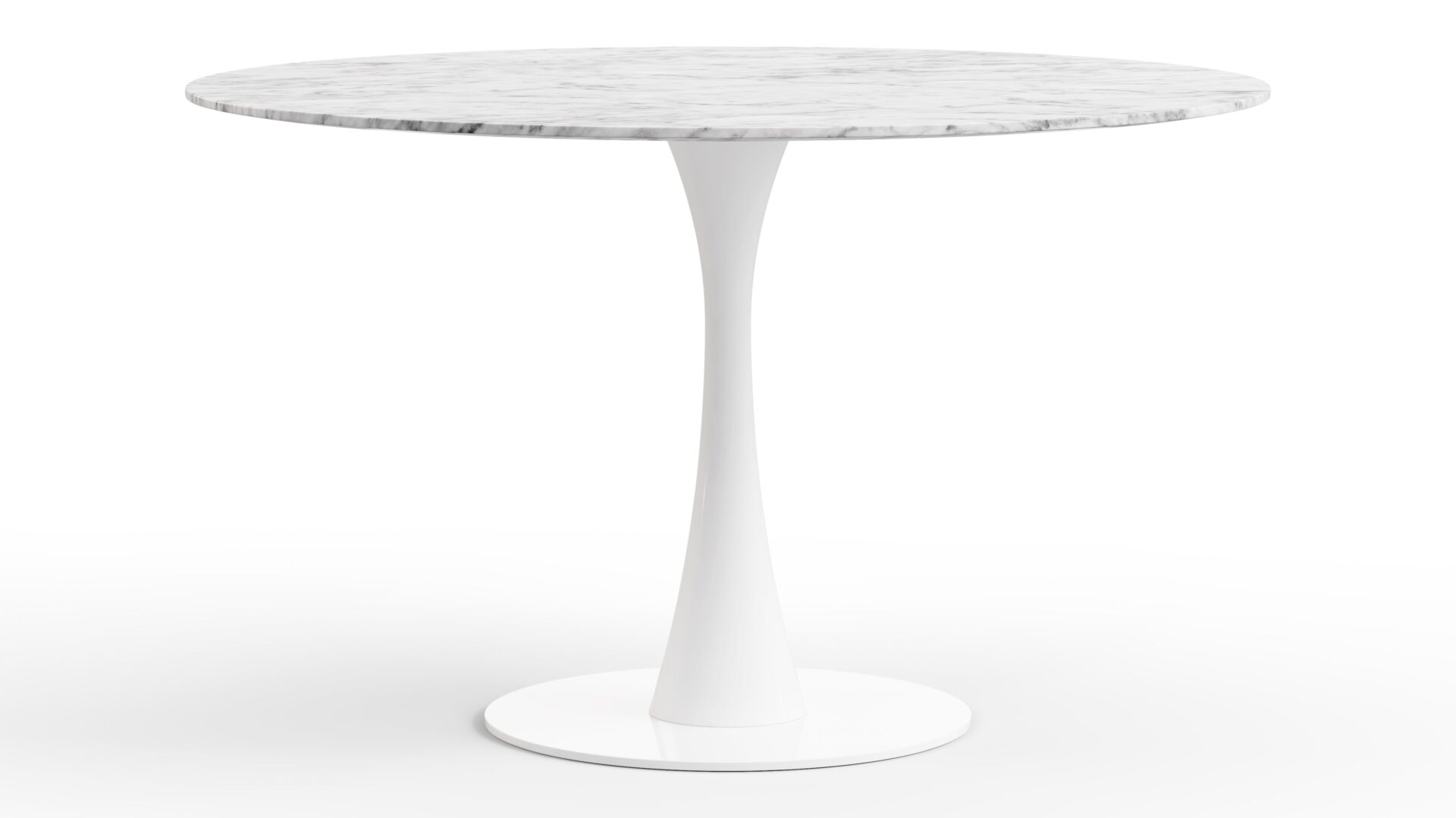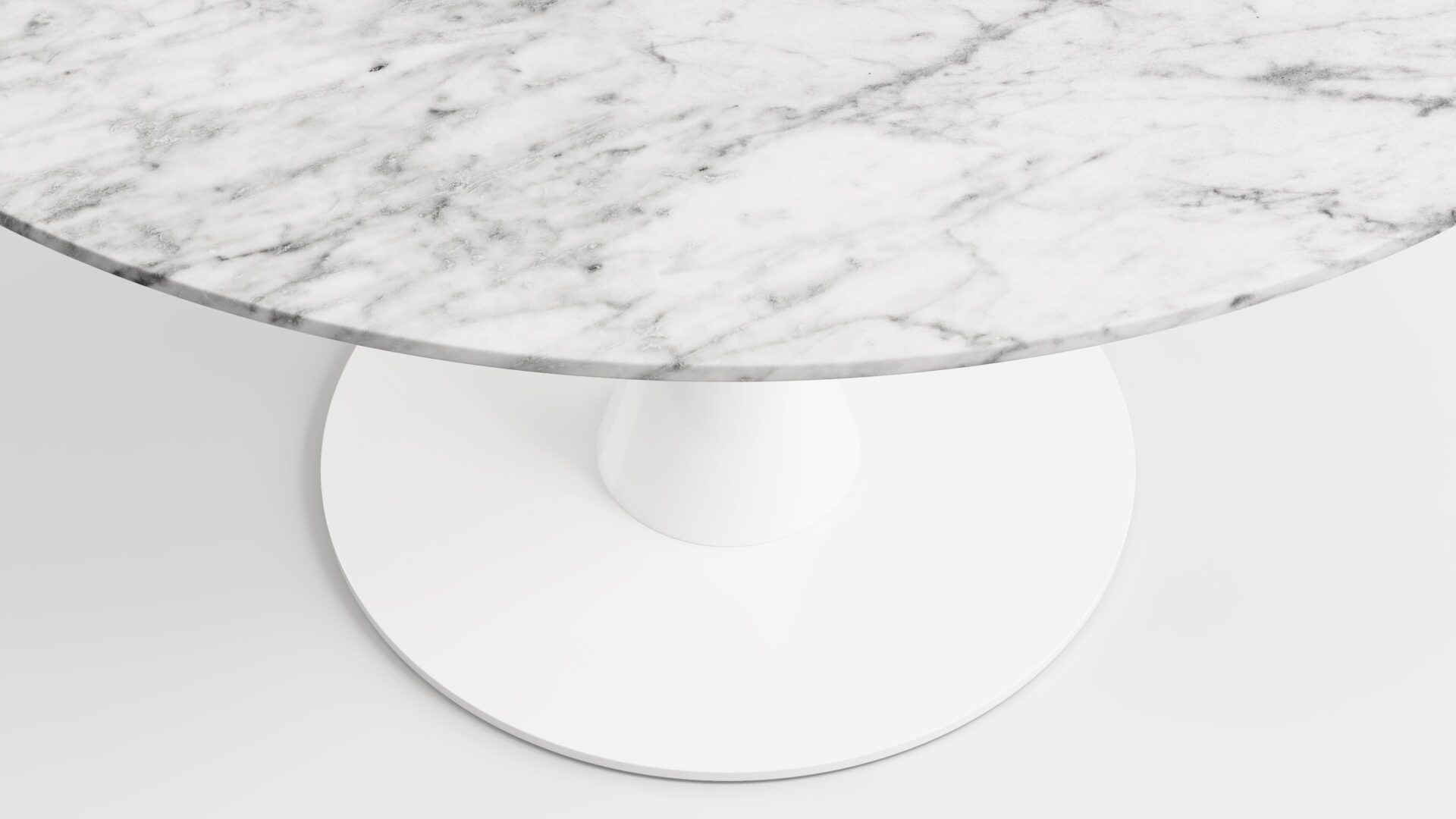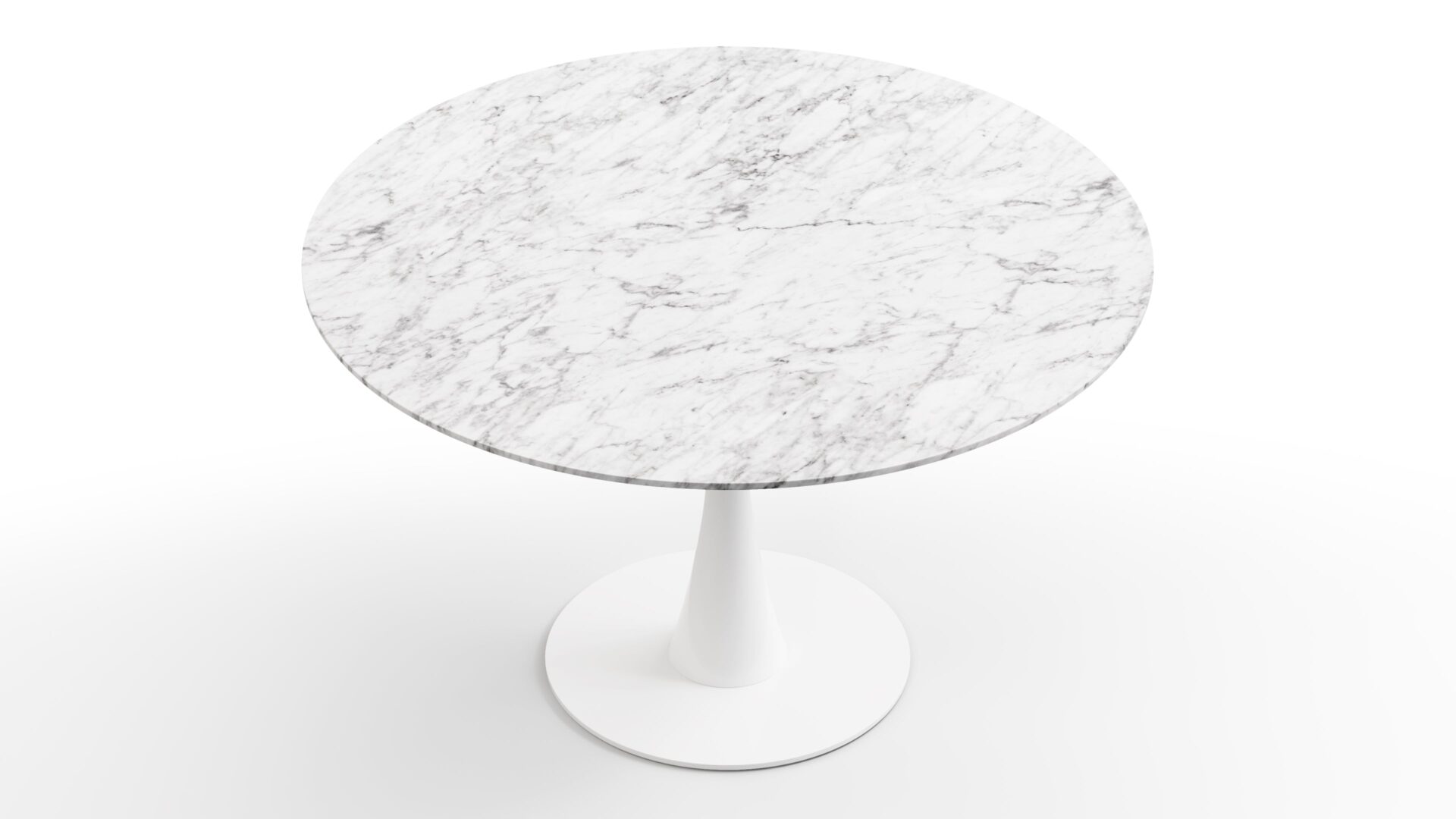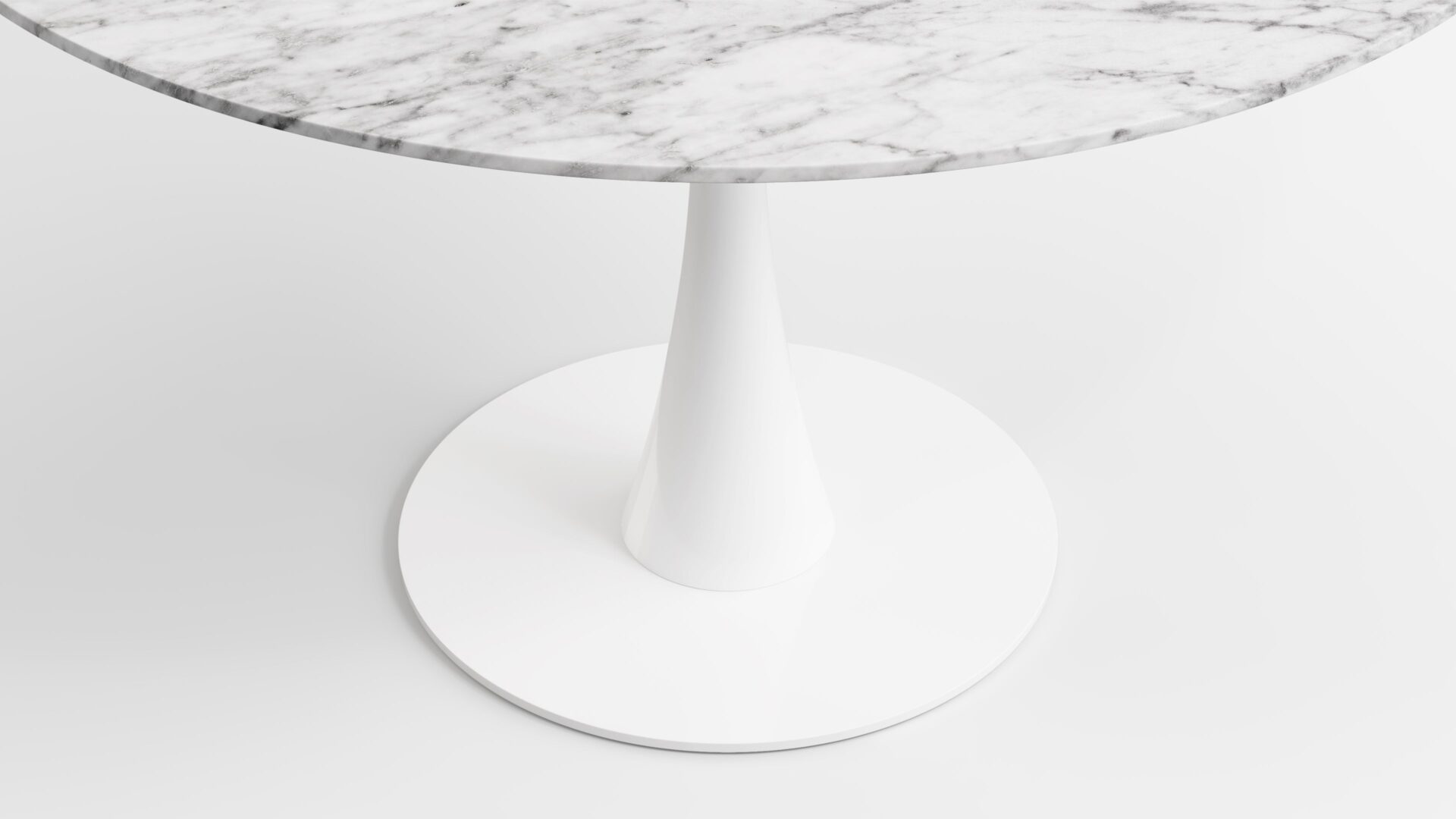 Unveil the Aarhus Table, a sleek and chic centerpiece inspired by futuristic design from the mid-1950s featuring a stunning Carrara Marble tabletop. This minimalist piece elevates any space with its pedestal base, offering a contemporary dining or desk solution. Versatile, elegant, and easy to maintain, the Aarhus Table promises timeless style and functionality for your modern lifestyle.
