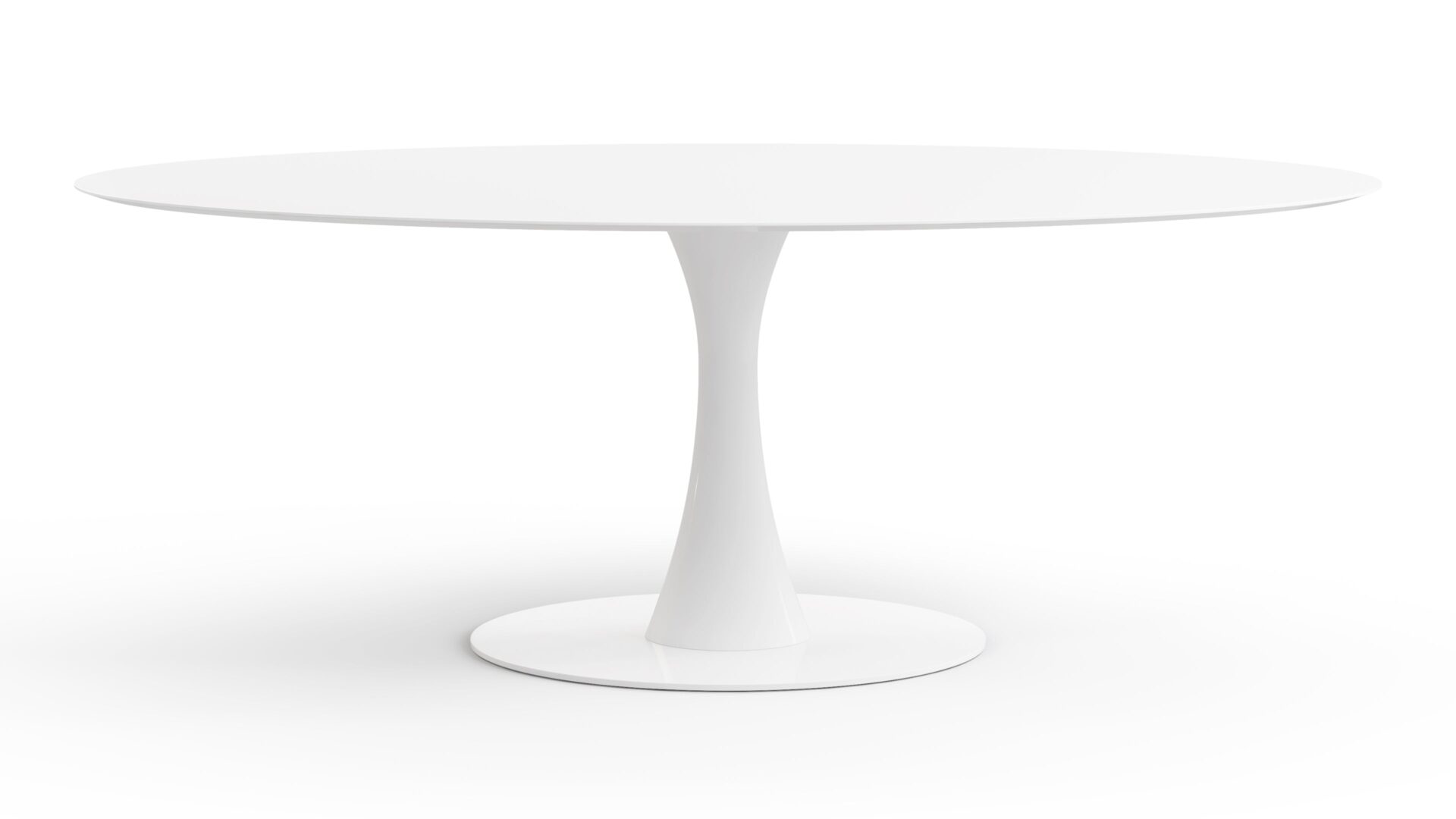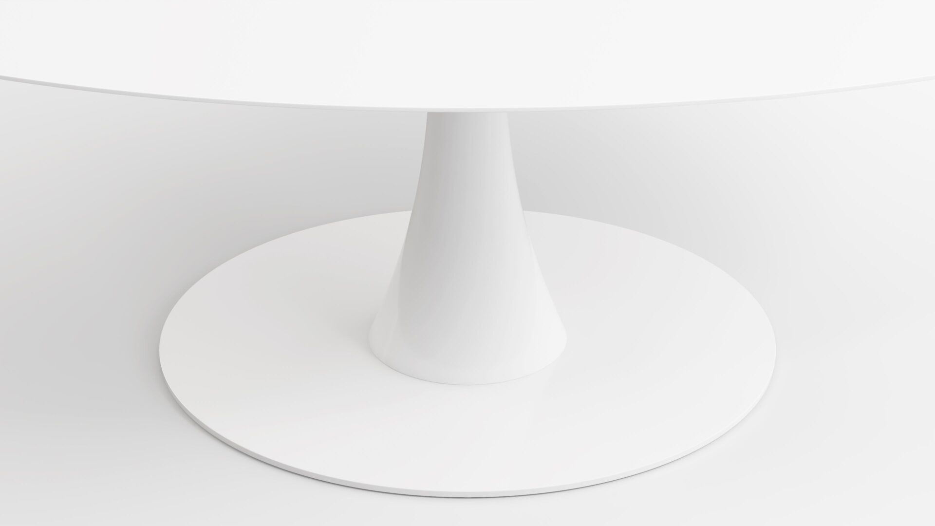 Introducing the Aarhus Table, a modern marvel boasting a chic design and pedestal base that stylishly replaces conventional table legs for a streamlined dining or workspace experience. Inspired by mid-century futuristic aesthetics, this table in a White Lacquer finish offers versatility, elegance, and a minimalist touch to transform your space effortlessly. Resilient, timeless, and adaptable, the Aarhus Table is your go-to furniture solution that promises enduring quality in a busy lifestyle.