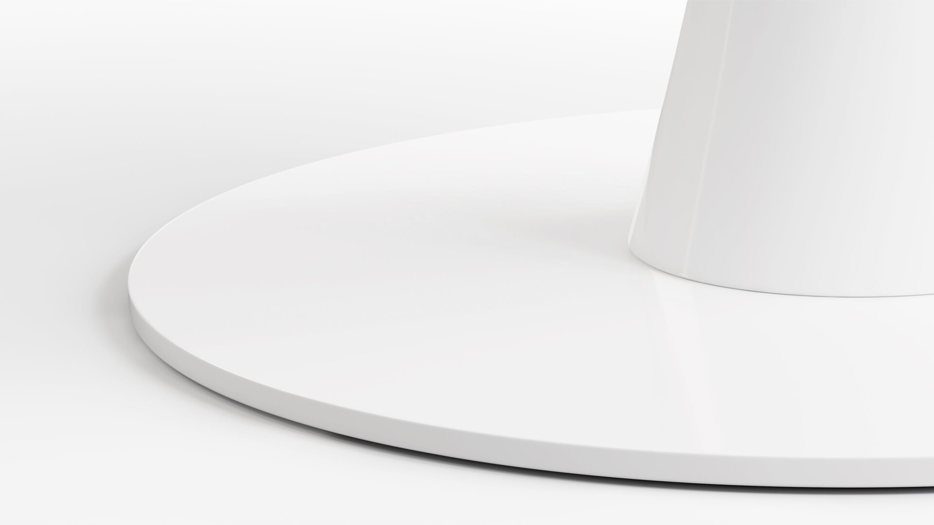 Revamp your space with the Aarhus Table, boasting a chic design and sturdy pedestal base that swaps traditional legs for a sleek central support. Inspired by futuristic mid-1950s aesthetics, this versatile minimalist piece serves as a dining table or contemporary desk. The white lacquer finish adds a touch of sophistication and durability, making it perfect for daily use, effortlessly blending in with any decor.