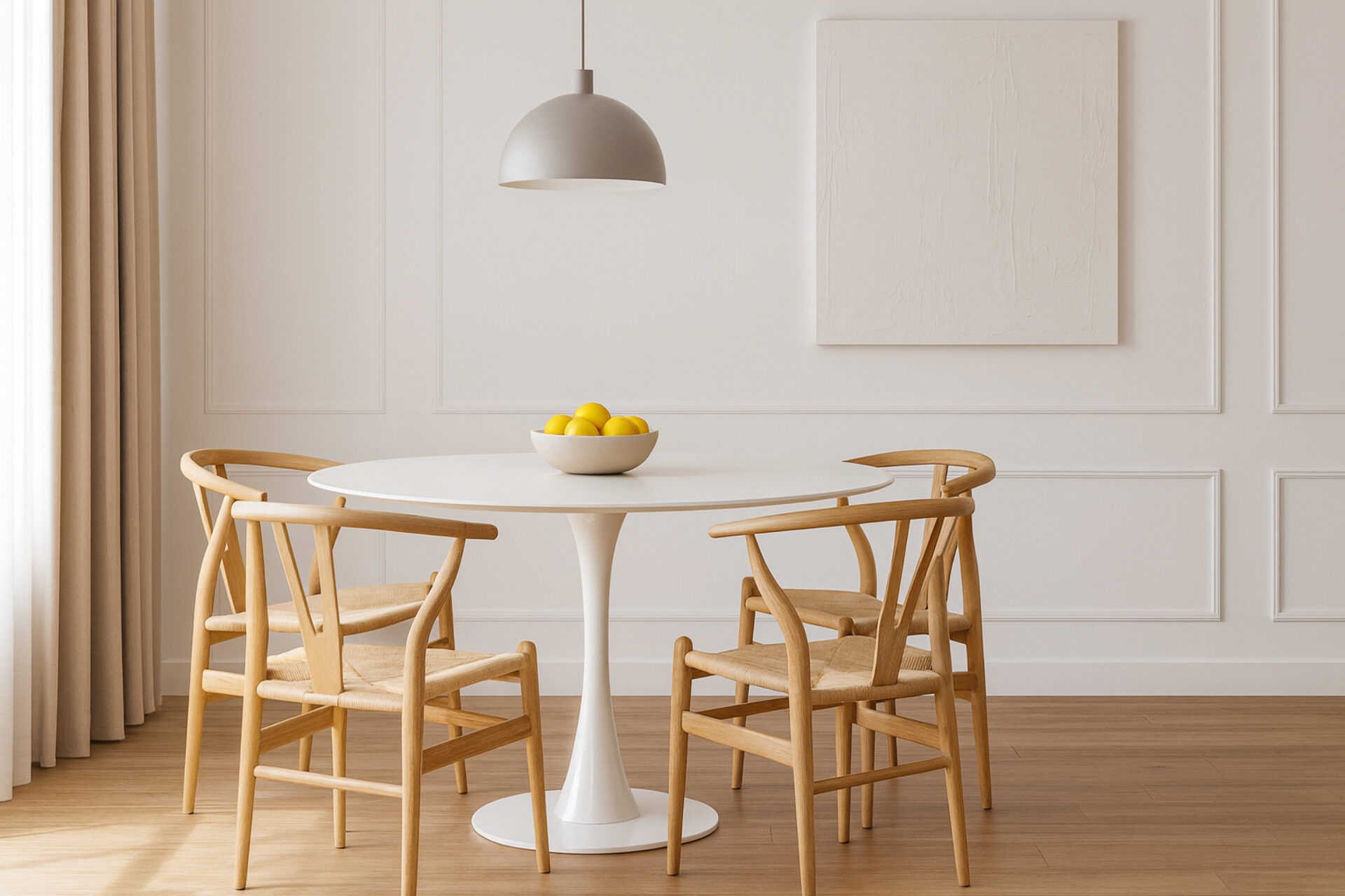 Experience the exquisite design of the Aarhus Dining Table in this modern rendition meticulously crafted with premium materials, featuring a striking white lacquer tabletop that seamlessly blends beauty with functionality.