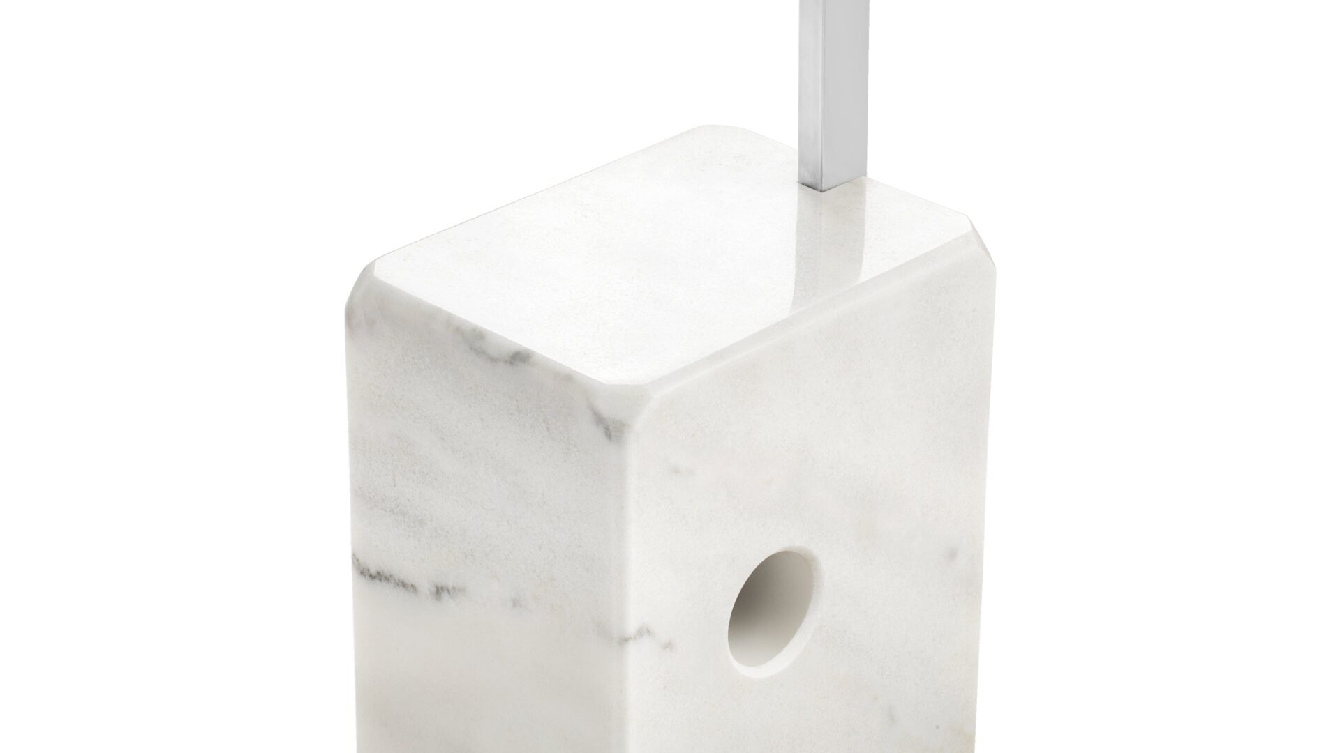 - Material: Polished #304 grade stainless steel arm and shade with carrara marble base
