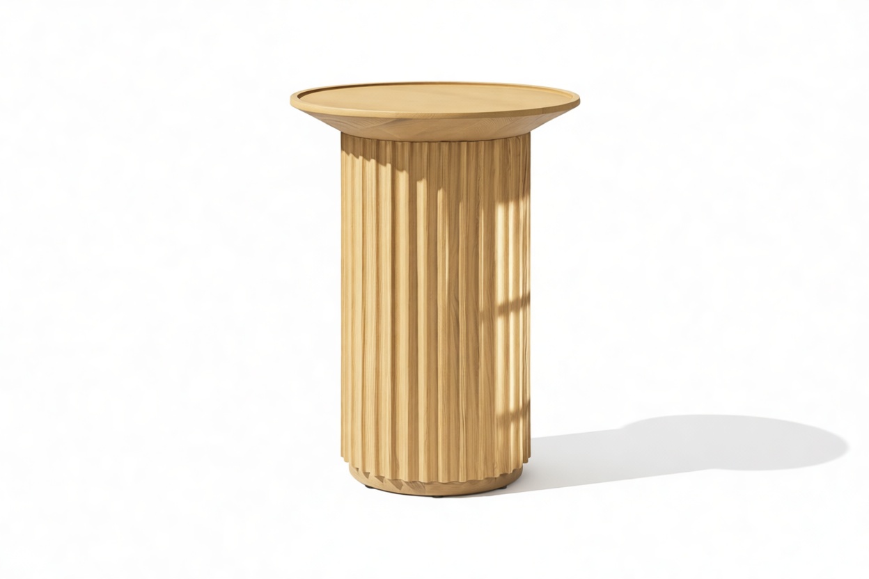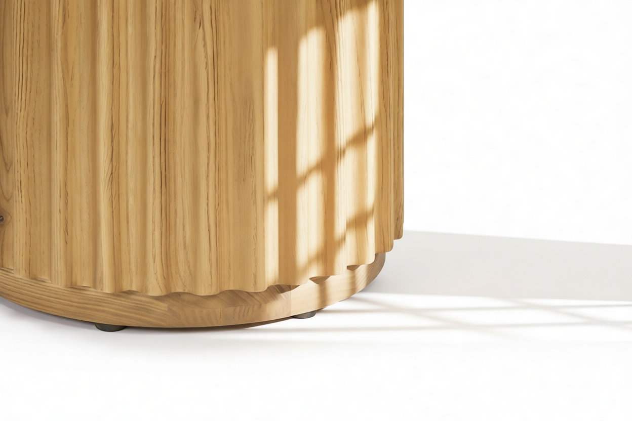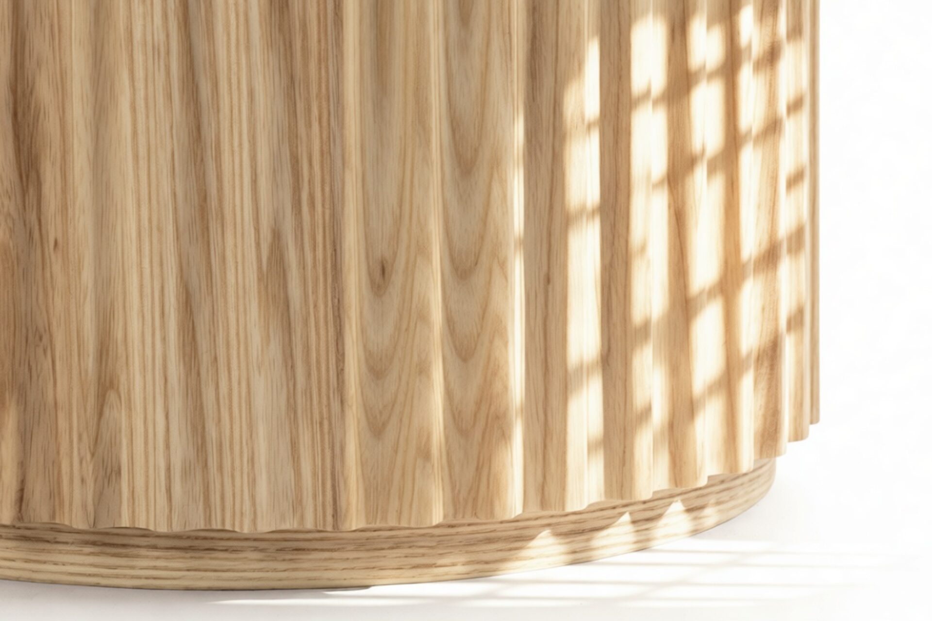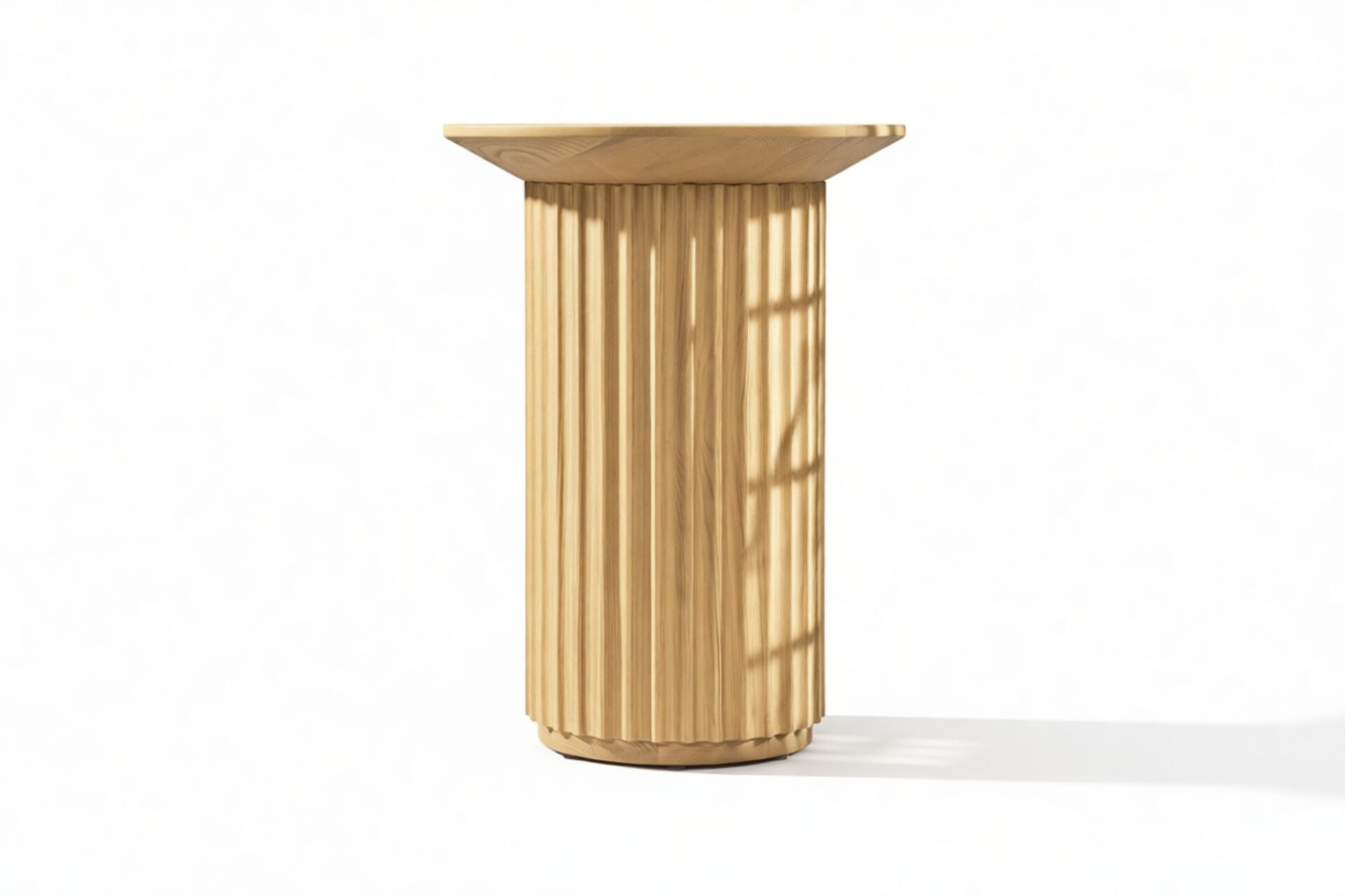 Discover the Acht Side Tables showcasing a meticulously crafted cylindrical base made from premium natural wood. The rich grains and textures of the wood not only enhance the beauty of nature but also guarantee the durability synonymous with exceptional craftsmanship.
