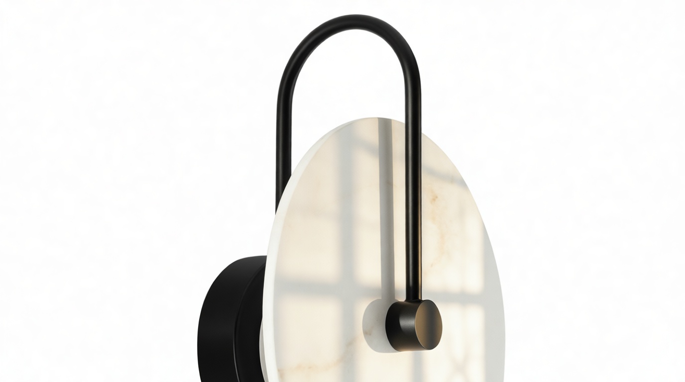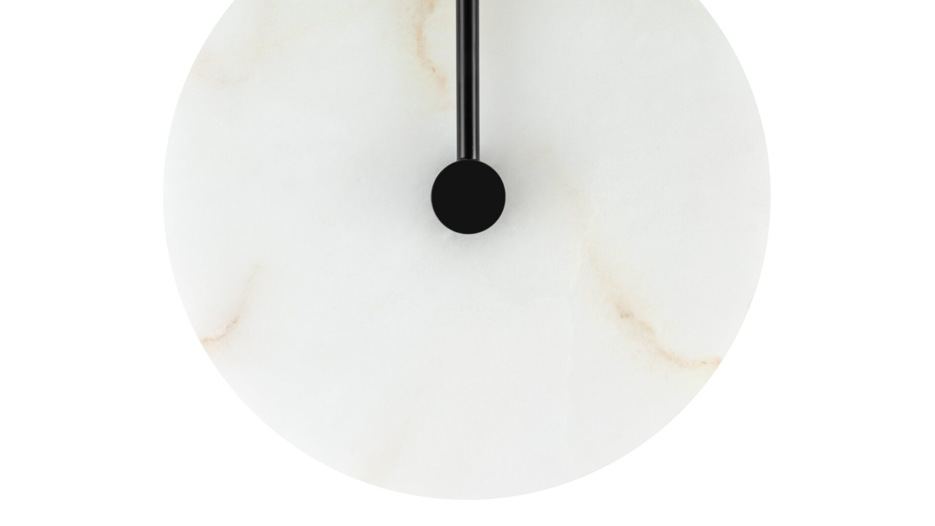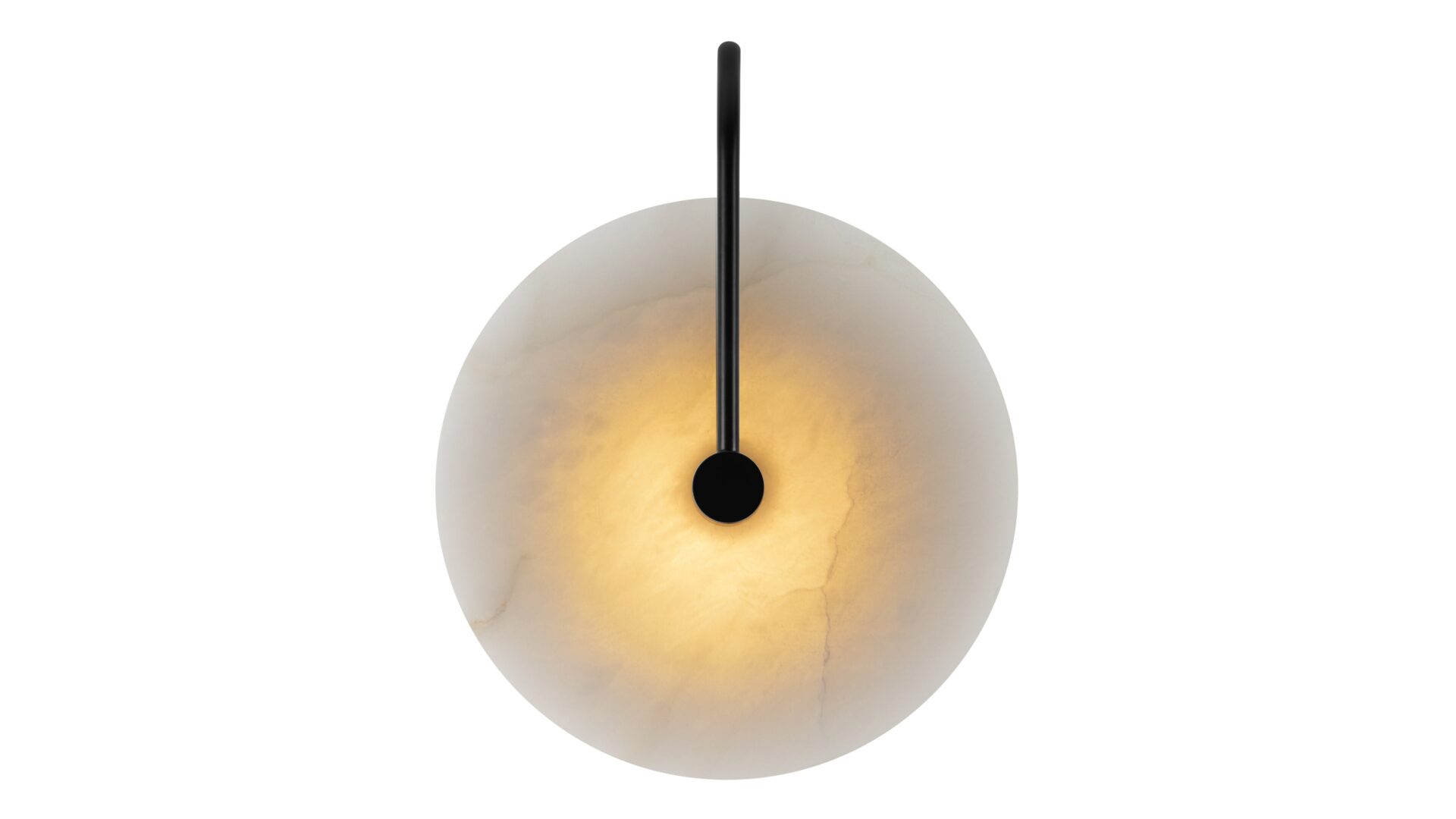 Discover the Ada Wall Sconce showcasing a sleek black metal frame, crafted with meticulous precision. This frame provides a robust base for the exquisite alabaster shade, offering a striking juxtaposition between the durability of metal and the delicate beauty of the natural stone.