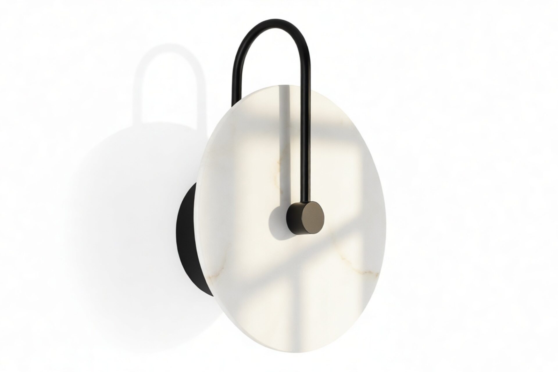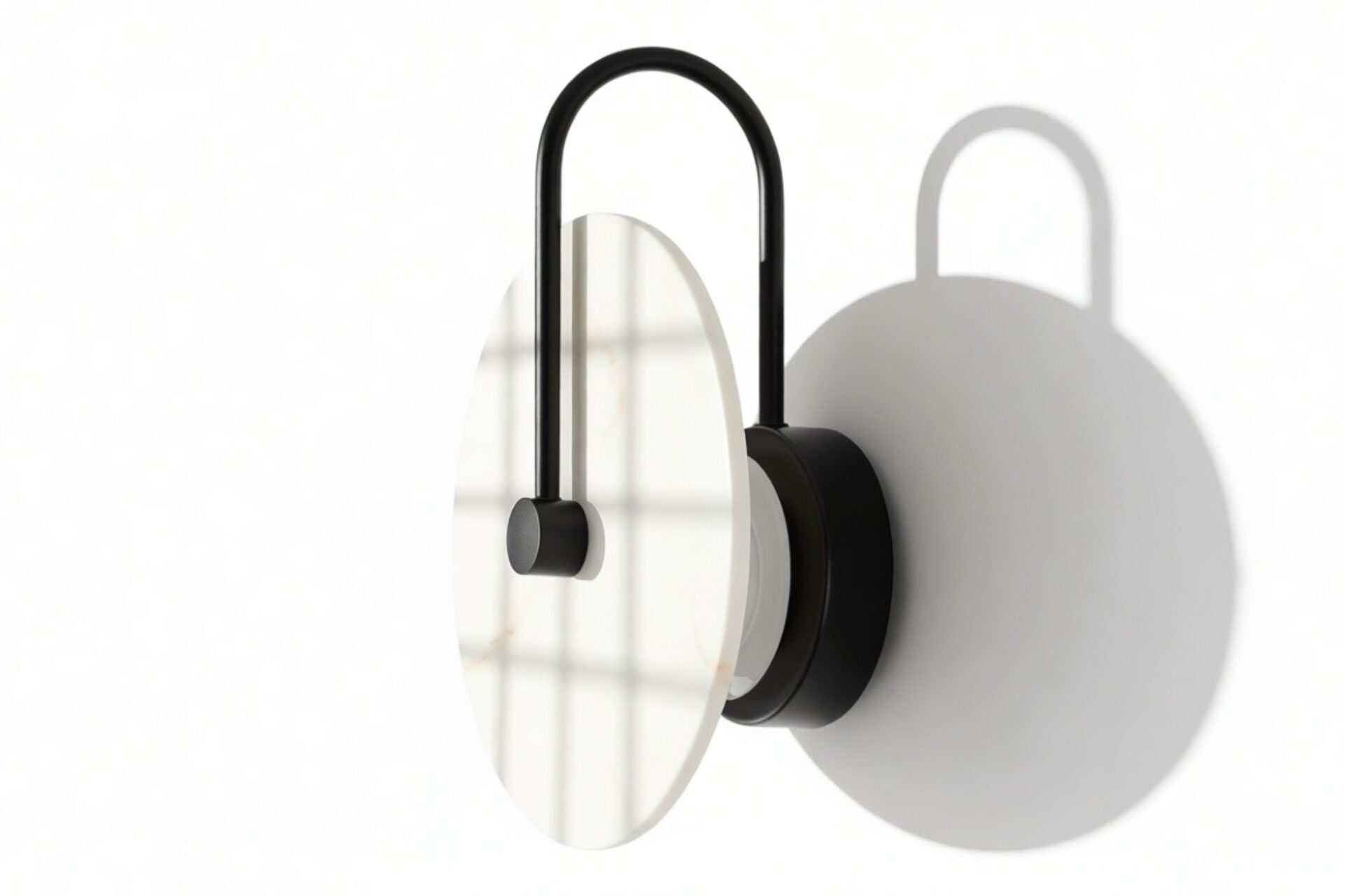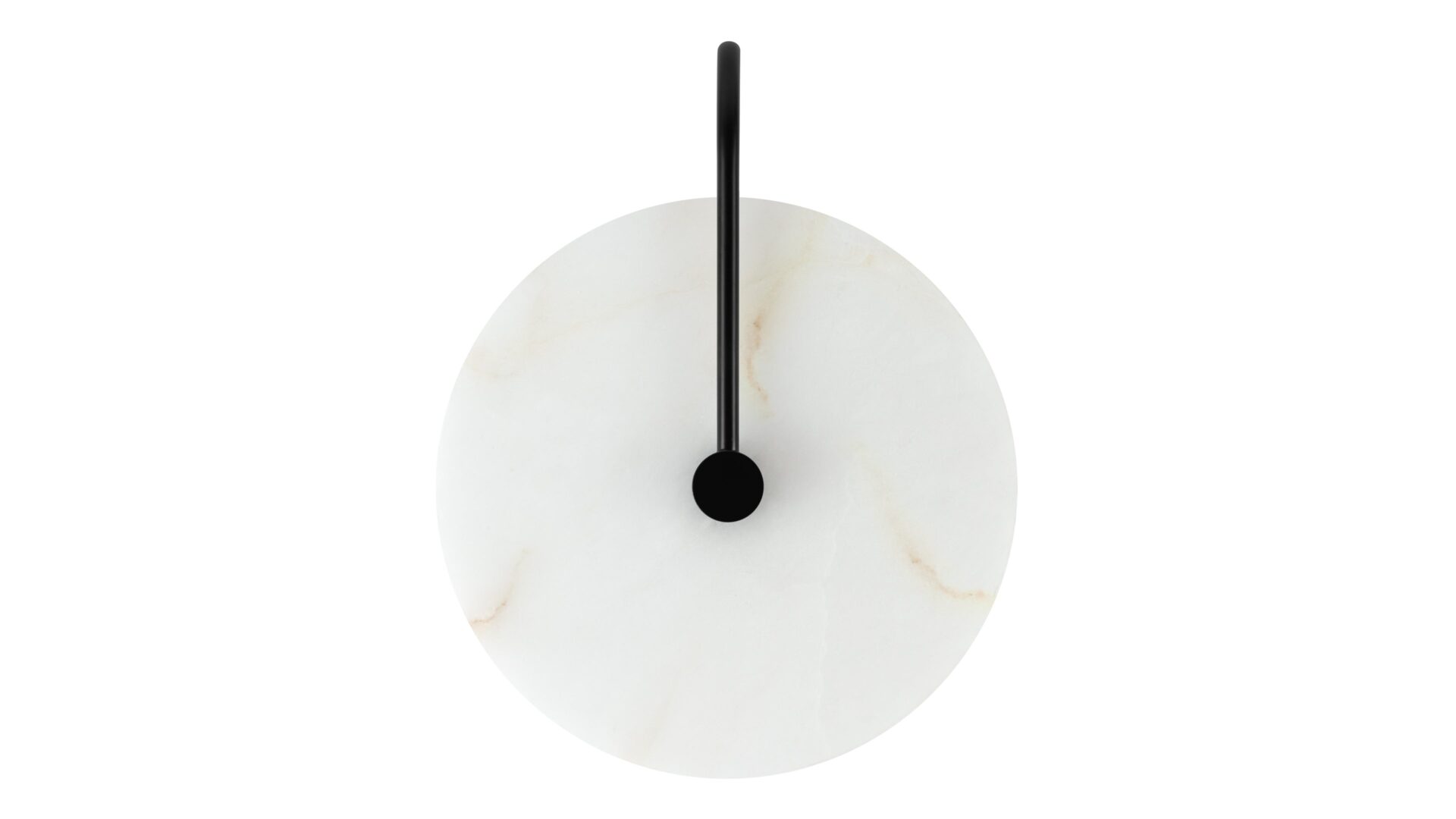 Discover the Ada Wall Sconce showcasing a sleek black metal frame, crafted with meticulous precision. This frame provides a robust base for the exquisite alabaster shade, offering a striking juxtaposition between the durability of metal and the delicate beauty of the natural stone.