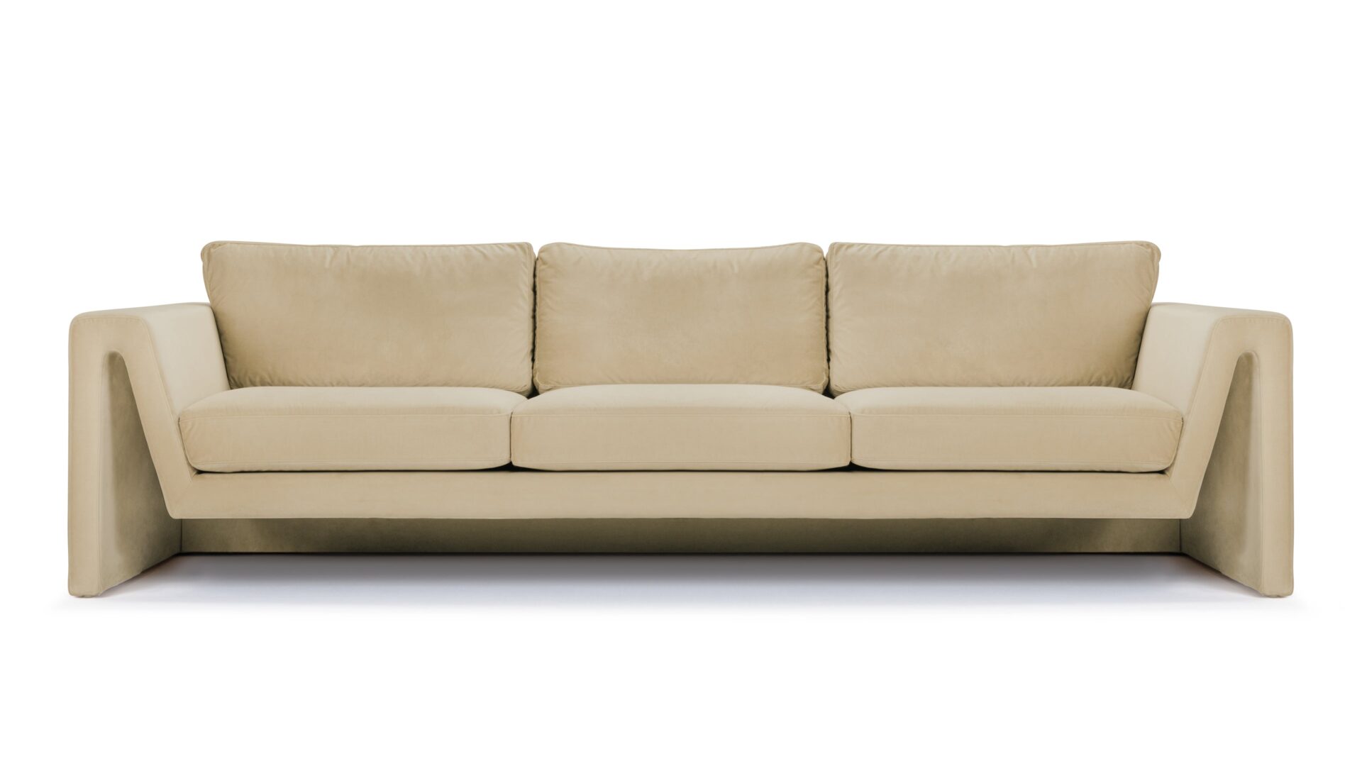 Experience the impeccable blend of style and comfort with the Amore Sofa. Boasting a spacious four-seater design with a sophisticated folded frame, this sofa exudes elegance. Upholstered in luxurious velvet, it adds a touch of opulence to any space with its soft, warm tone. Crafted with a robust solid wood frame, the Amore Sofa ensures lasting durability, while its foam-filled cushions offer a comfortable and low-maintenance seating option that retains its plush look over time.
