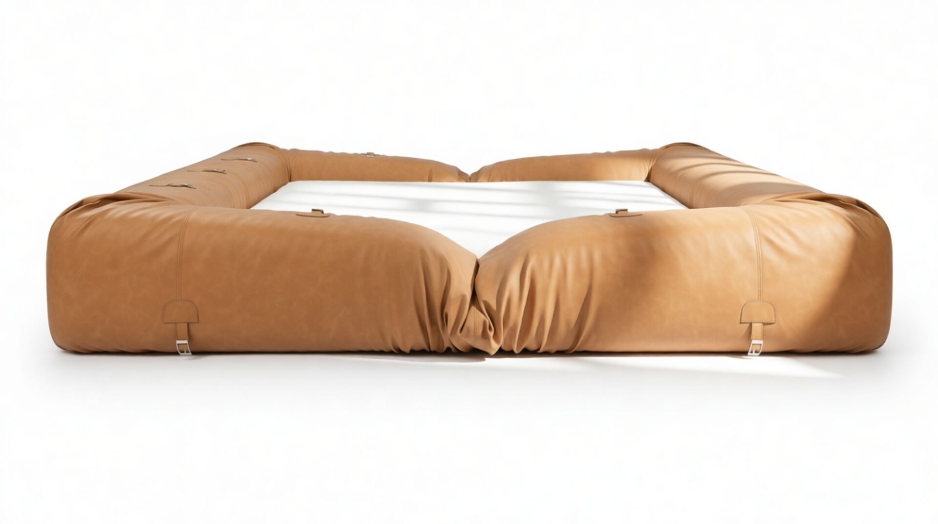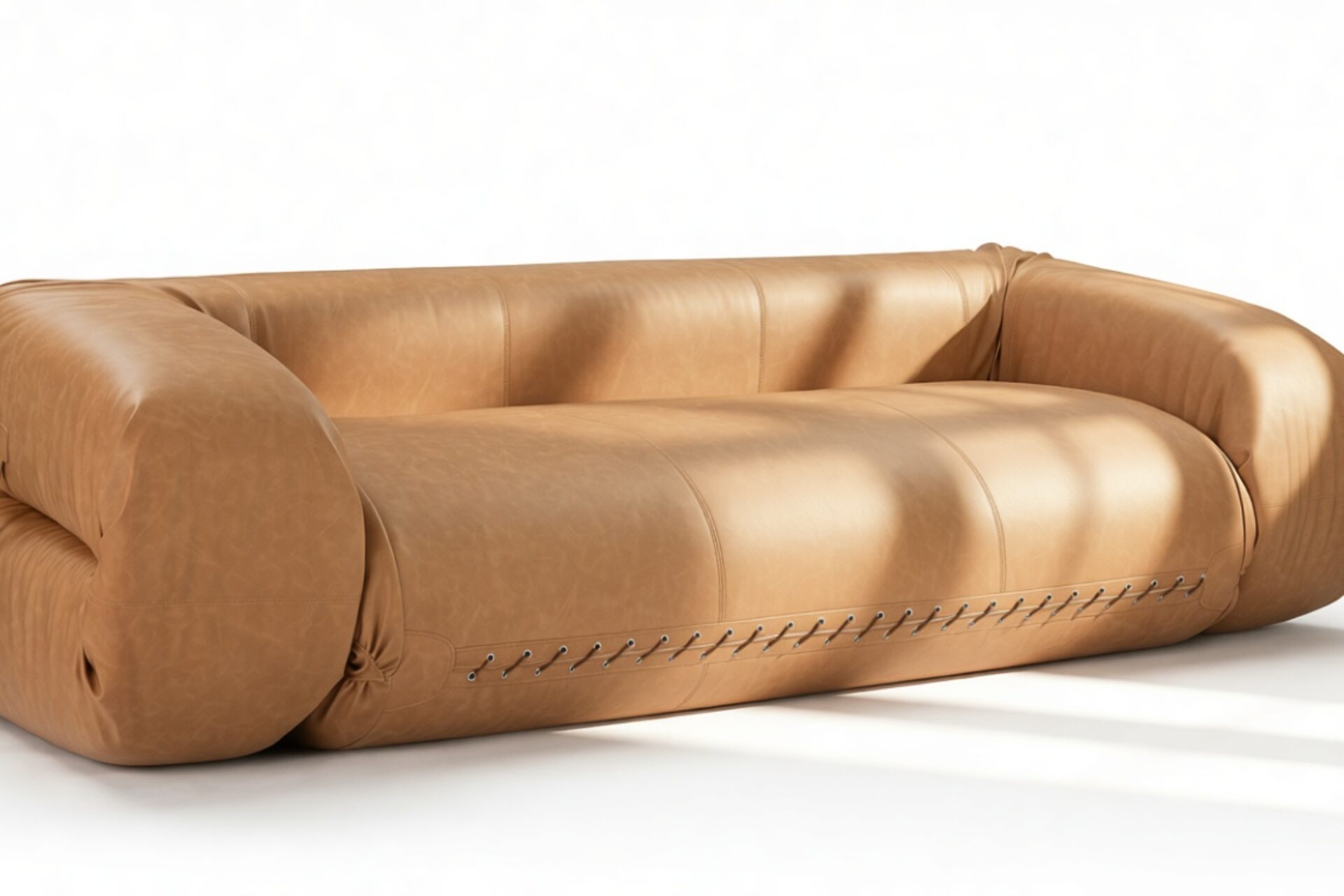 Discover the Anfibio Sofa, a striking fusion of opulence and artistry, enveloped in supple matte leather that radiates a refined allure. Its luxuriously cushioned foam structure molds into sumptuous, oversized arms, a deep-seated low profile, and a robust form that beckons you to unwind and luxuriate. Each element, from its curved contours to the meticulously hand-stitched lace-up front adorned with metal grommets, exudes character, transforming it into not just a comfortable seat but a captivating centerpiece for any space.