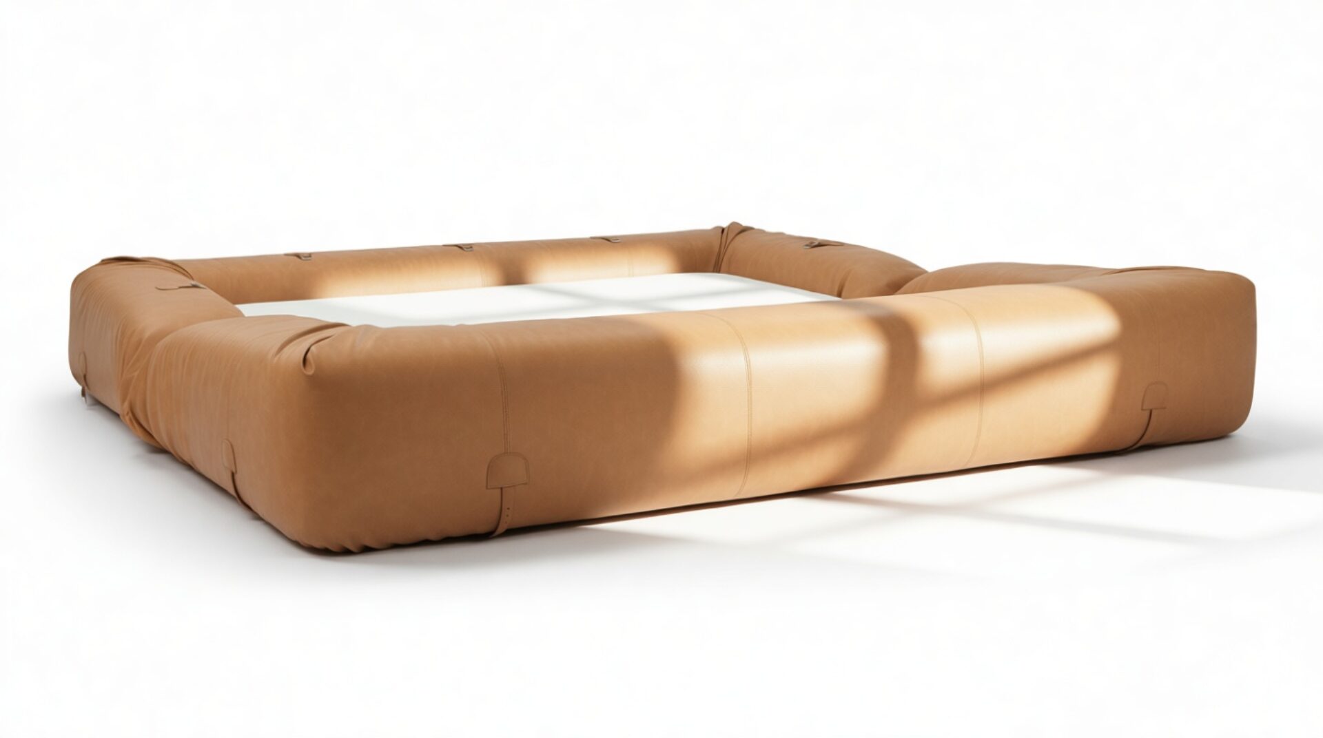 Experience the Anfibio Sofa, a stunning fusion of opulence and artistry. Crafted in supple matte leather with lavish foam cushioning, it boasts sumptuous oversized arms, a low-profile, and eye-catching metal grommet accents. Balancing contemporary elegance with vintage charm, this sofa is a captivating centerpiece for any stylish space, inviting you to unwind and luxuriate in luxury comfort.