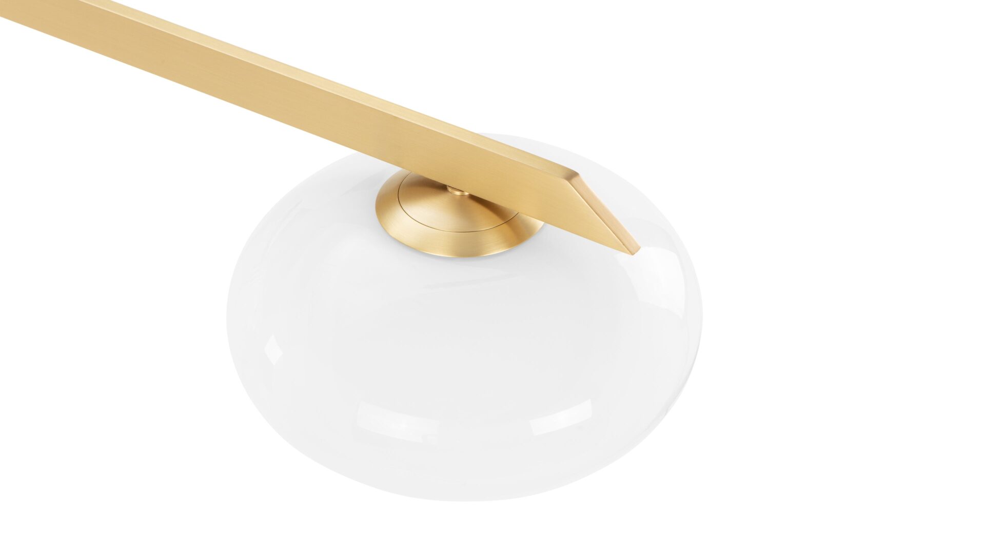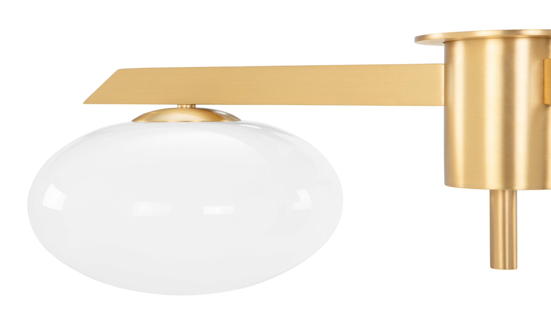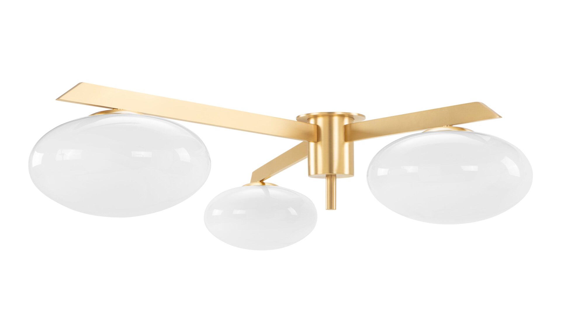 Presenting the Angelo Lelli Three Arm Ceiling Lamp, an enduring representation of mid-century lighting design. Meticulously crafted with keen attention to detail, this exquisite ceiling lamp encapsulates the core of modernist aesthetics while harmoniously fusing practicality and artistic sophistication. The lamp showcases a sleek and refined design, featuring three elegantly curved arms extending from a central hub to form a visually captivating symmetry that effortlessly captivates in any setting. The delicate equilibrium between the metal frame and opaline glass globes creates a gentle and welcoming illumination, casting a cozy radiance that enriches the atmosphere of the surrounding space.