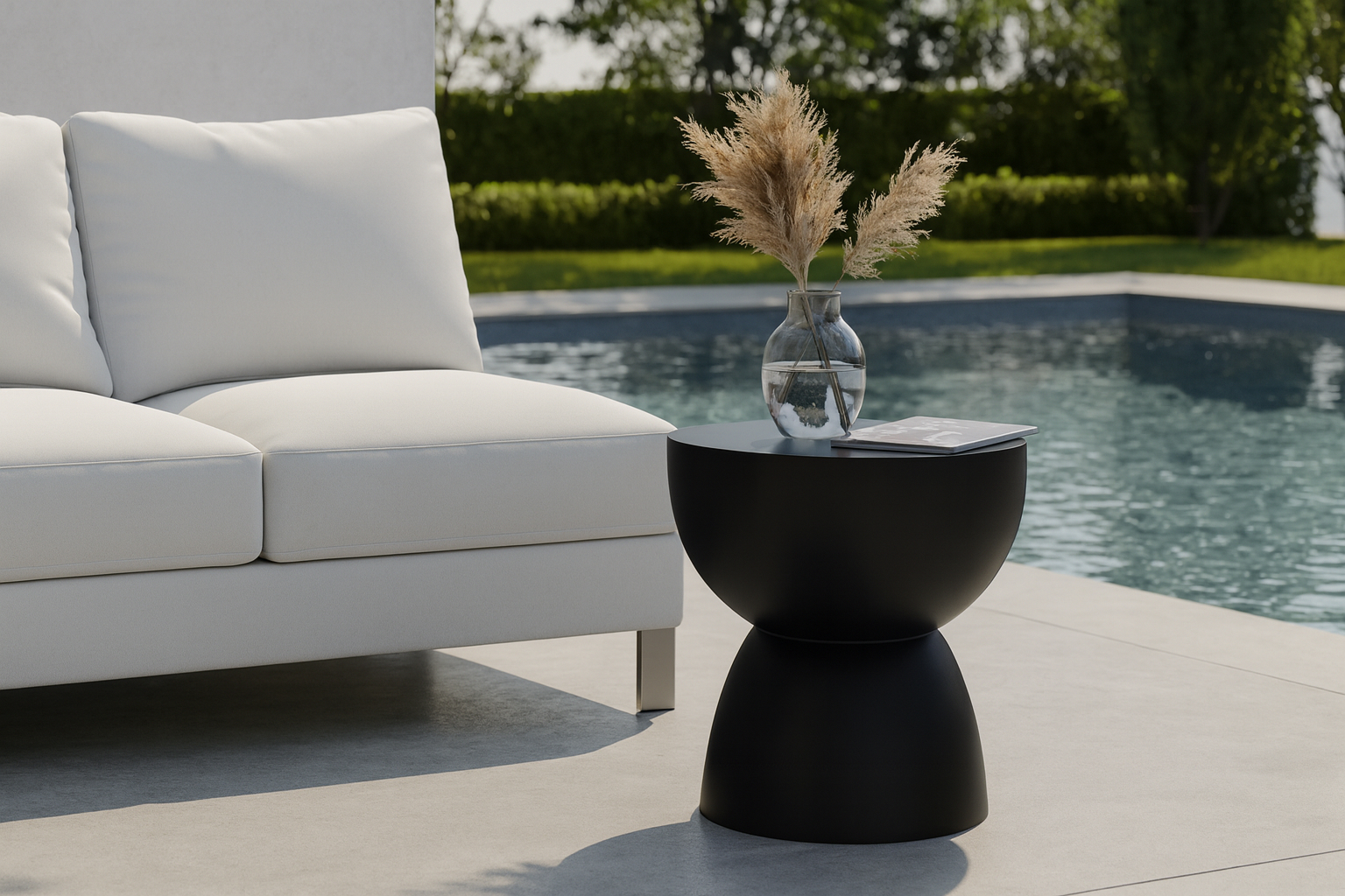 Introducing the Anima Side Table - a chic and modern piece that beautifully combines style and practicality. Crafted from robust concrete in a sleek black finish, its distinctive hourglass shape creates a striking visual focal point in any space. The smooth lines and unique silhouette effortlessly complement various interior styles. Elevate your living area with the Anima Side Table, showcasing enduring sophistication through thoughtful design.