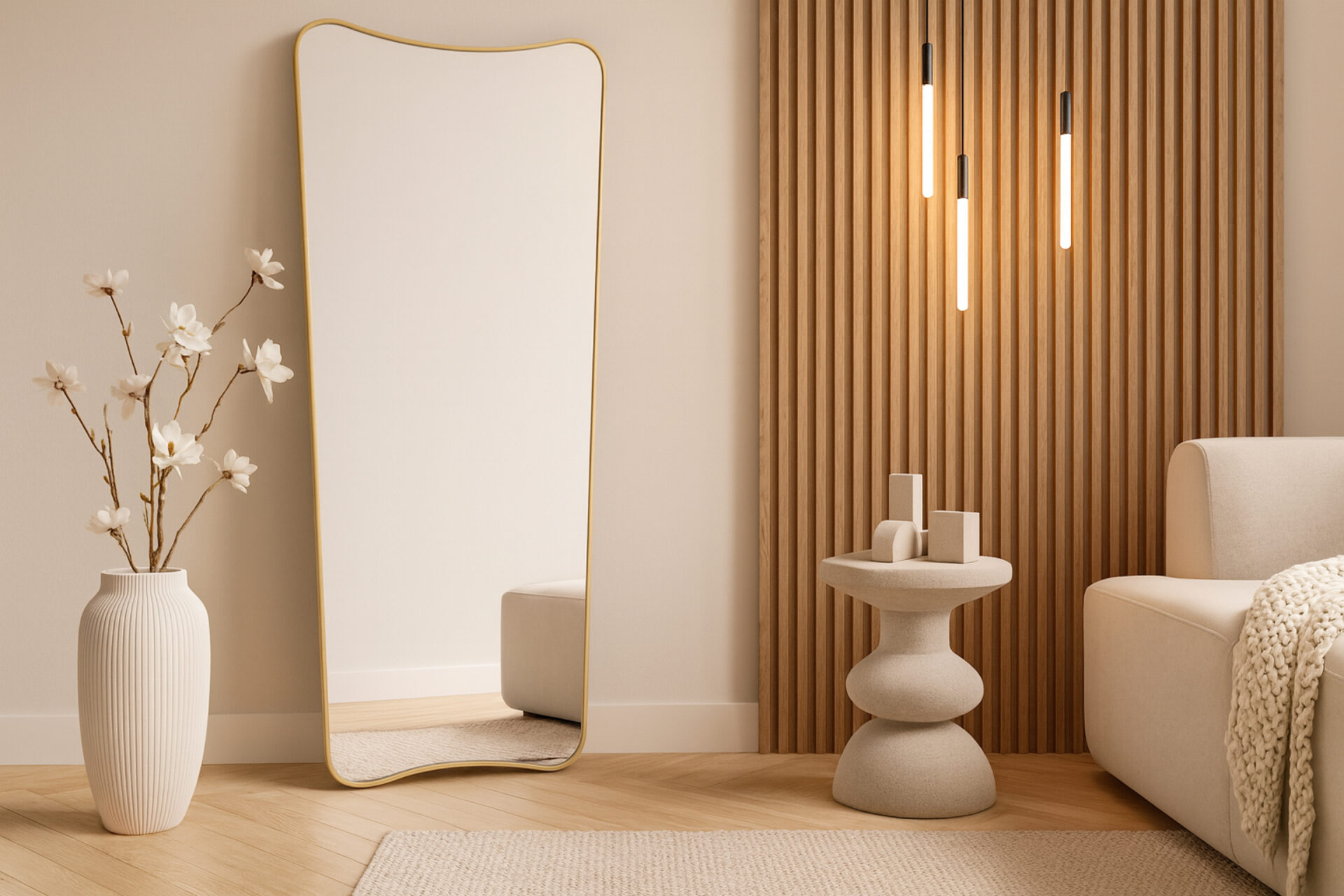 Striking in scale yet subtle in detail, the Apex Mirror is a full-length piece designed to expand your space and reflect natural light. Effortlessly leaning against the wall, it brings openness and depth to the room—perfect for dressing areas, layered textures, or enhancing light flow.