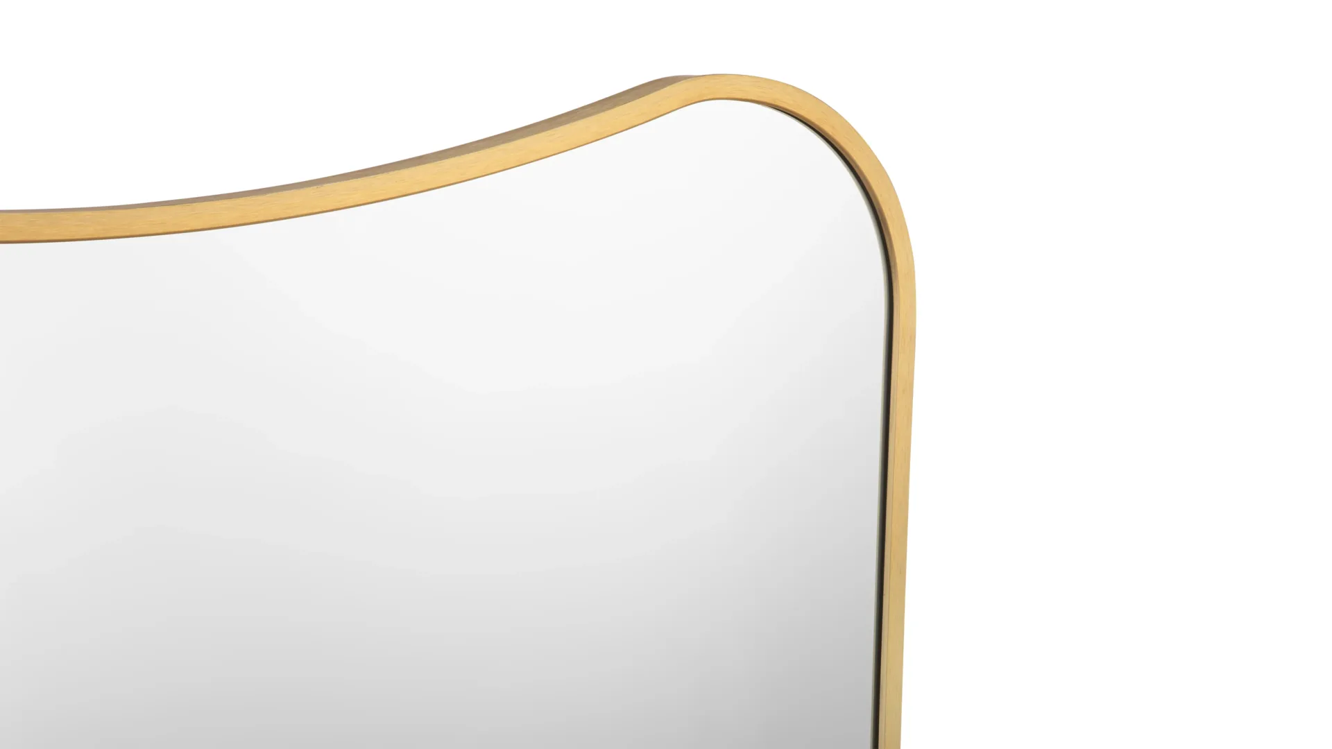 Subtle rounded edges soften the geometric lines, bringing a gentle, organic feel to the mirror’s silhouette.