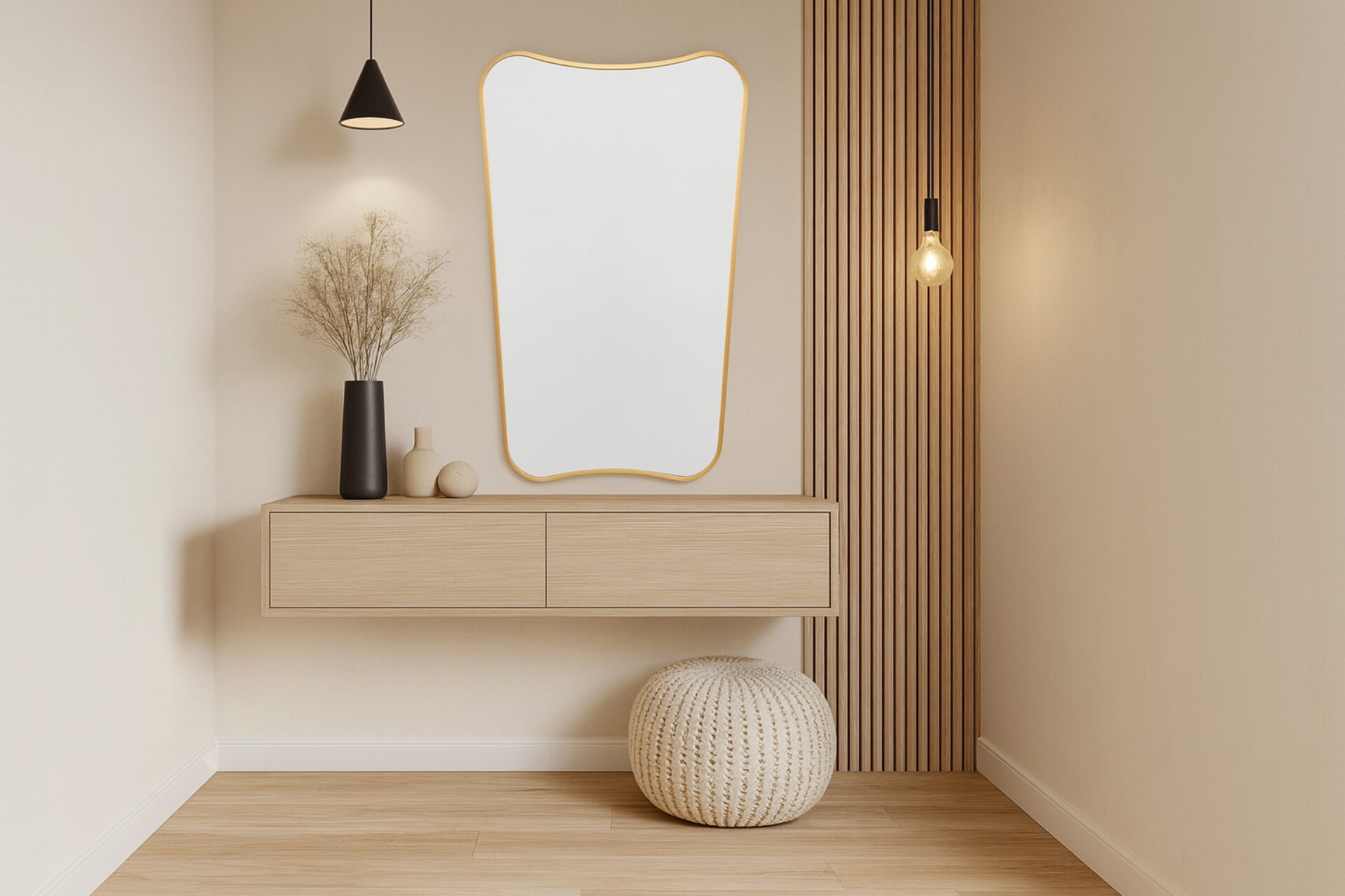 The Apex Wall Mirror pairs a gently rounded rectangular shape with a slim metal frame to deliver understated sophistication. Ideal for bathrooms, entryways, or narrow walls, it reflects light beautifully while maintaining a clean, modern presence that complements both contemporary and classic interiors.