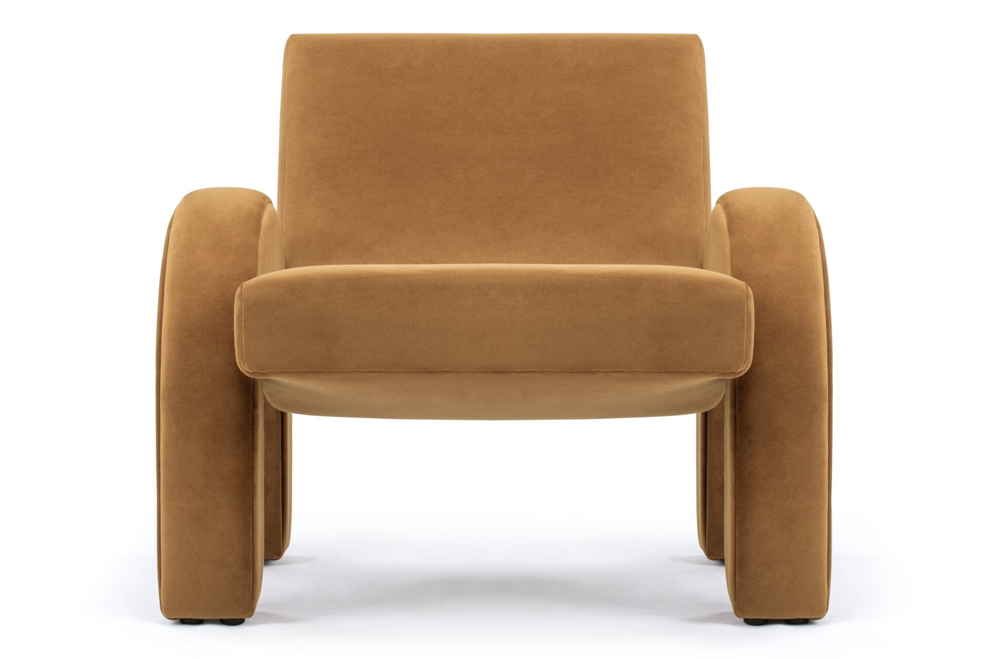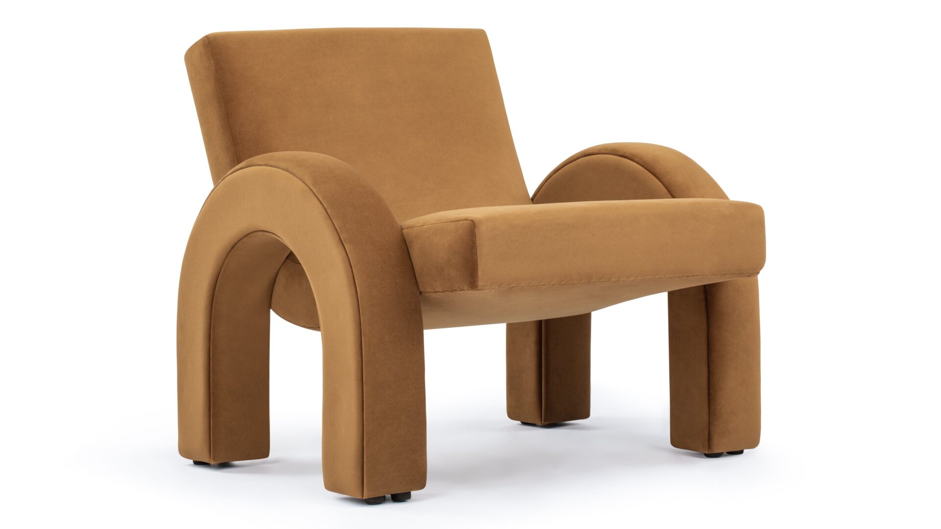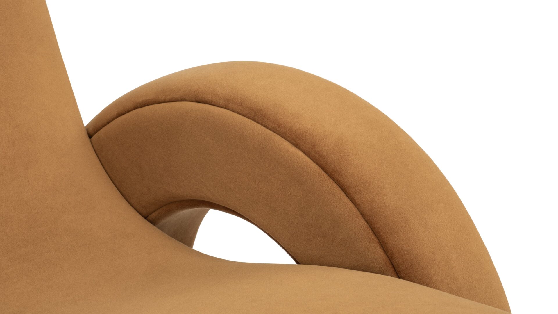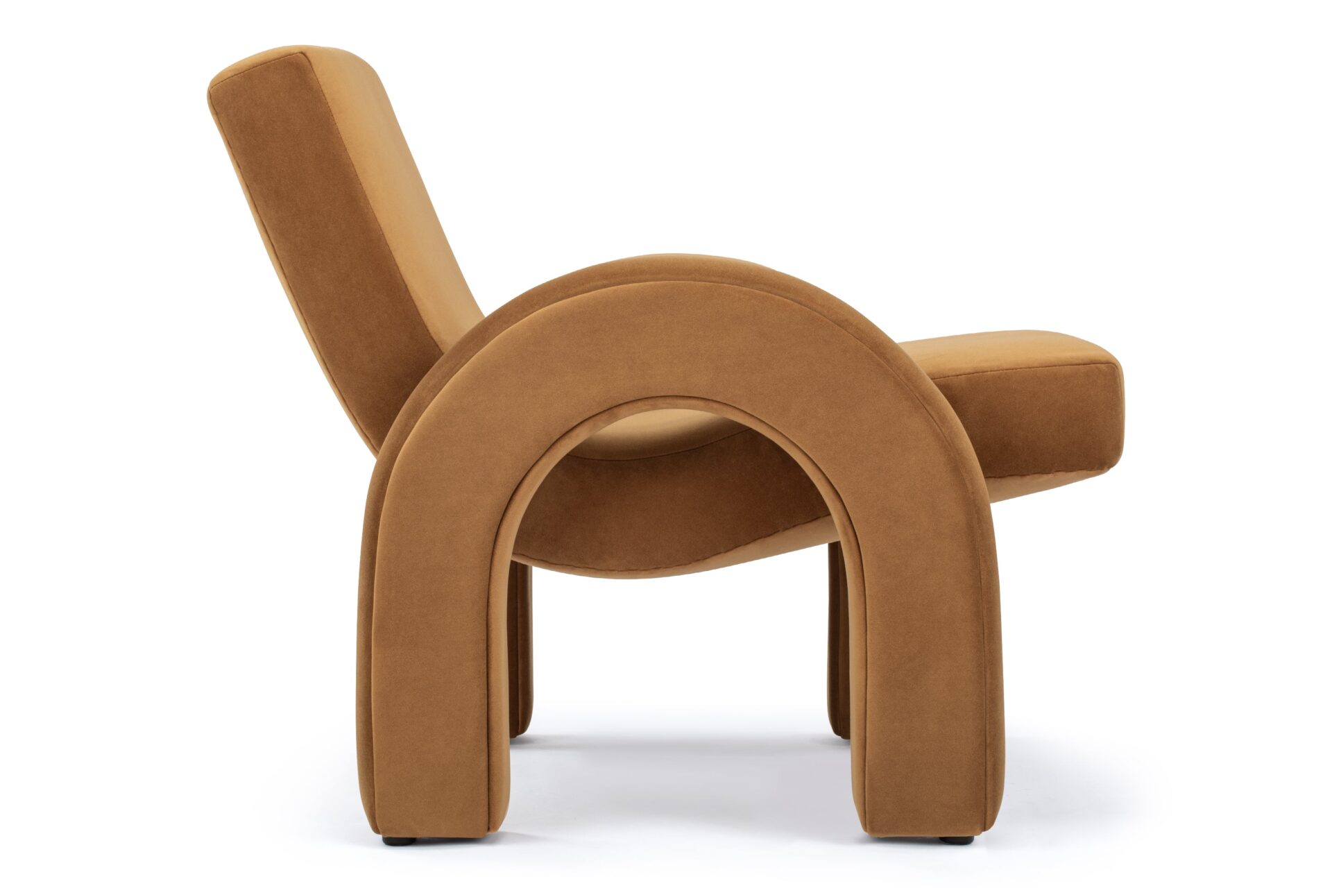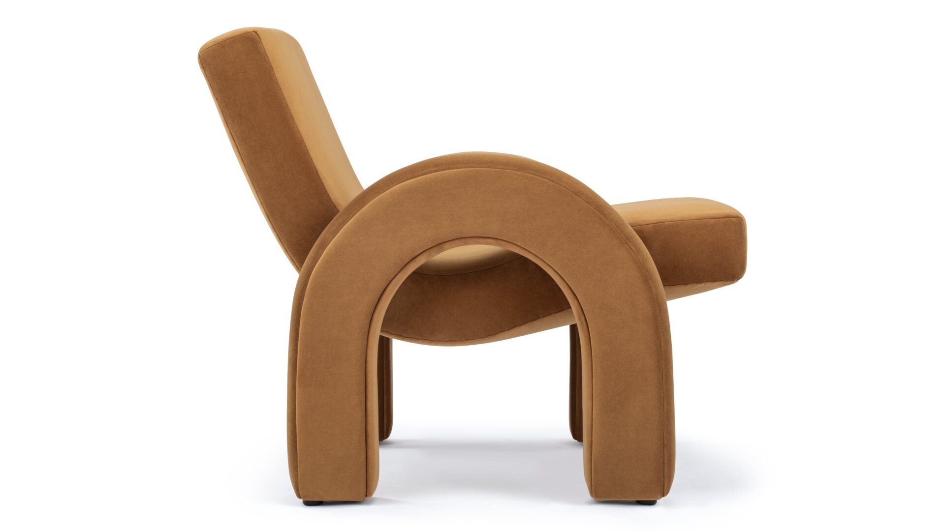 Experience the seamless fusion of architectural design and luxurious comfort with the Arcata Lounge Chair. This stunning sculptural frame, enveloped in opulent velvet, combines retro-inspired caramel tones with a bold arched structure, creating a captivating centerpiece for contemporary and eclectic spaces.