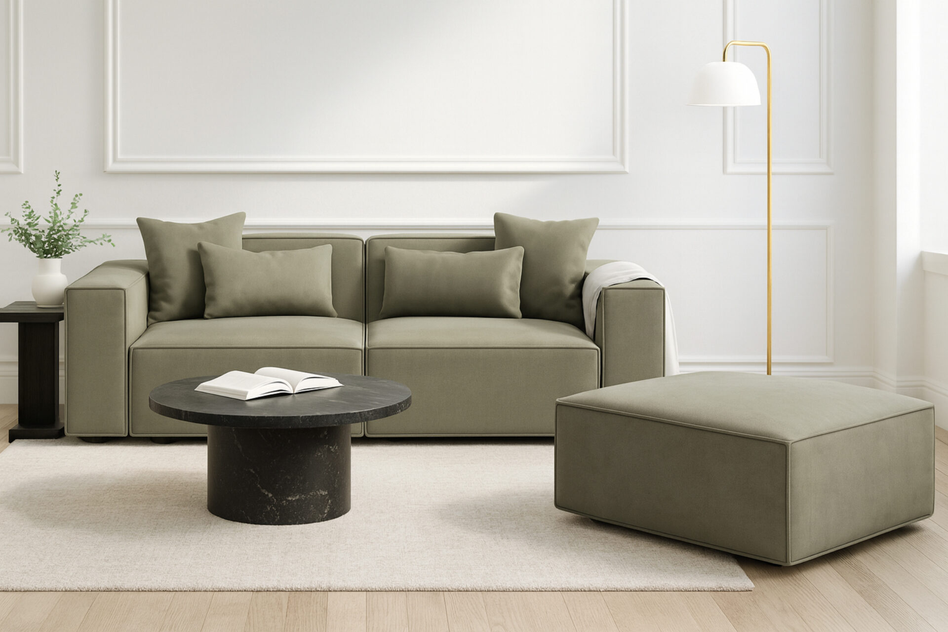 Discover the stylish Arles Sectional Sofa collection, blending minimalist, boxy trends with the convenience of modular design. Choose from a range of pre-set configurations or individual pieces to customize your setup. Crafted with a sturdy solid wood frame and plush foam seating for comfort and easy care, complemented by soft scatter cushions. Available in versatile neutral hues, this collection seamlessly fits into various interior aesthetics, adding a subtle allure to any space.