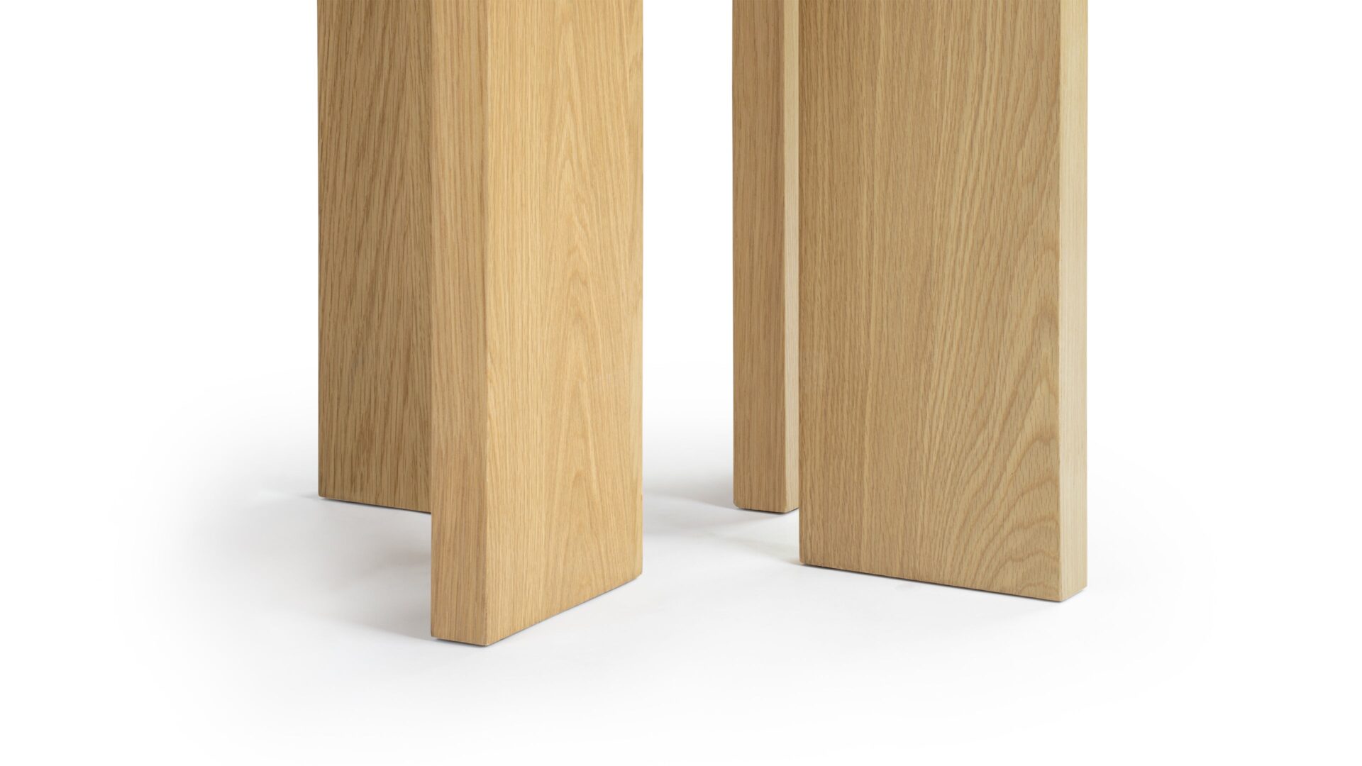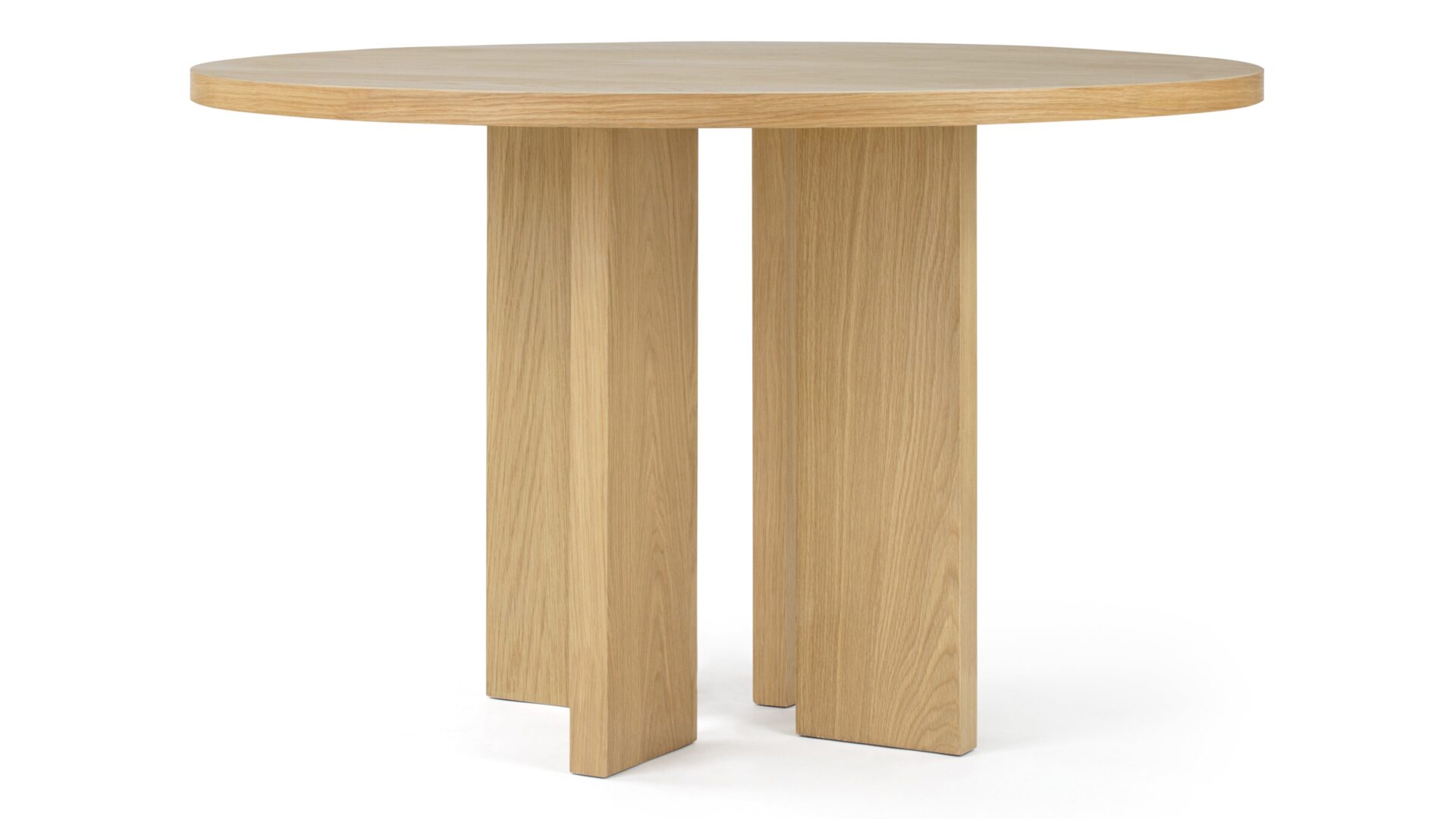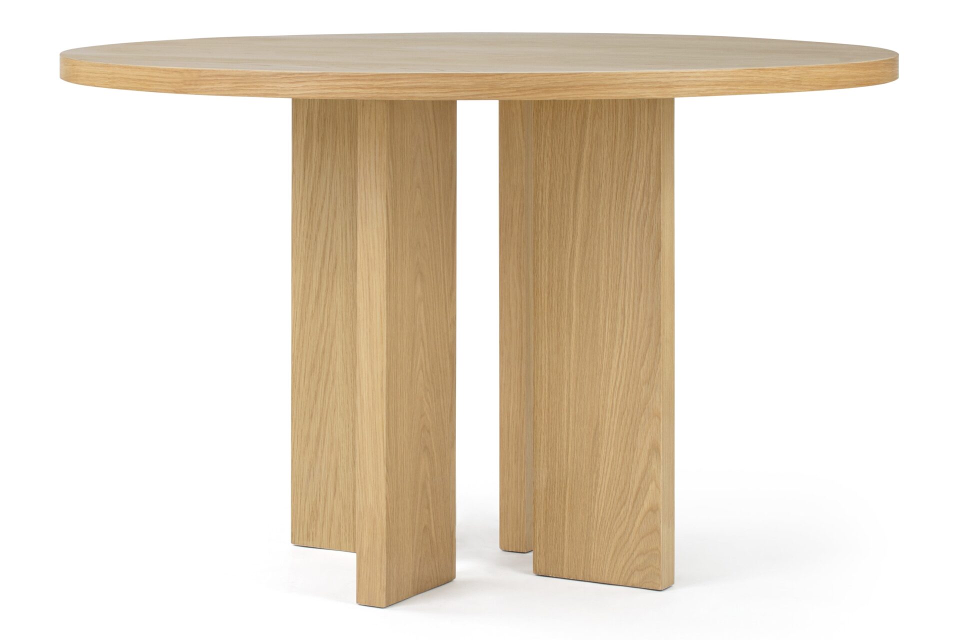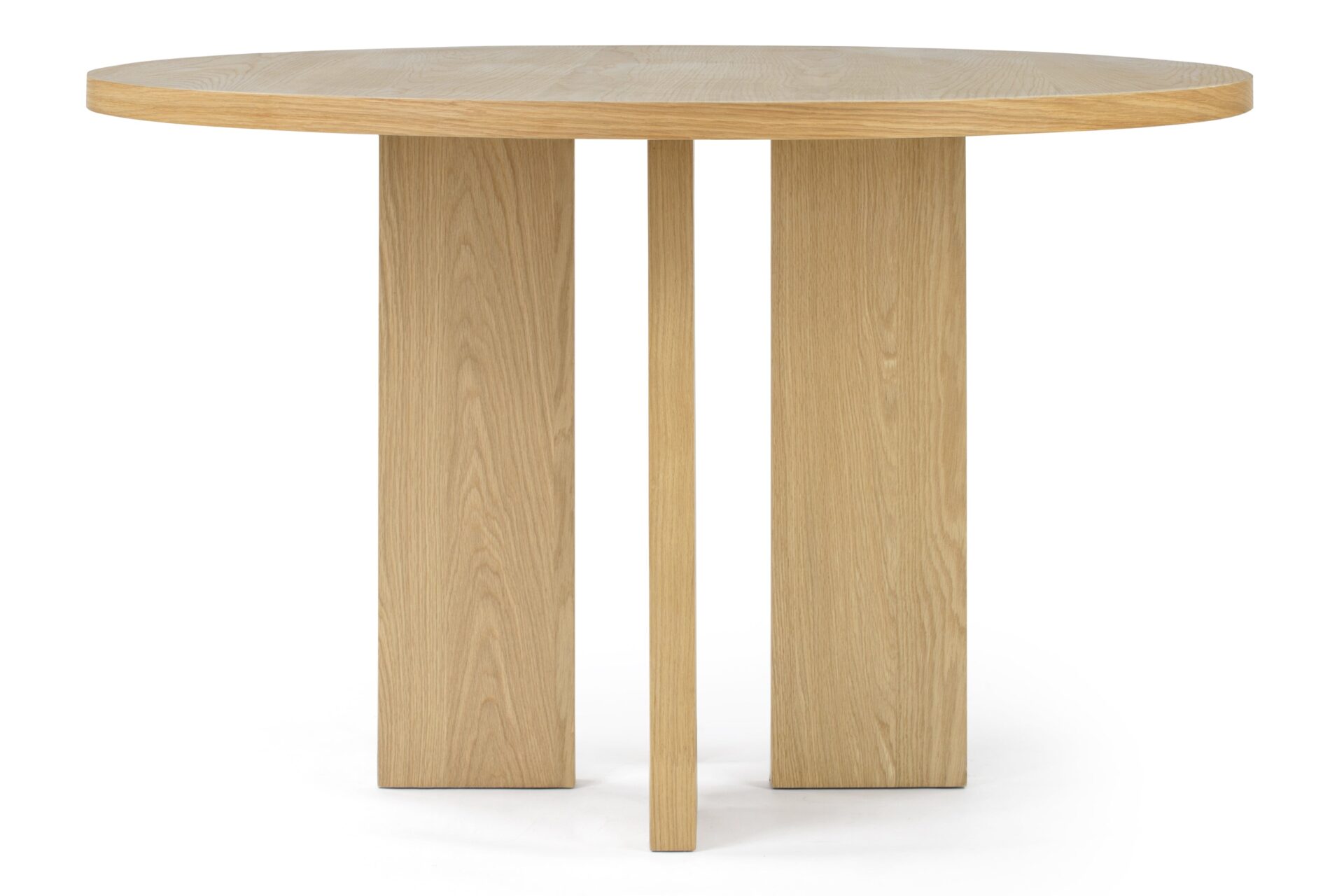 Discover the captivating Arlon Dining Table, meticulously crafted to marry contemporary design with practicality. Its distinctive plank-style legs add a touch of character to this round centerpiece, made from robust solid oak legs and an oak veneer tabletop. The light finish accentuates the appealing grain patterns, infusing a cozy feel into any dining area. Embracing a blend of modernity and natural beauty, the Arlon Dining Table appeals to those with a refined taste. Its light color scheme not only enhances its visual charm but also allows it to effortlessly mesh with diverse interior themes. Seating up to six, this table promises to be the focal point of your dining room.