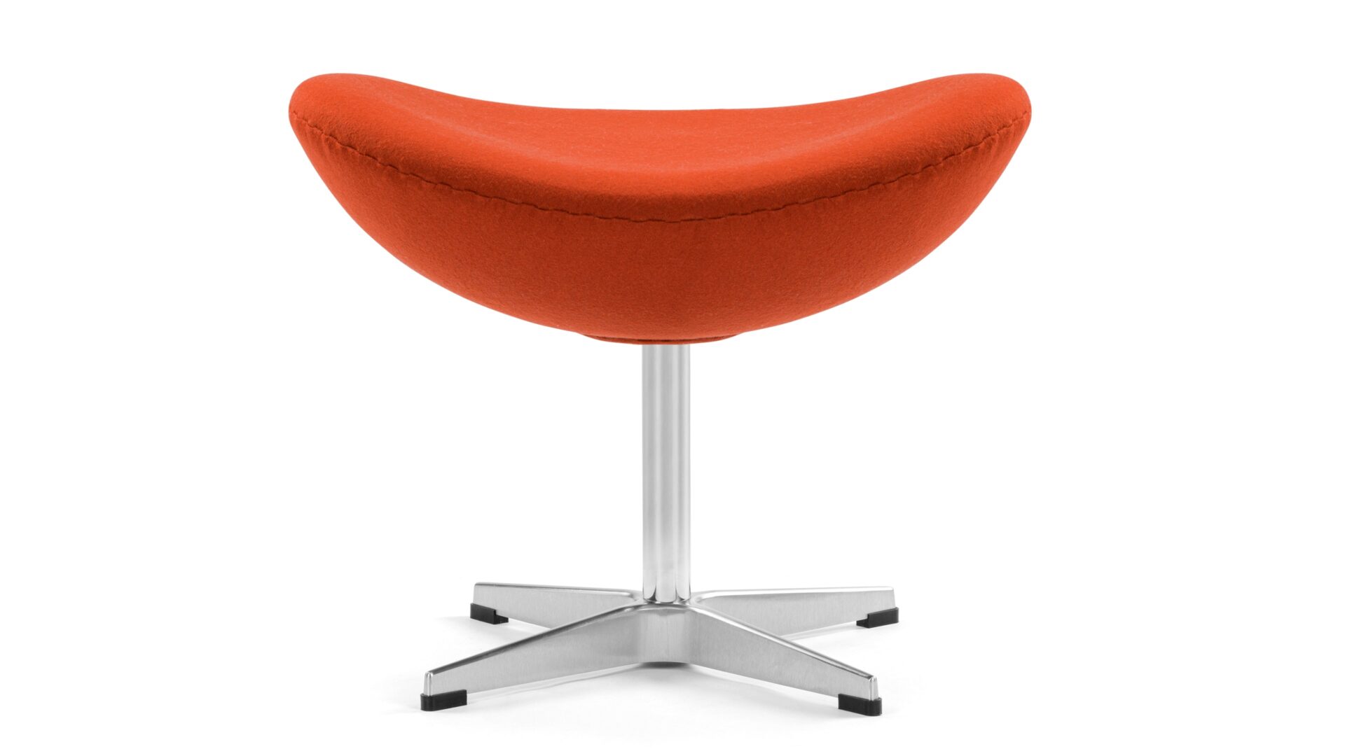 Elevate your space with the luxurious Burnt Orange Wool option for the iconic chair and matching stool. The chic stainless steel base perfectly complements the elegant upholstery, adding a touch of sophistication and functionality to any room. Immerse yourself in style with this stunning set that exudes modern elegance.