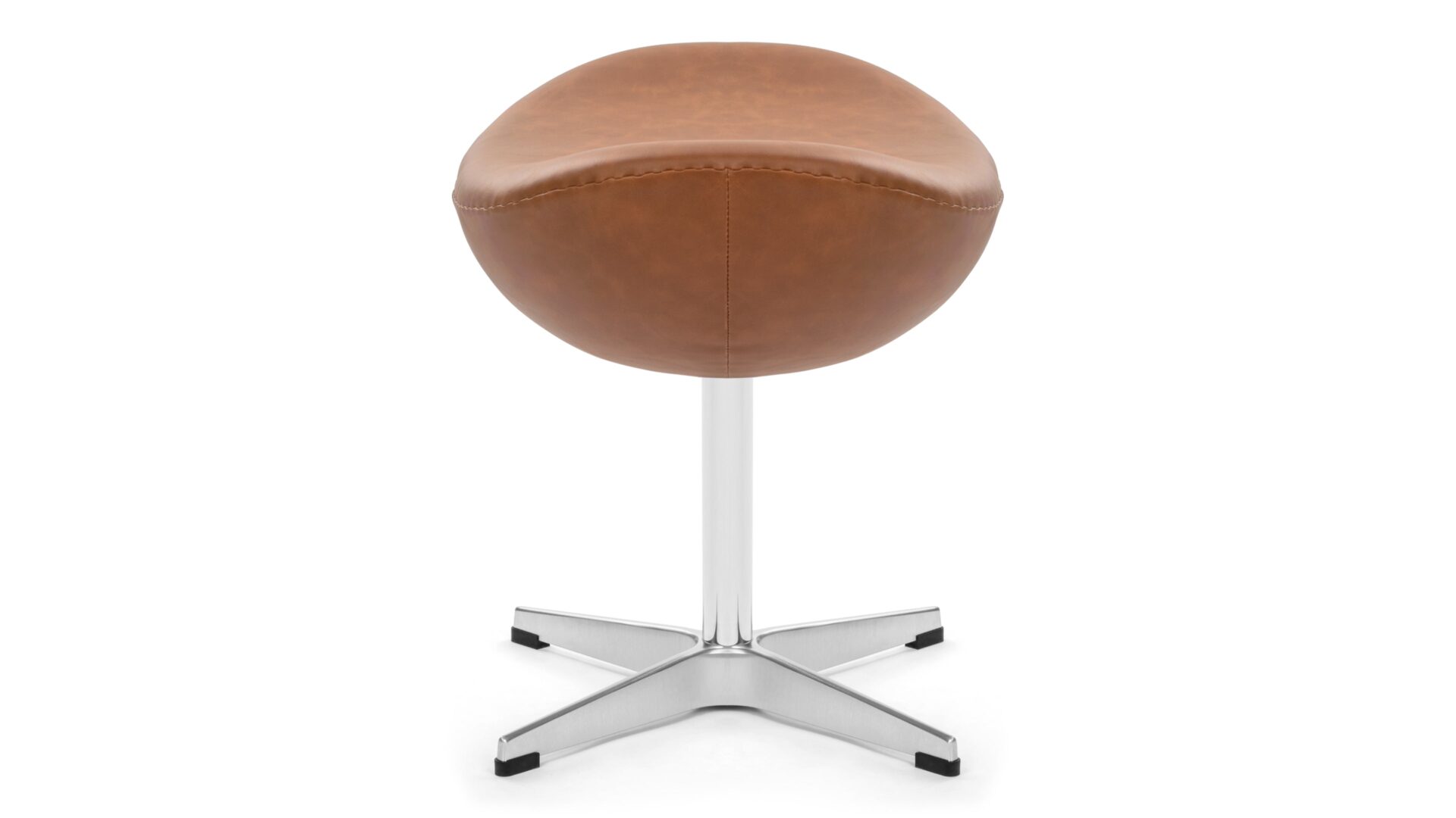 Embrace the iconic Egg chair, a symbol of 1950s design, paired flawlessly with its matching stool, carefully fashioned for ultimate comfort and elegance. The stool mirrors the chair's sleek contours and premium upholstery. Together, they form a refined seating set embodying the essence of 1950s style. Discover the exquisite Arne Stool for superb comfort and versatility, perfect as a footstool or extra seating, complementing the renowned Arne Chair. The Arne set offers endless styling options, suitable for any space, with customizable colors and materials like Chestnut Vegan Leather to elevate your home or office with timeless charm.