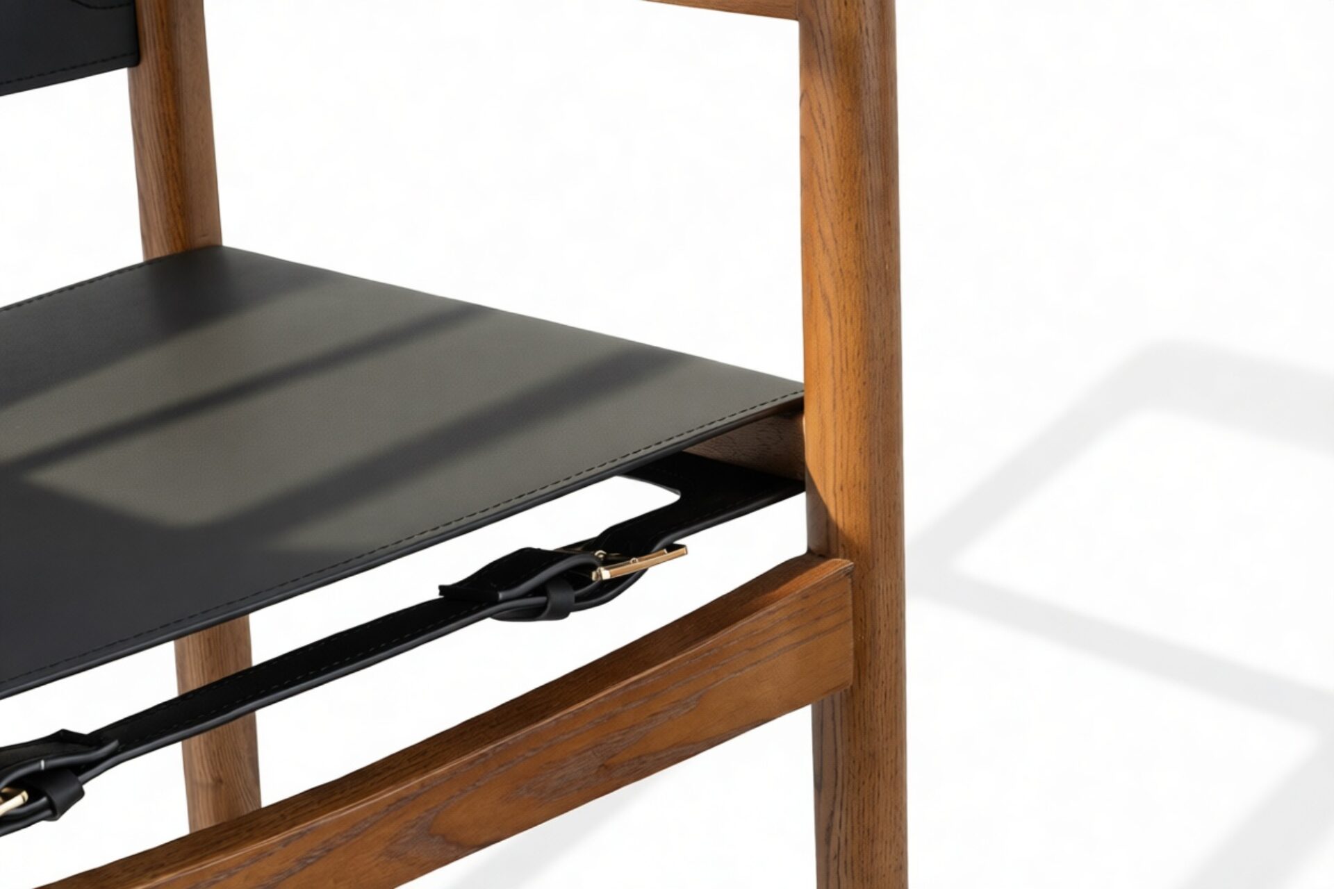Experience ultimate comfort during mealtime with the Asger Dining Chair featuring a gently curved backrest and contoured sling seat. Crafted with carefully selected vegan leather upholstery, this chair exudes luxury and elegance, providing hours of comfortable seating and entertainment.