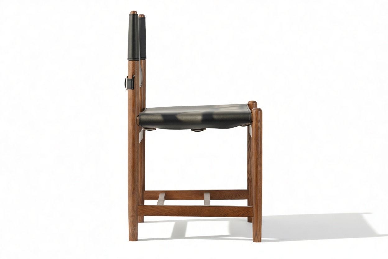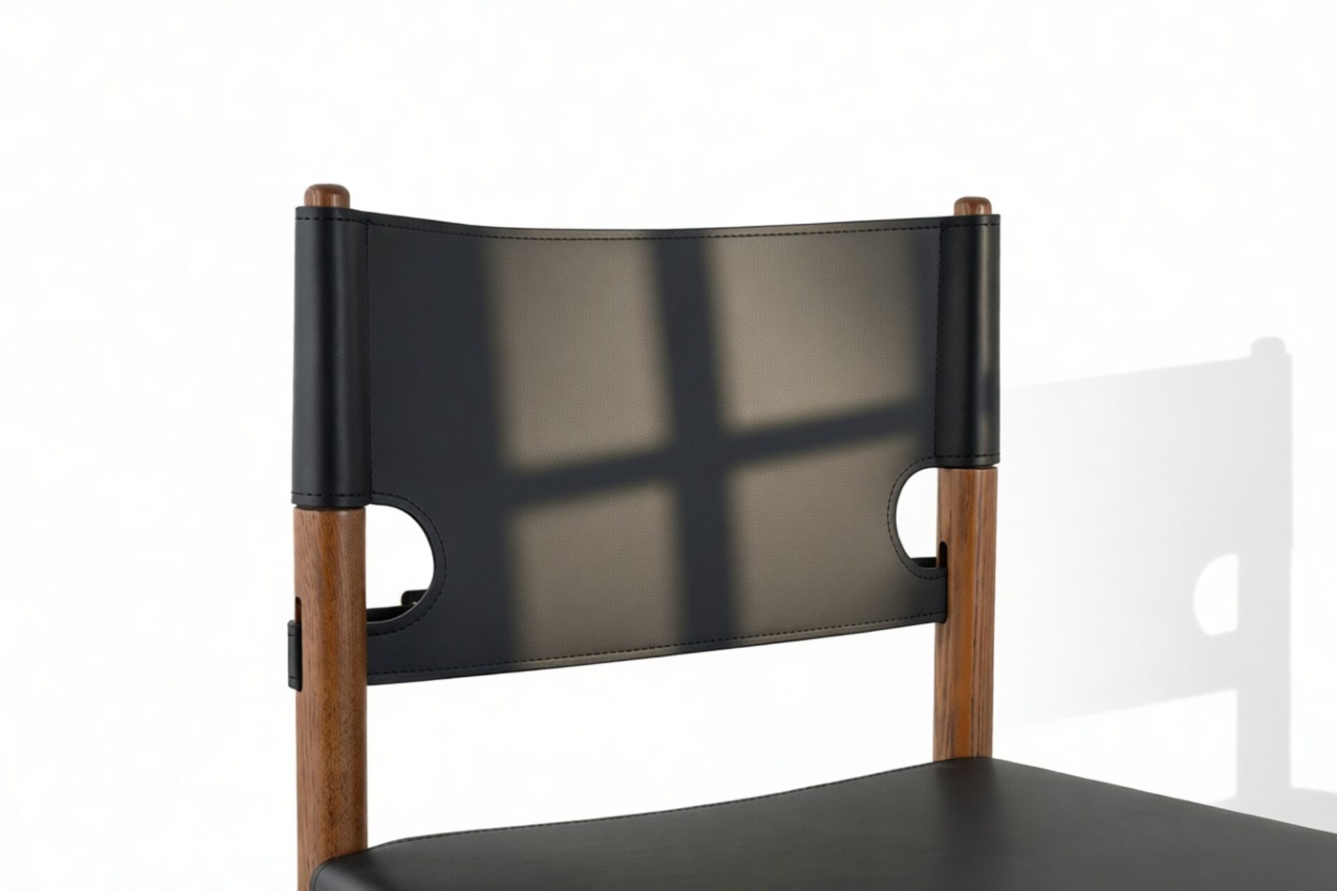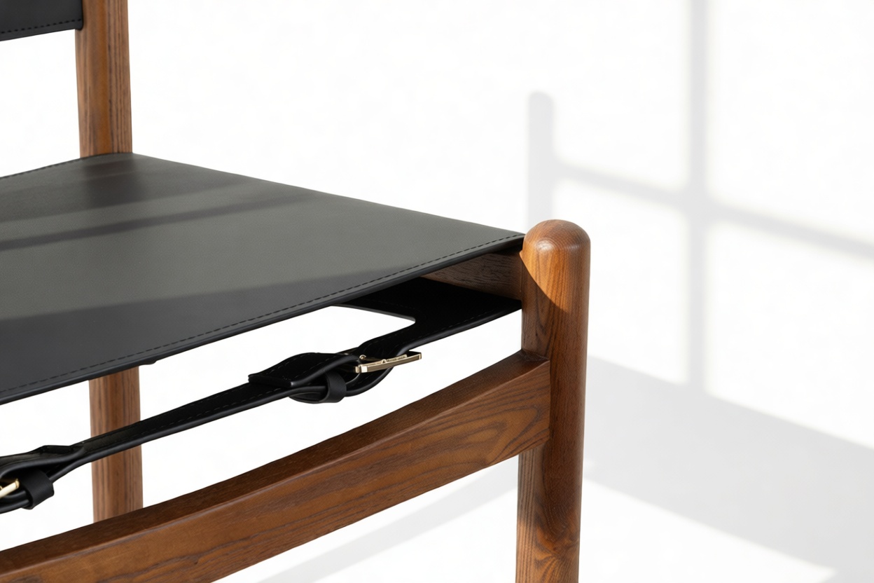 Experience ultimate comfort during mealtime with the Asger Dining Chair featuring a gently curved backrest and contoured sling seat. Crafted with carefully selected vegan leather upholstery, this chair exudes luxury and elegance, providing hours of comfortable seating and entertainment.