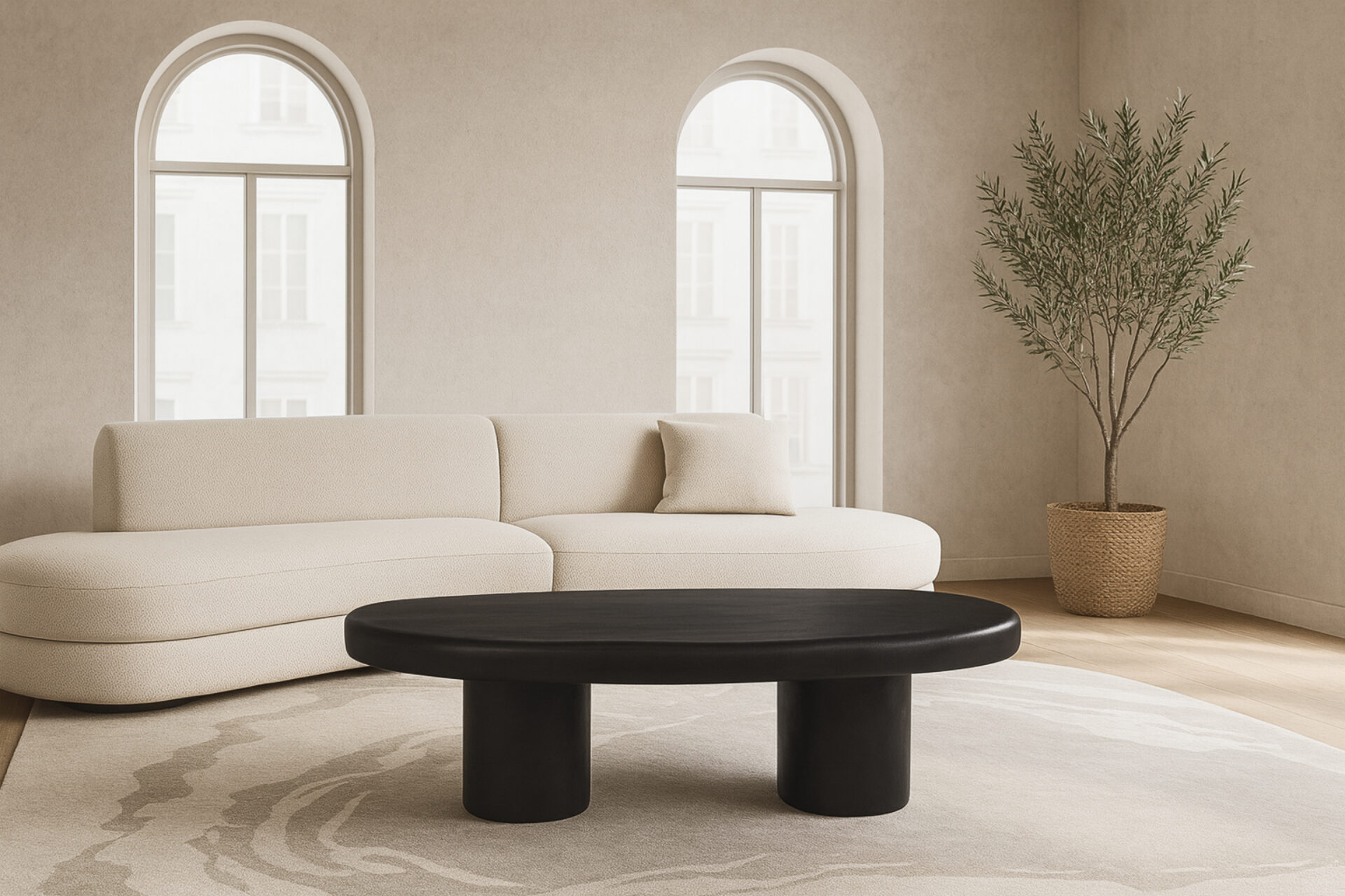 Introducing the Aster Coffee Table, a sleek testament to contemporary elegance blending nature-inspired design with industrial edge. Crafted meticulously, its black concrete surface mimics the smooth texture of river-polished stones, accentuating the table's rugged charm. Each unique piece boasts inherent variations, guaranteeing a one-of-a-kind addition to your living space. Elevate your decor with the chic and durable Aster Coffee Table, a stylish focal point that effortlessly captures attention and adds a touch of sleek sophistication to any setting.