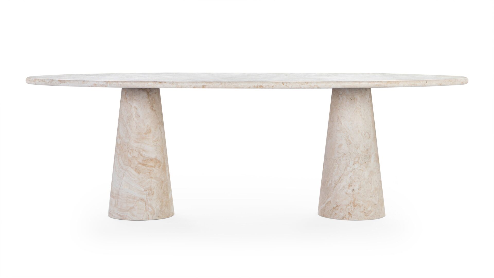 Experience the epitome of elegance with the Astora Dining Table, featuring gracefully tapered pedestals and a seamlessly rounded top. Its smooth curves and organic qualities create a sculptural design that exudes understated beauty, captivating the eye effortlessly. The intentional design of the Astora Dining Table makes it a captivating focal point, highlighting its luxurious allure and timeless beauty. Each Astora Dining Table is uniquely individual, ensuring that no two tables are alike.