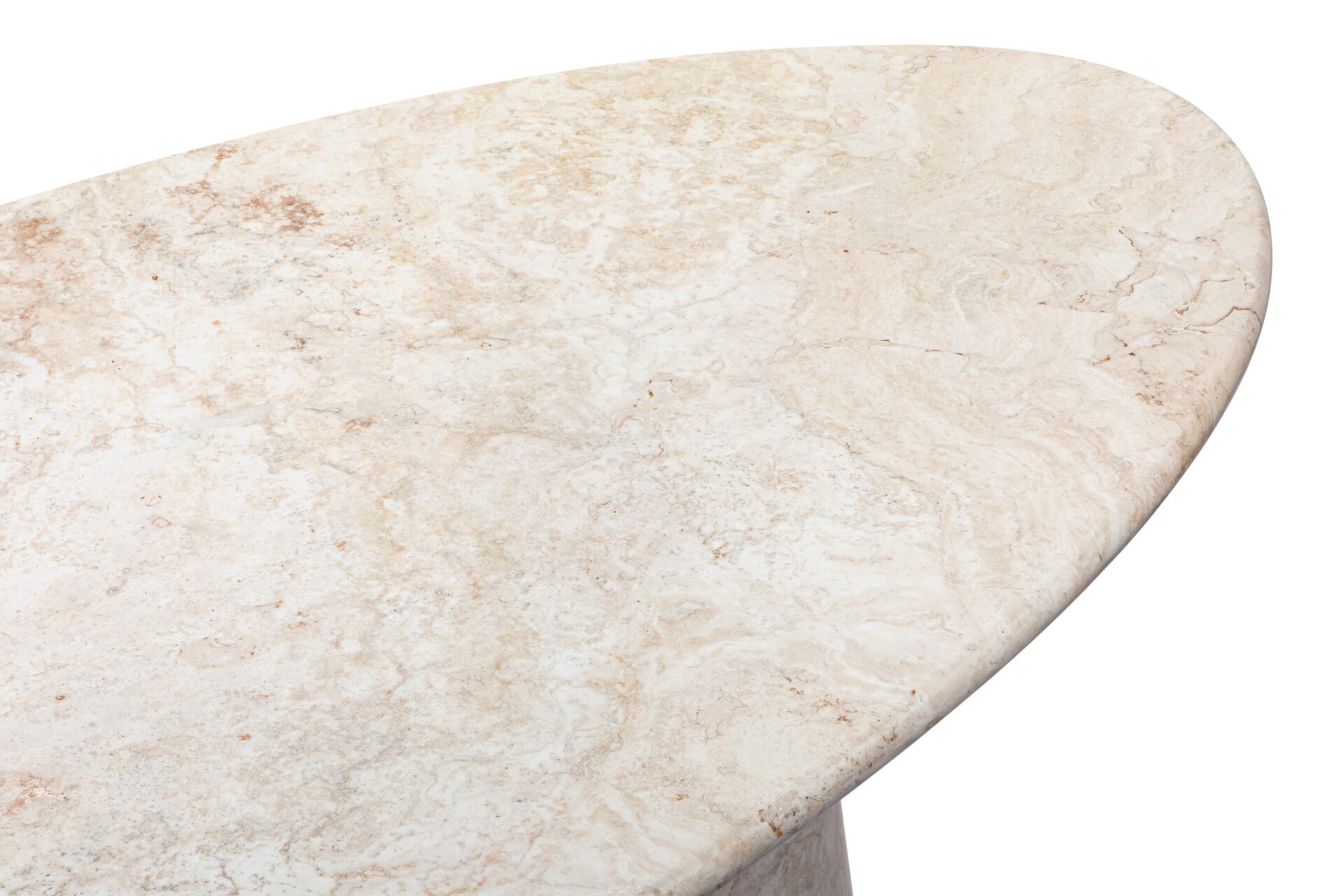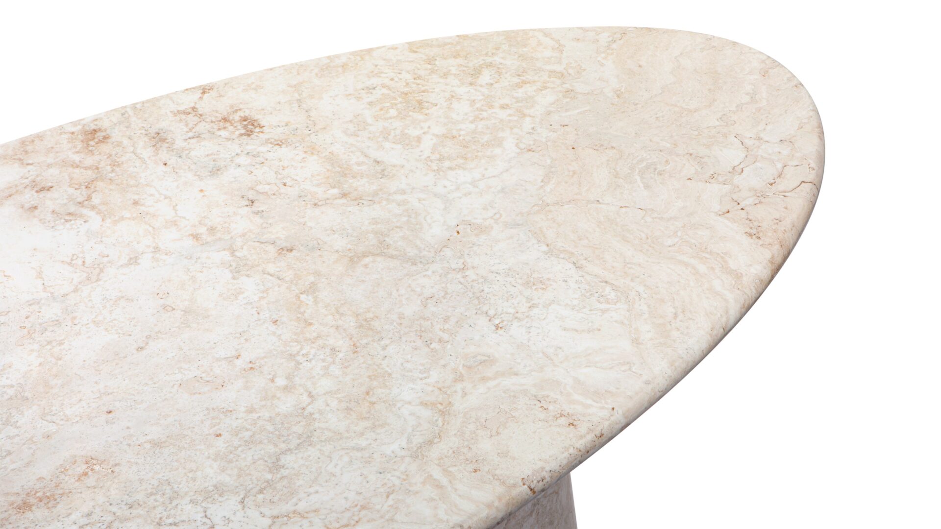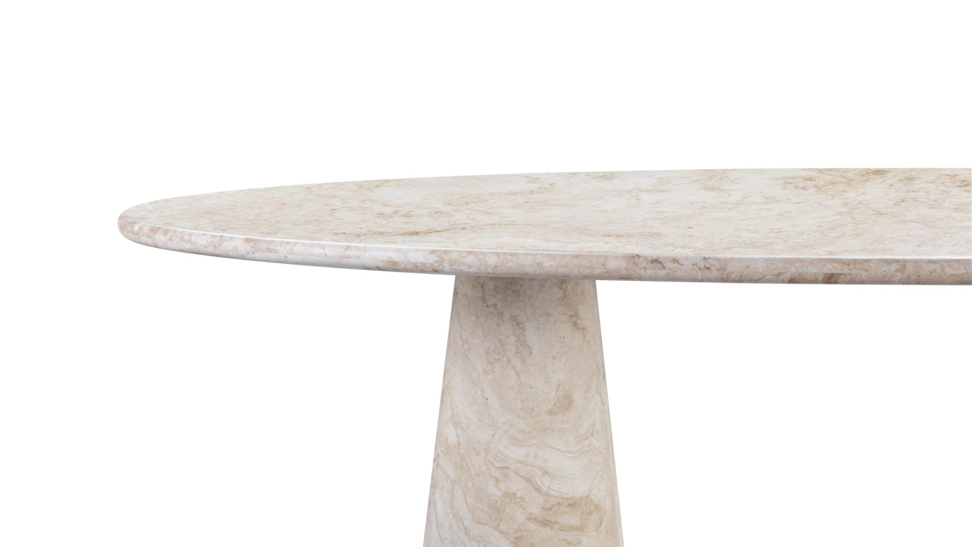 Indulge in sophistication with the Astora Dining Table, crafted with exquisite artistry. Inspired by nature, its organic travertine allure transforms it into a harmonious sculpture of elegant design. Every detail, from the tapered pedestals to the seamless top, celebrates fine craftsmanship and individuality, making each table a captivating focal point of luxury and timeless beauty.