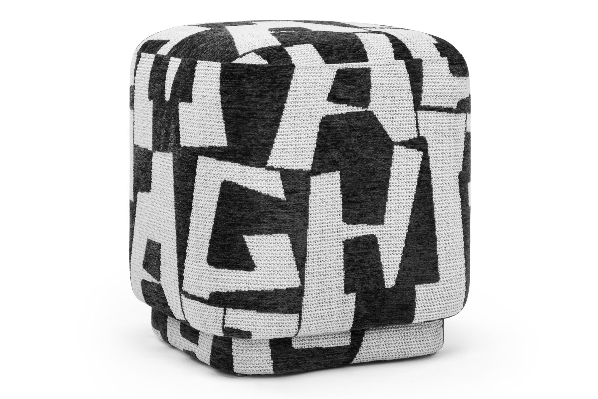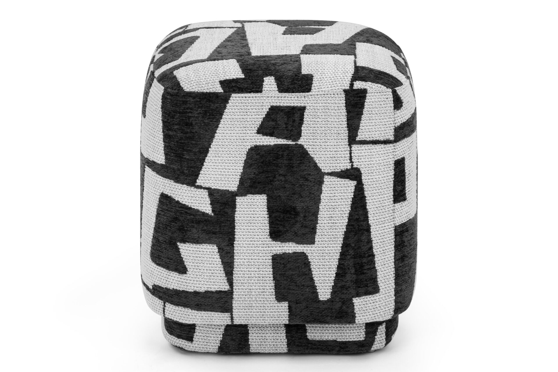 Introducing the Astratto Ottoman, a contemporary and chic piece that brings a bold, graphic element to any setting. Featuring a square shape with gently rounded edges, this ottoman exudes a modern and welcoming vibe. The striking black-and-white abstract pattern, inspired by typography, delivers a powerful visual impact. Upholstered in a textured fabric, it offers a sophisticated and tactile feel, seamlessly complementing various decor styles.