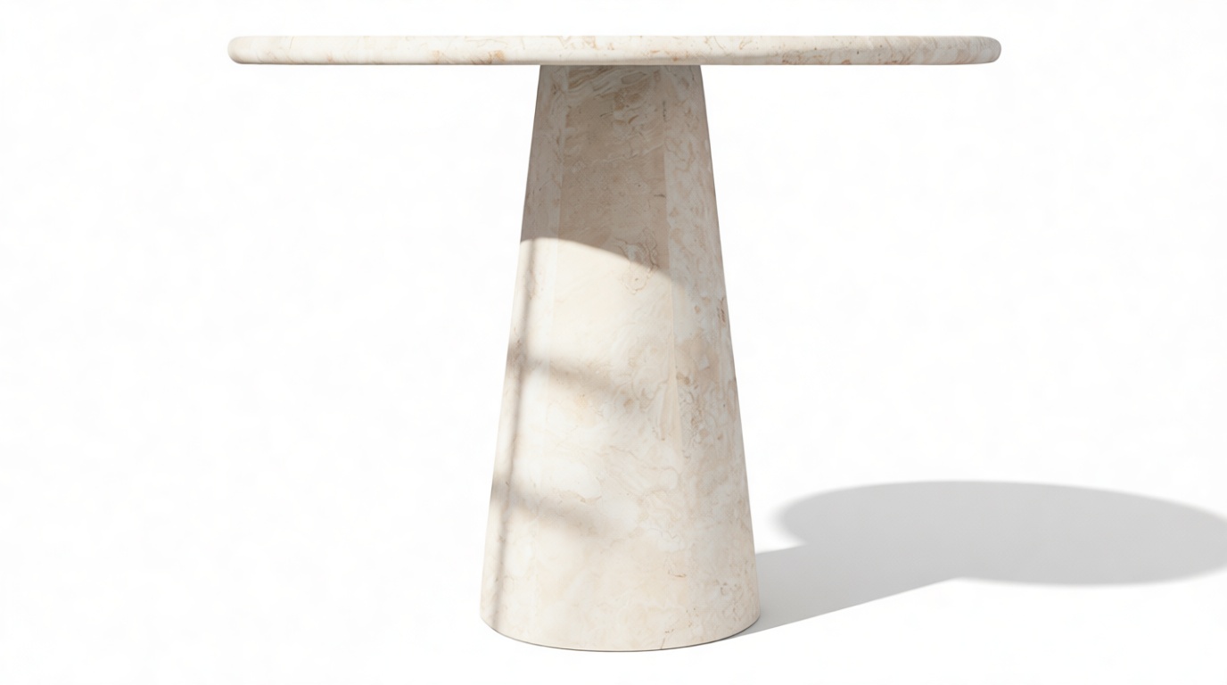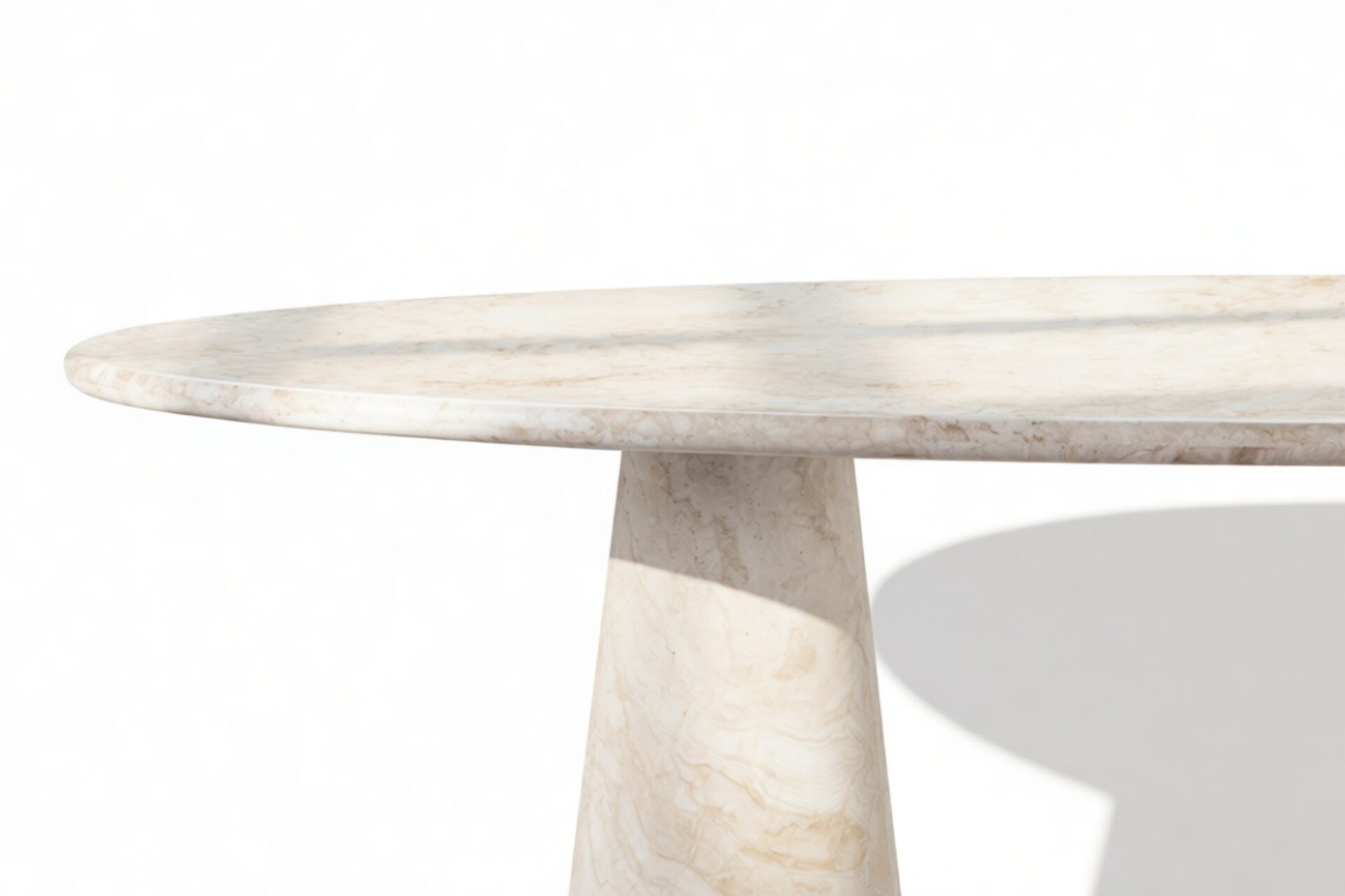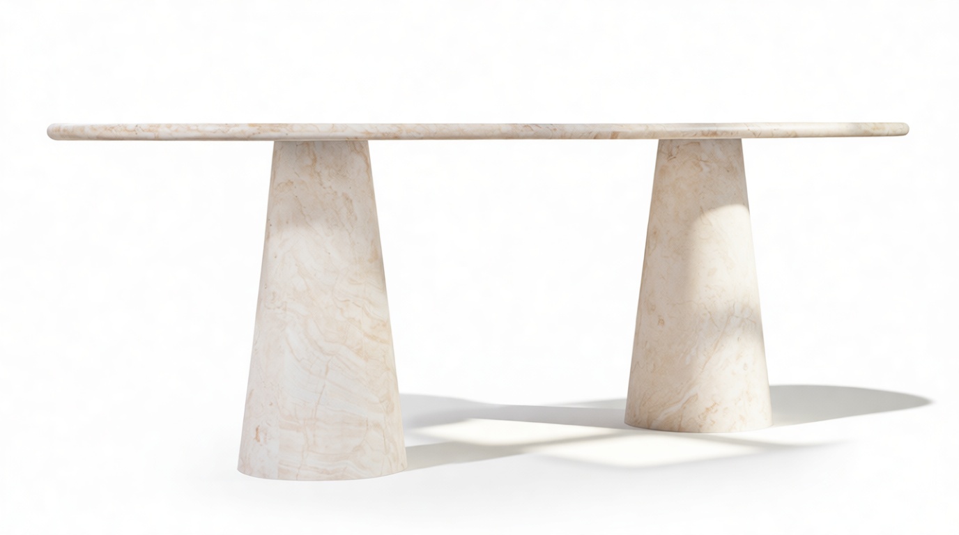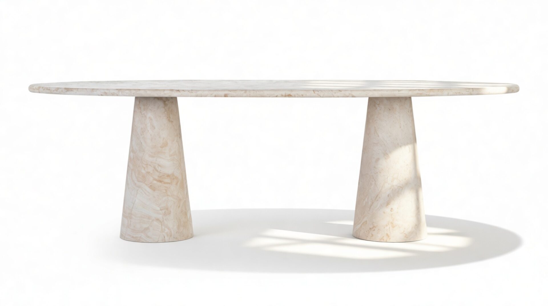 The tapered pedestals of the product enhance the table's visual harmony, introducing a fluid and sculptural elegance that complements its overall aesthetic. Every detail of the product contributes to an atmosphere that transcends ordinary dining experiences, celebrating the fine craftsmanship and attention to detail.