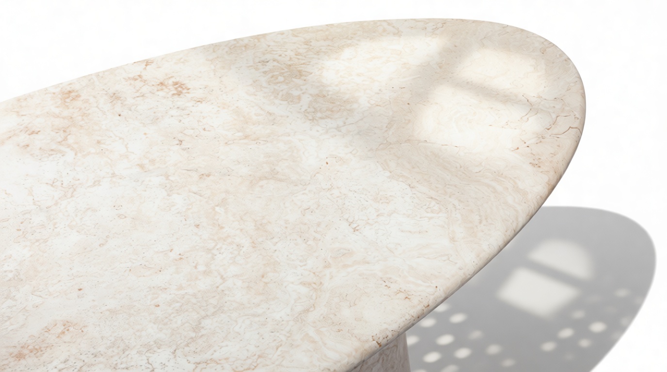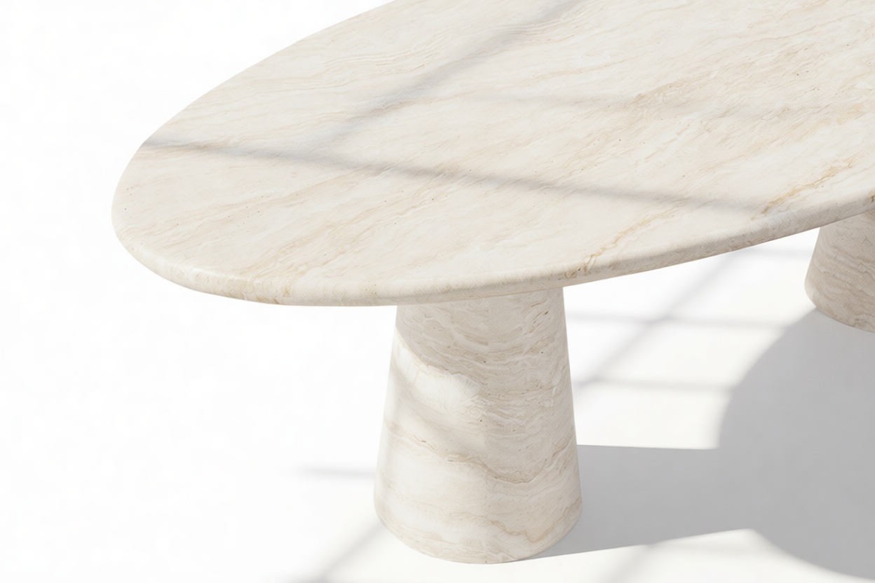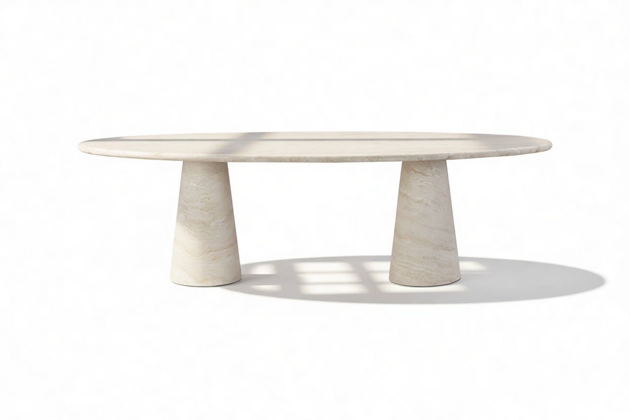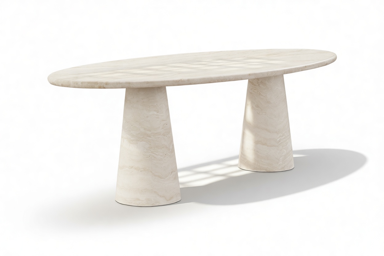 Astur Oval Dining Table, White Travertine