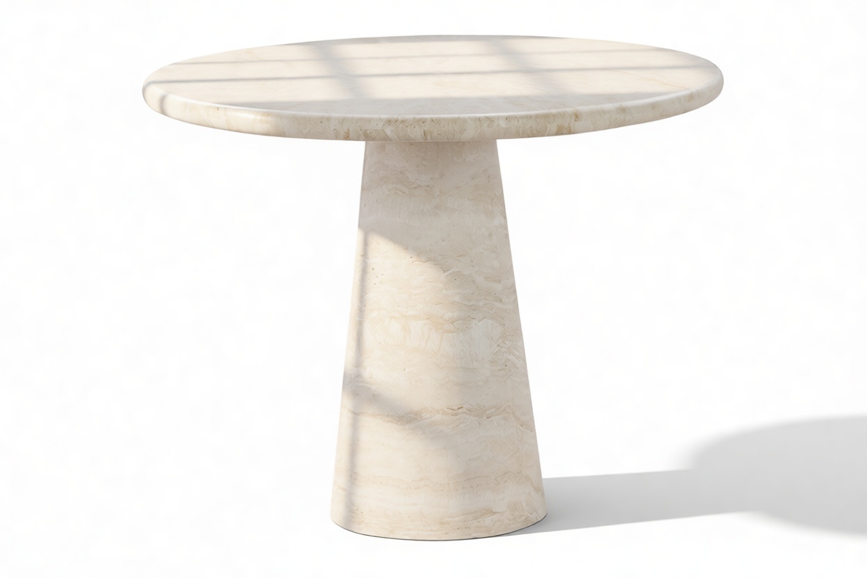 Indulge in sophistication with the Astur Dining Table, crafted with exquisite artistry. Inspired by nature, its organic travertine allure transforms it into a harmonious sculpture of elegant design. Every detail, from the tapered pedestals to the seamless top, celebrates fine craftsmanship and individuality, making each table a captivating focal point of luxury and timeless beauty.