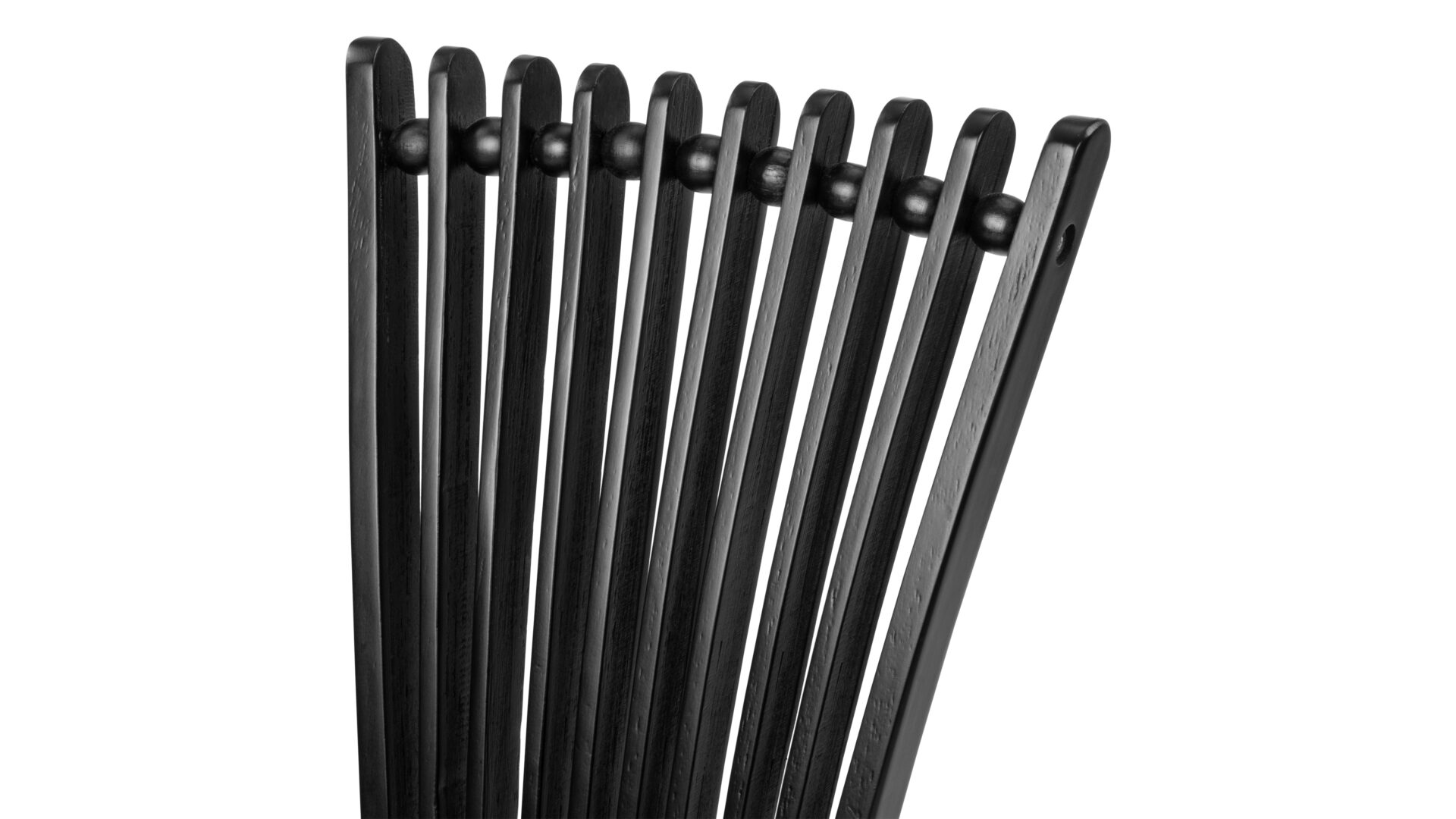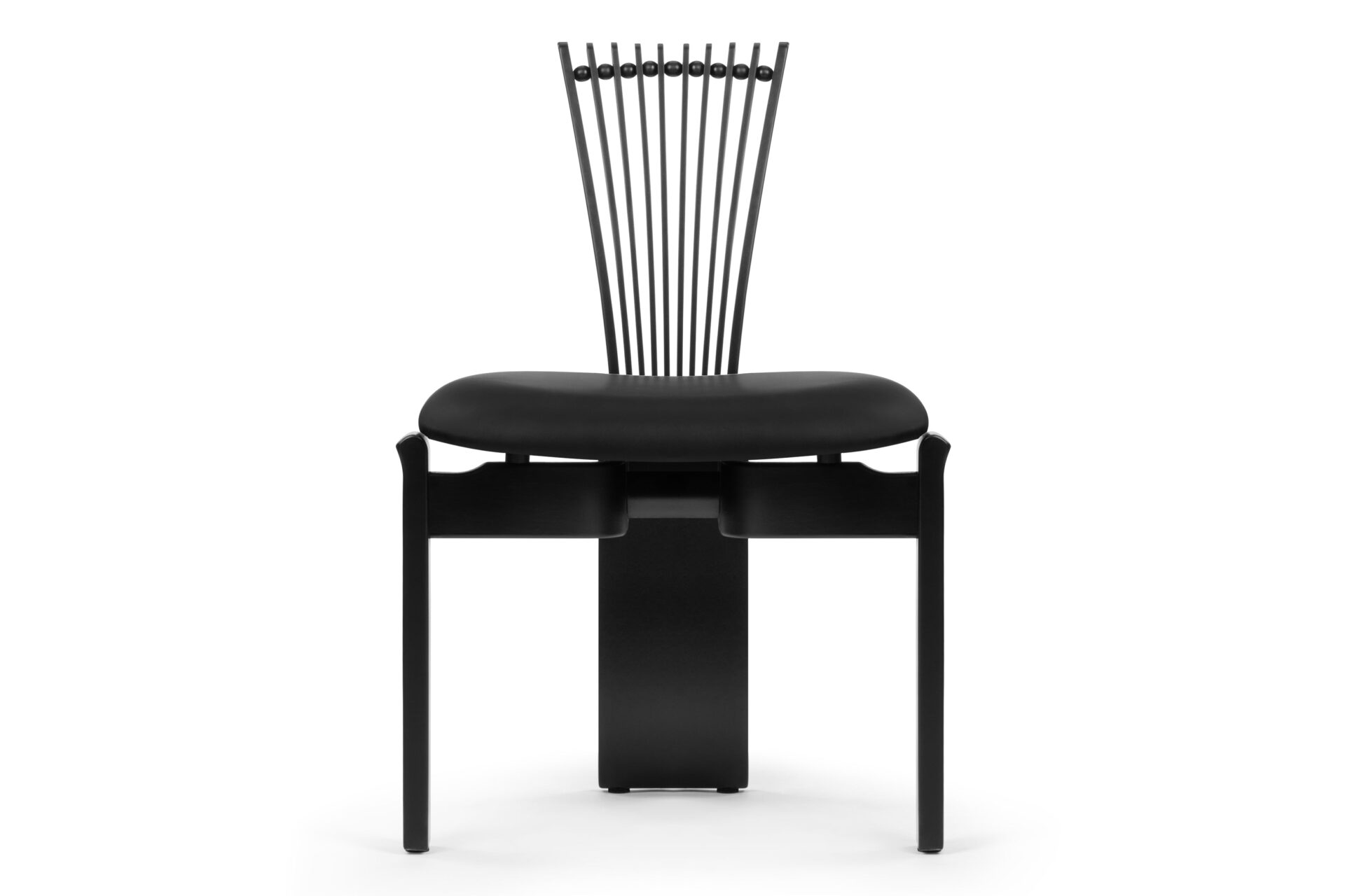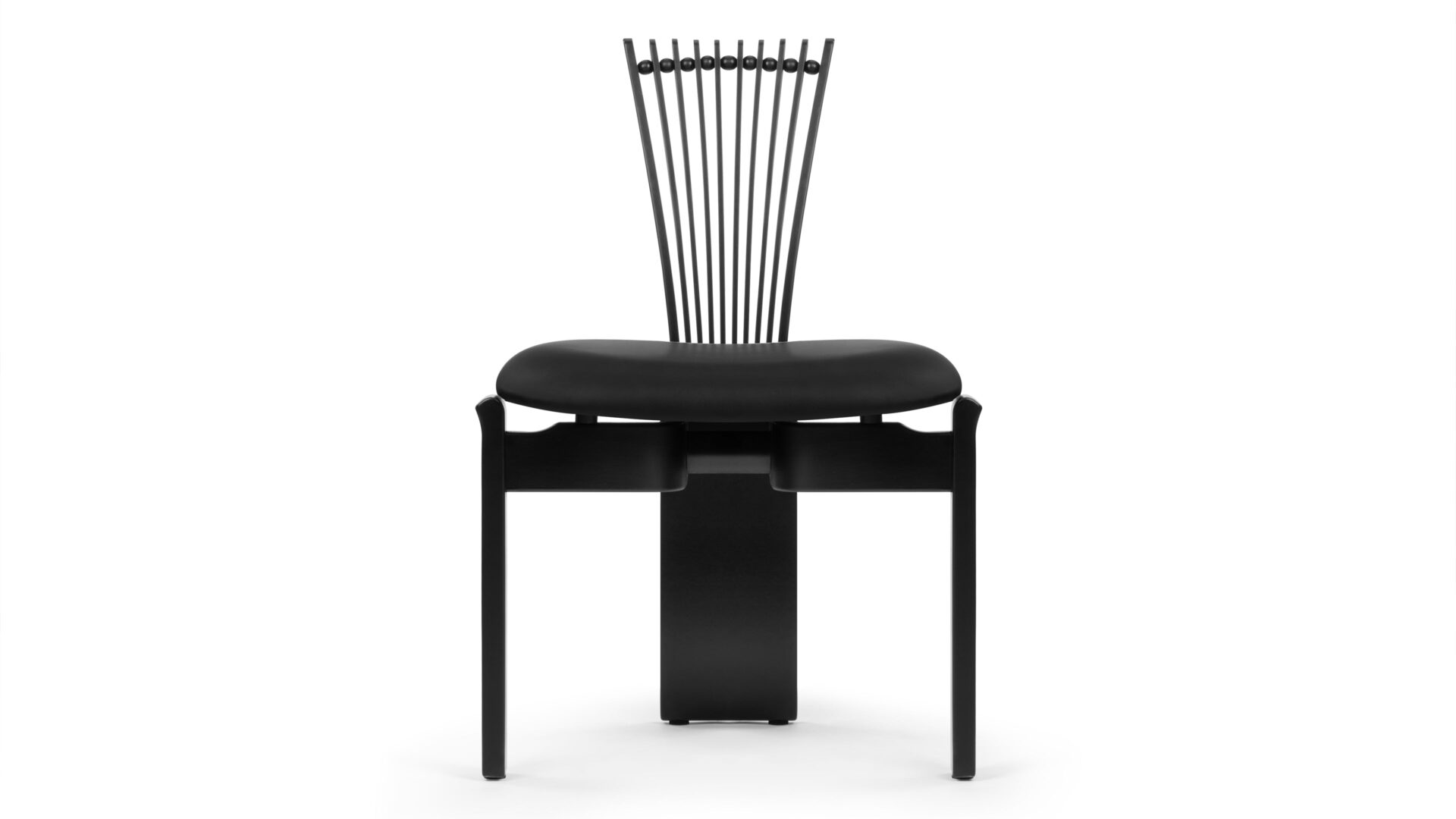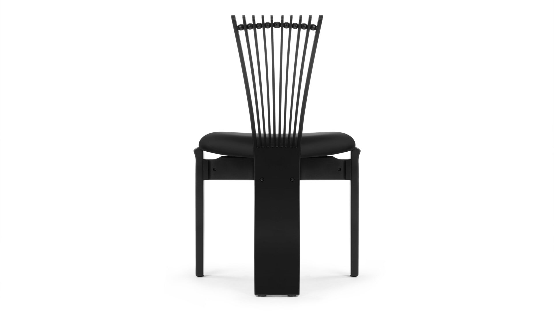 Experience the striking modern charm of the Asuka Side Chair. Boasting a distinctive backrest adorned with curving wooden pieces and ball detailing, this chair showcases a sleek and contemporary design. Its minimalist black finish and clean lines ensure it stands out as a remarkable addition to any space.