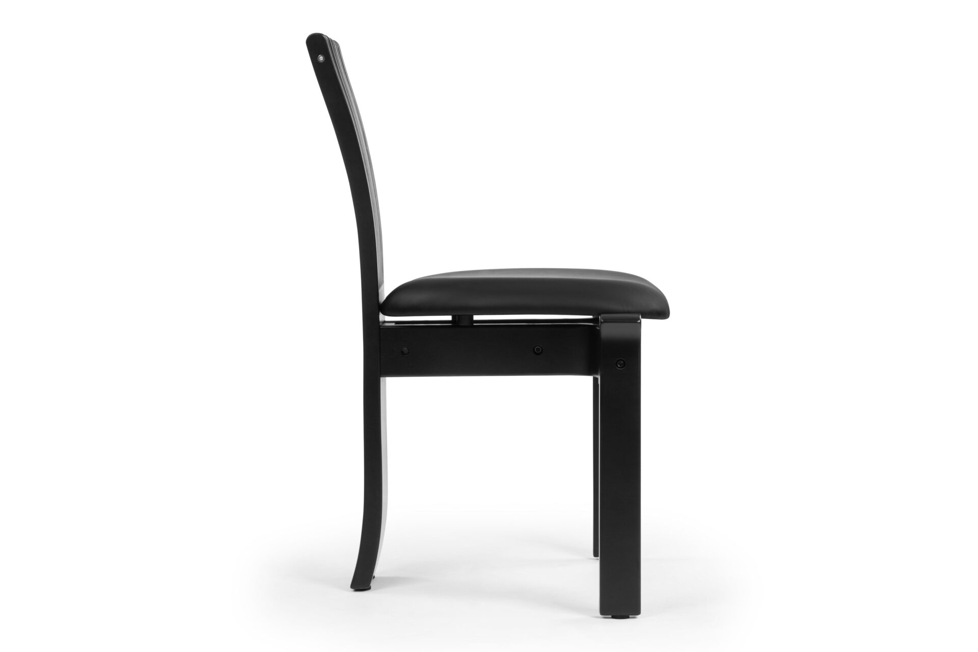 Handcrafted from sturdy beech wood, the Asuka Side Chair features a vegan leather seat with plush foam padding for extra comfort. Its sleek matte black finish elevates its contemporary aesthetic while guaranteeing longevity and sophistication.