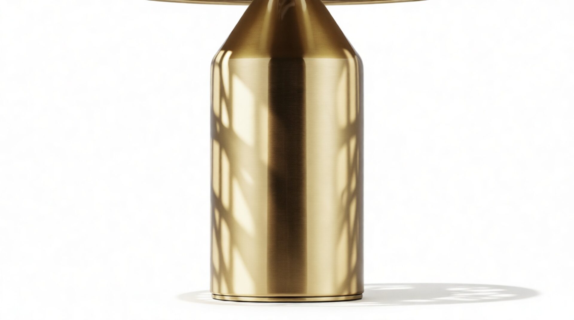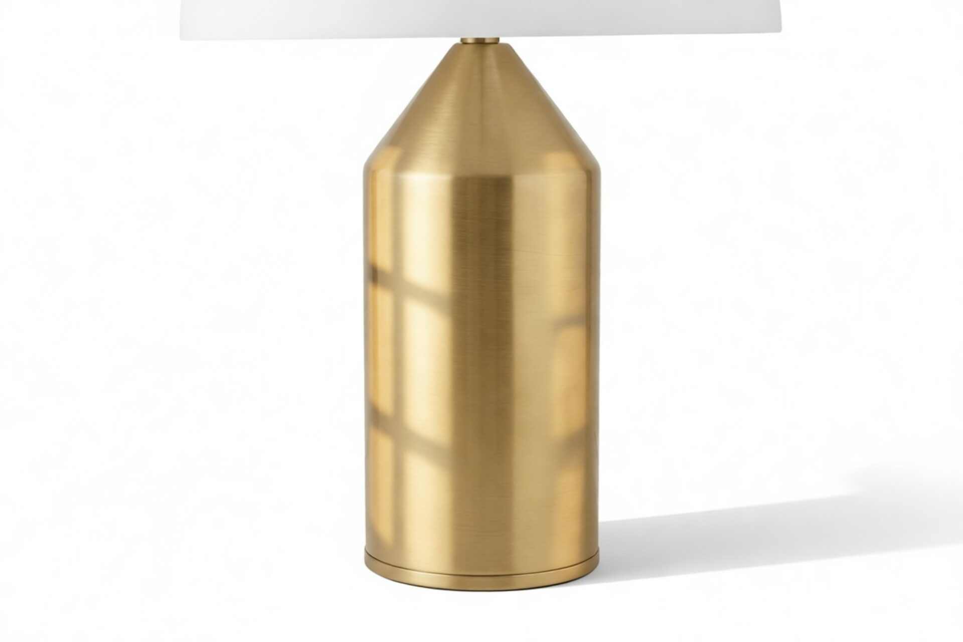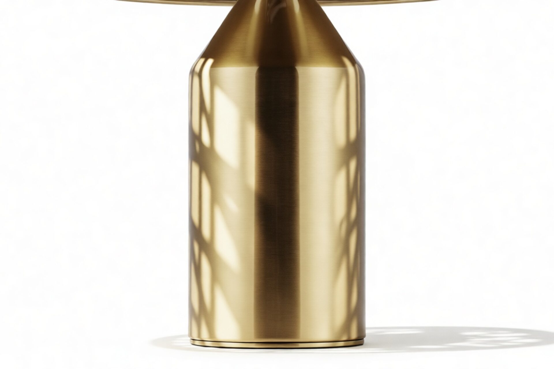This table lamp juxtaposes sculptural elegance with artisanal skill. The outcome is an emblematic silhouette showcasing a cylindrical base that tapers towards a cone and is crowned with a distinctive dome shape. These geometric features culminate in a genuinely striking appearance.