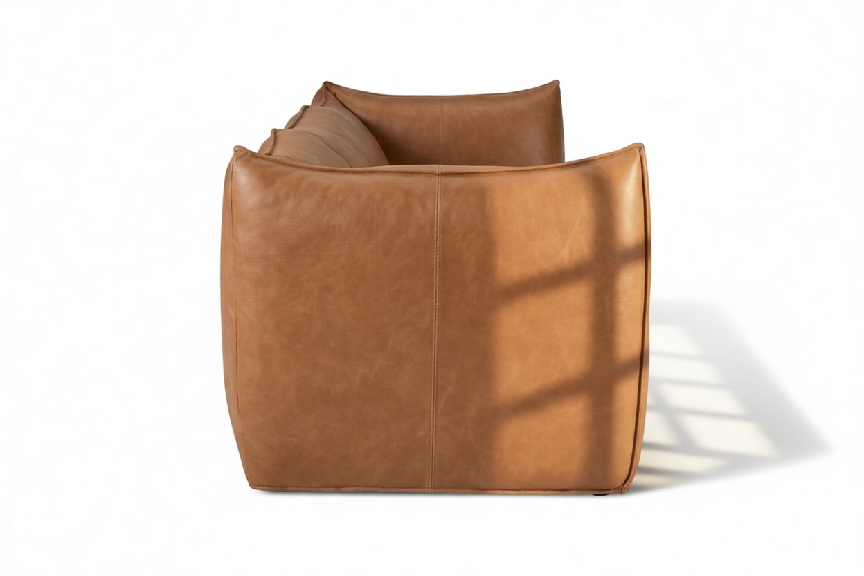 Introducing the Bambole Sofa - a prime embodiment of modern luxury seating that transcends conventional design. Crafted with genuine artistry and visionary creativity, its distinctive shape and smooth curves effortlessly captivate attention. Meticulously tailored with Chestnut Vegan Leather, it's a true masterpiece that exudes opulence and meticulous craftsmanship. Immerse yourself in its sumptuous cushions for a snug and luxurious experience, embodying a perfect blend of style and comfort.