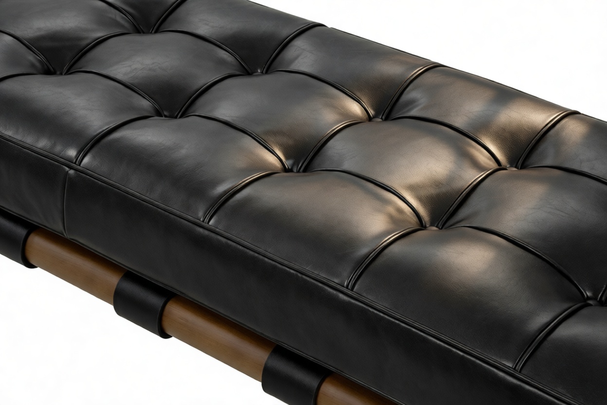 Unveil the Barcelona Bench, a contemporary essential blending timeless elegance with a minimalist design. Crafted with opulent Midnight Black Premium Leather, this iconic two-seater piece exudes luxury and sophistication. With its sleek lines and focus on functional beauty, this bench is both stylish and practical, creating a sophisticated ensemble in any home.