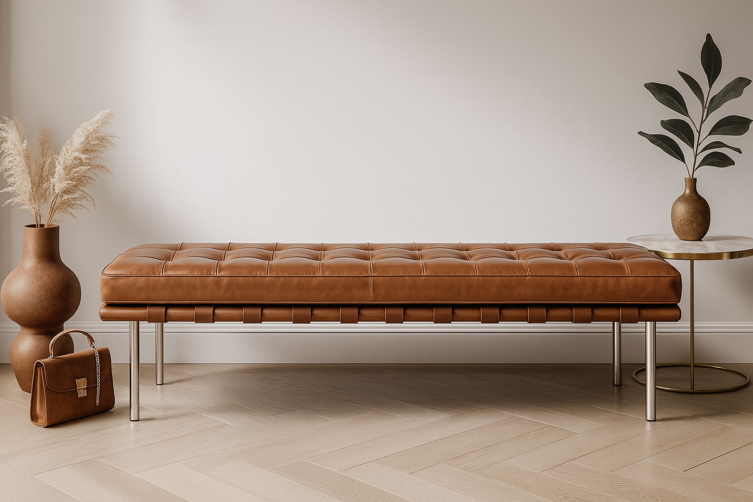 Discover a timeless icon that has evolved into a contemporary essential – the Barcelona Bench. This extraordinary piece of modern furniture design perfectly embodies a minimalist approach. With its sleek lines, unembellished rectangular shape, and focus on functional beauty rather than excessive decoration, the bench is both elegant and practical. Its understated charm makes it a stylish choice for any home.