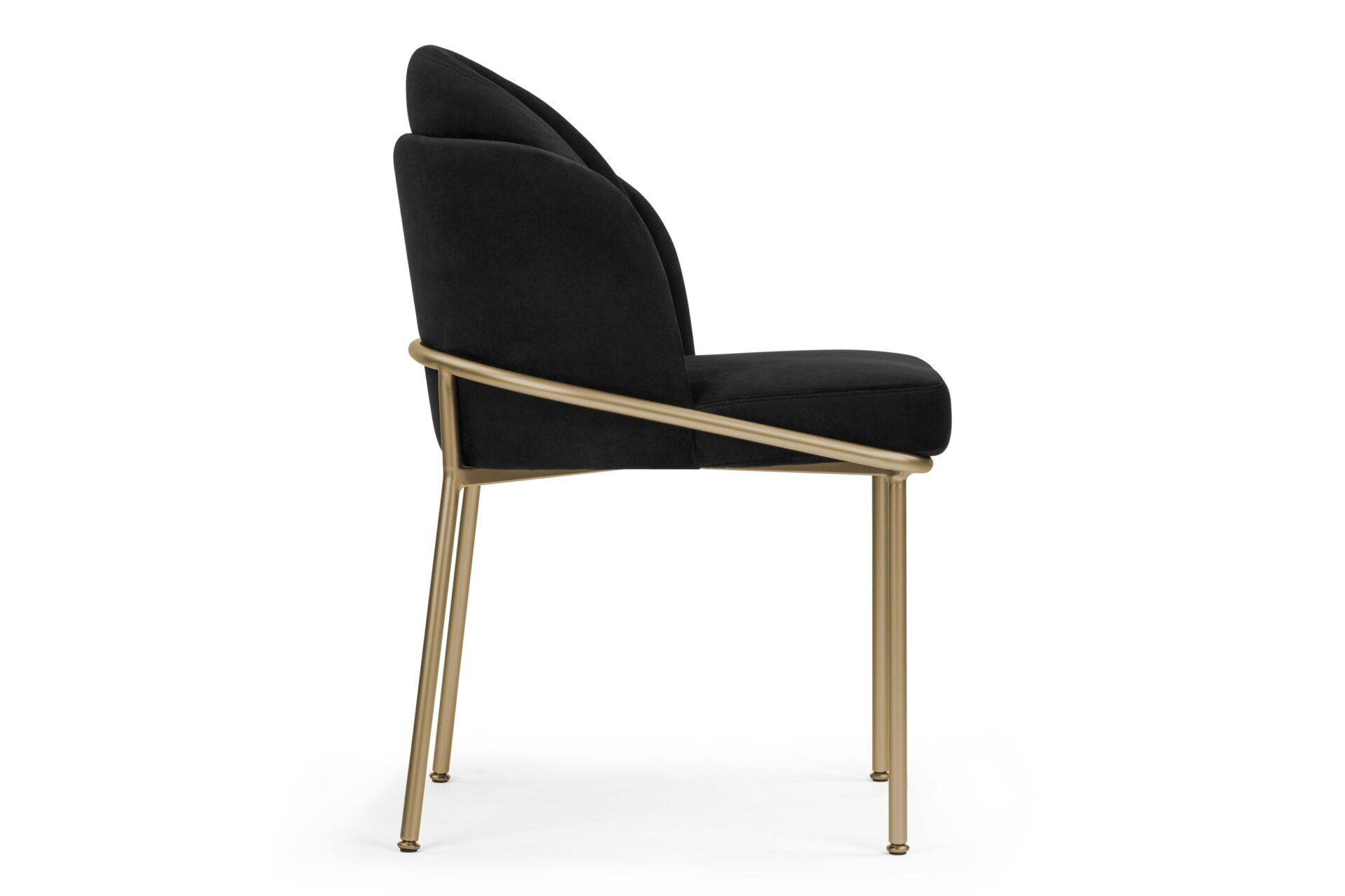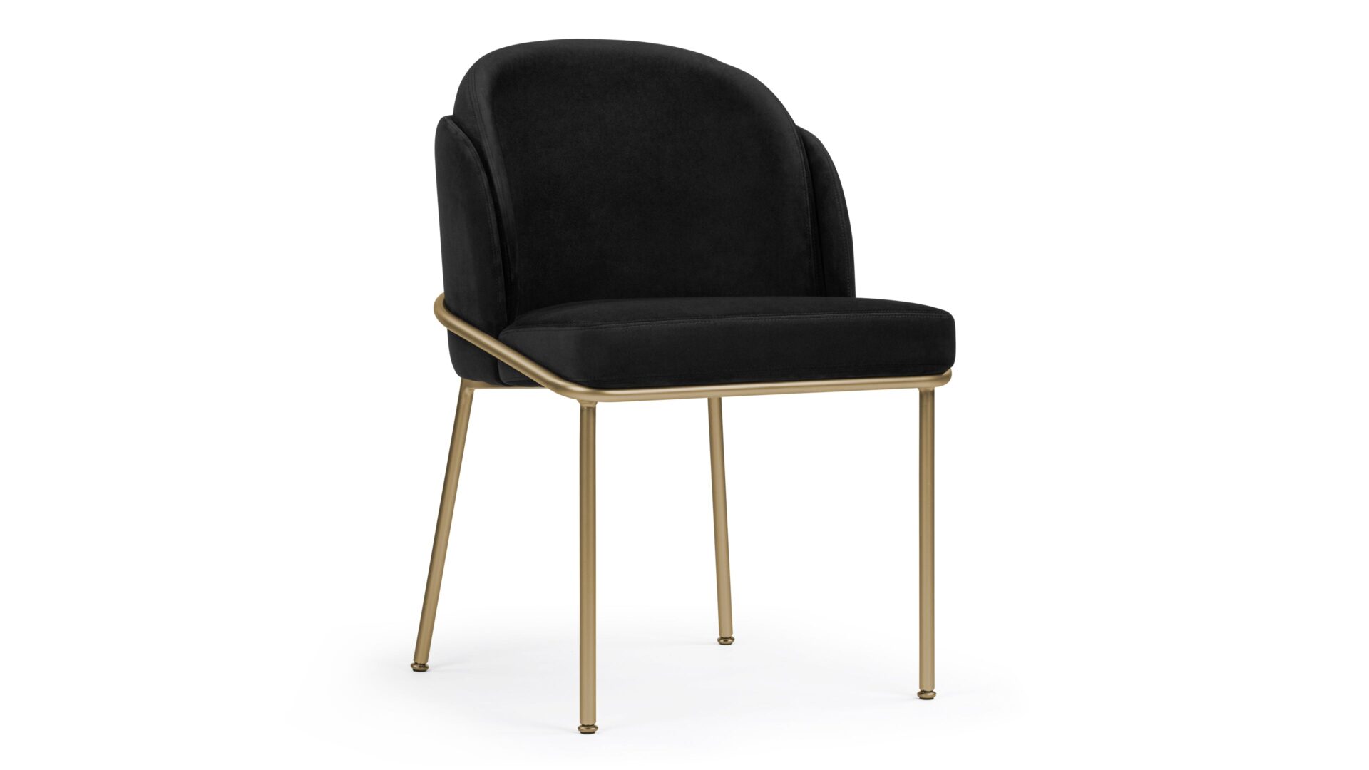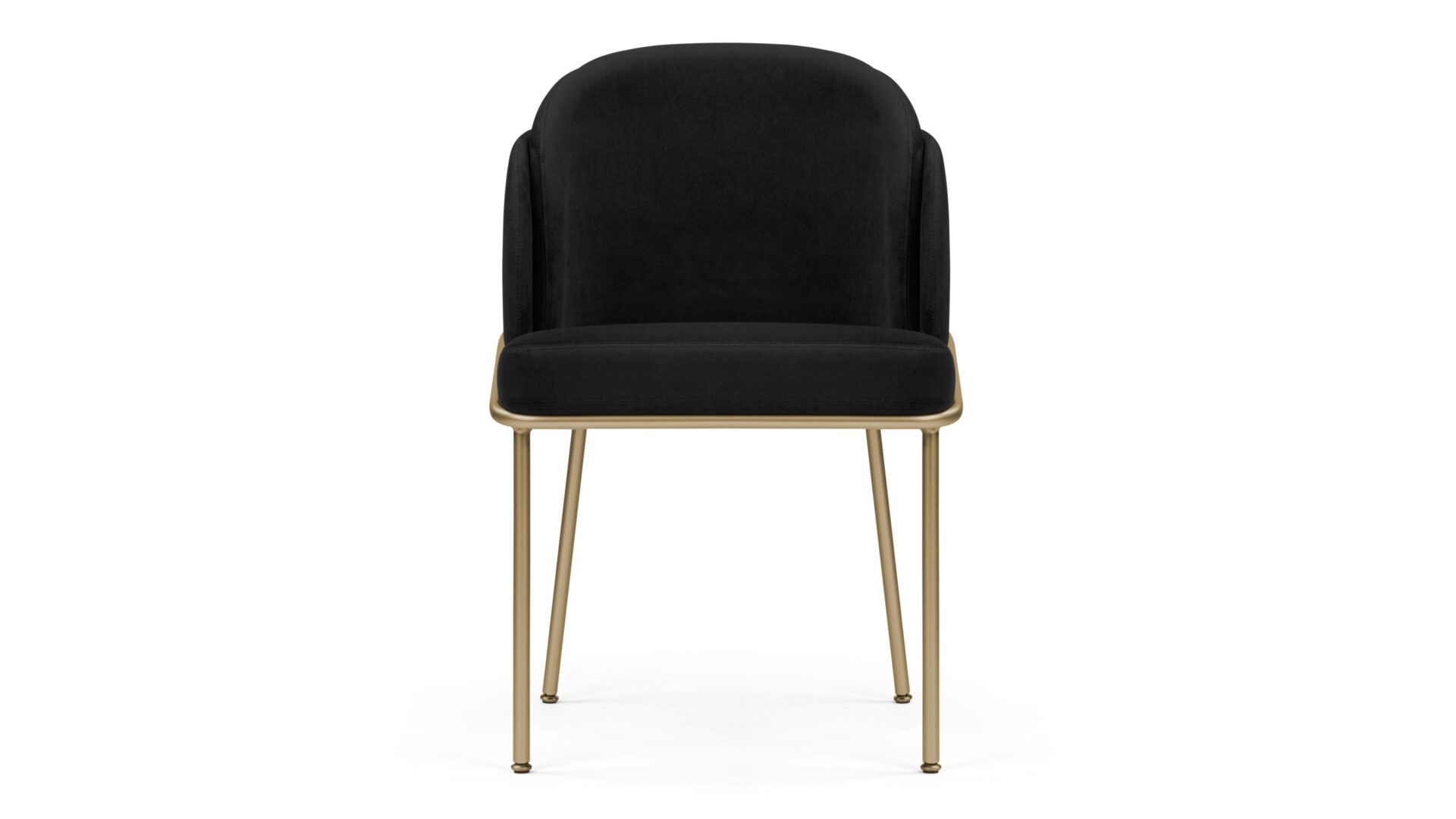 Elevate your dining area with the stylish Baruch Dining Chair. Crafted in luxurious black velvet and accented with brass legs, this piece exudes modern sophistication. The chair boasts a harmonious fusion of curves and sturdy metal structure for both comfort and style. A chic addition to any contemporary space, the Baruch Dining Chair offers a streamlined silhouette and enhanced comfort for prolonged sitting sessions.