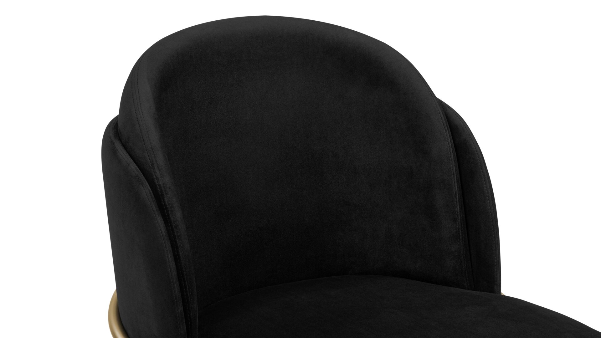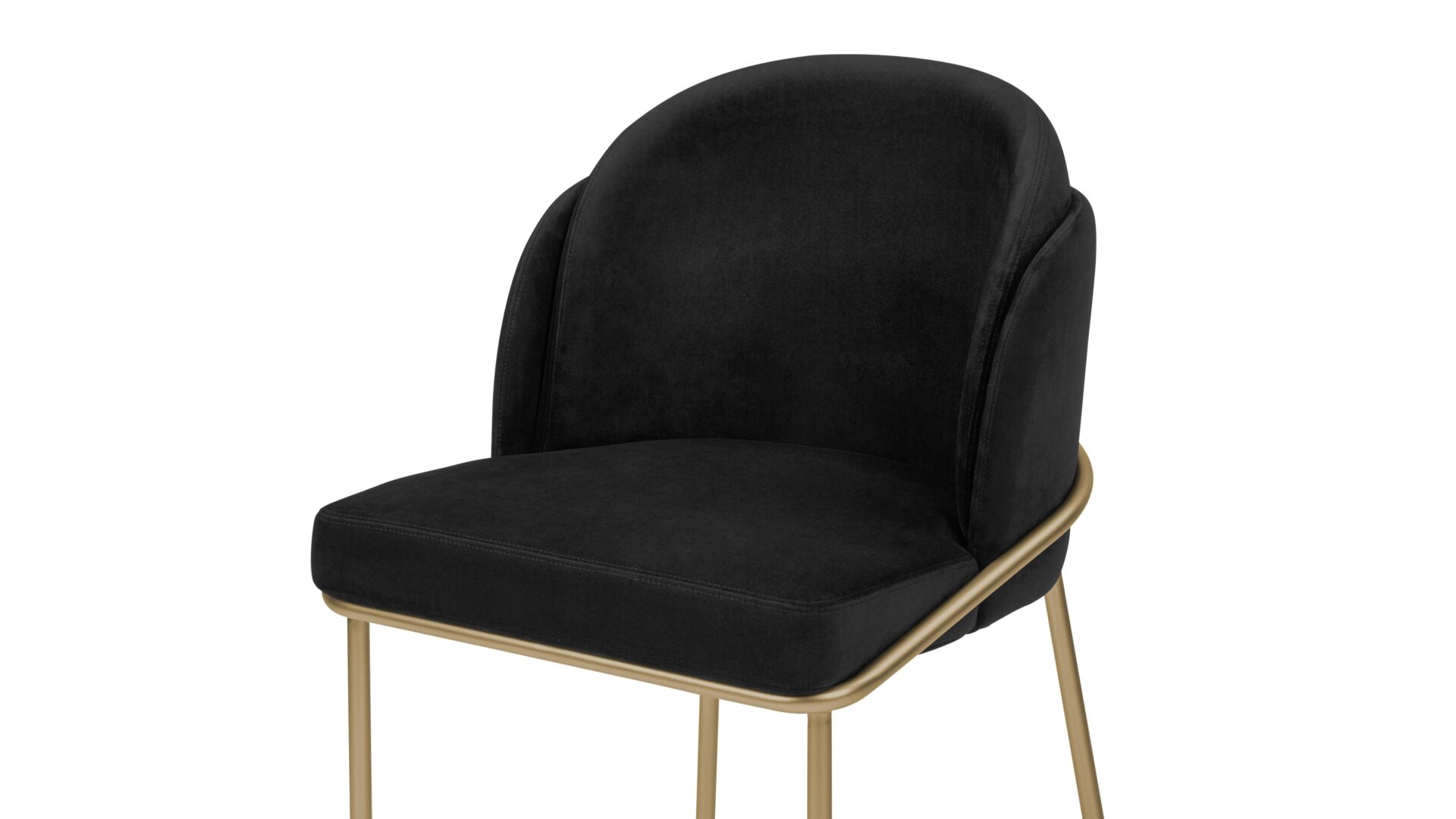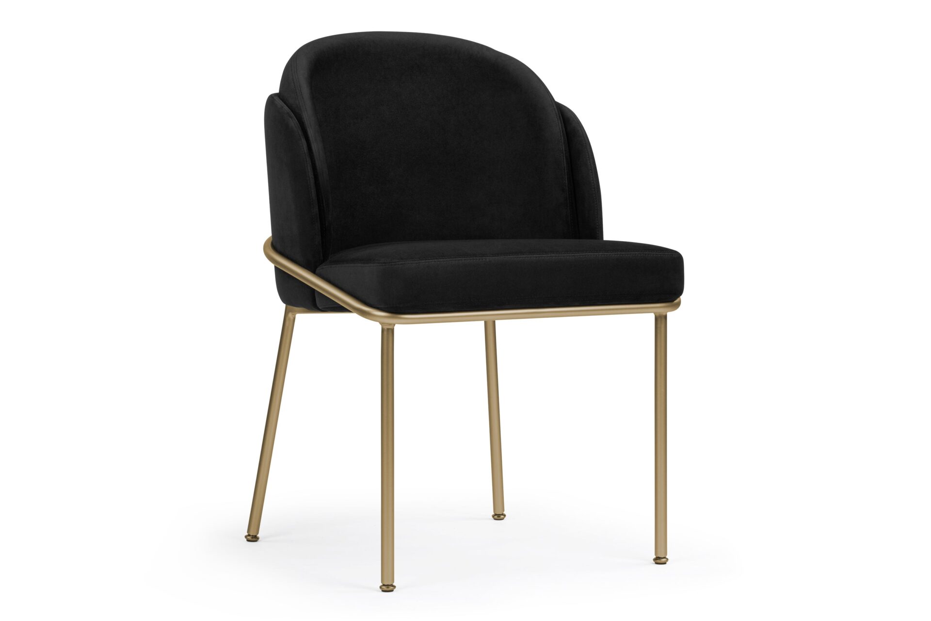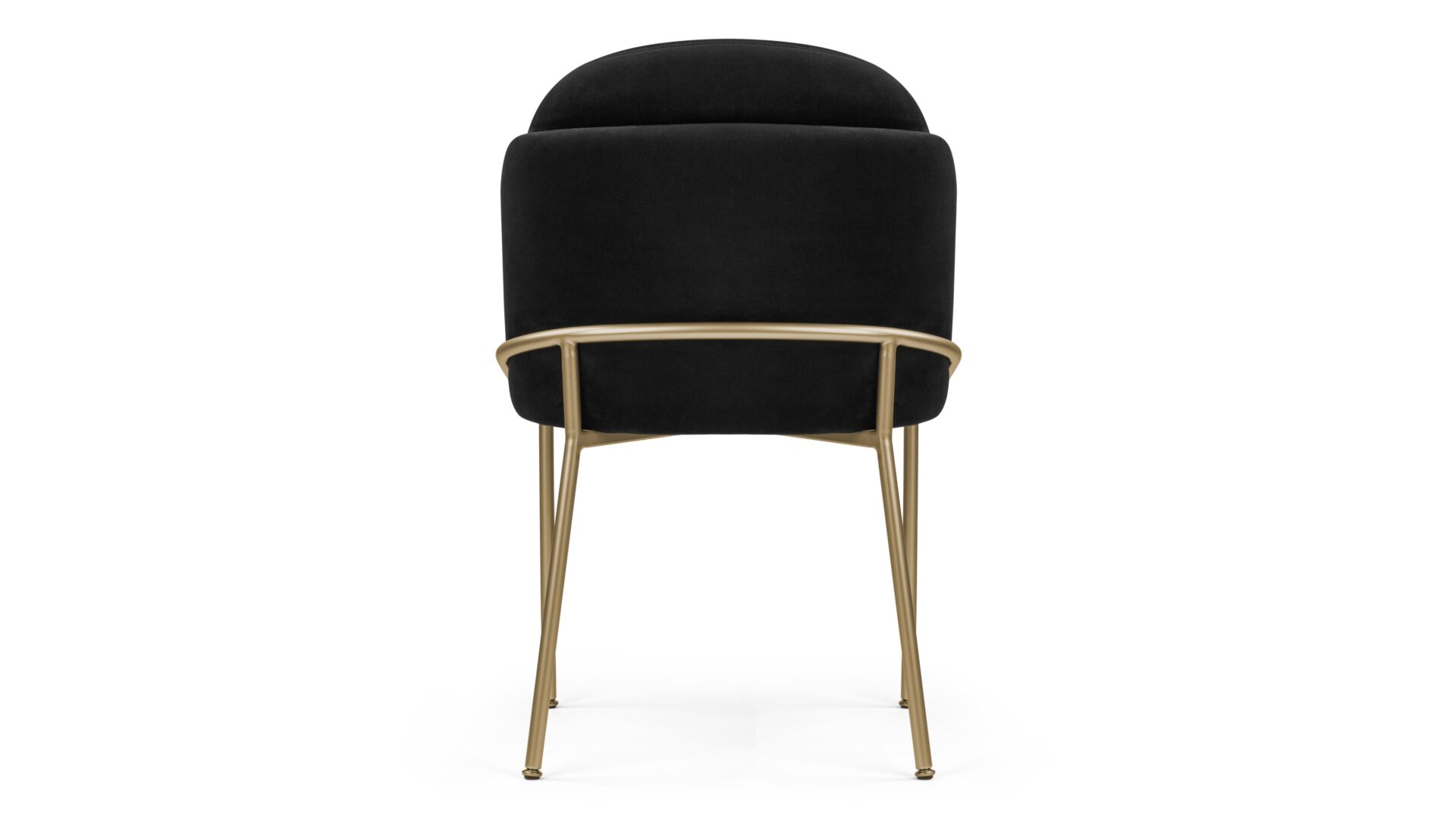 Elevate your dining area with the stylish Baruch Dining Chair. Crafted in luxurious black velvet and accented with brass legs, this piece exudes modern sophistication. The chair boasts a harmonious fusion of curves and sturdy metal structure for both comfort and style. A chic addition to any contemporary space, the Baruch Dining Chair offers a streamlined silhouette and enhanced comfort for prolonged sitting sessions.