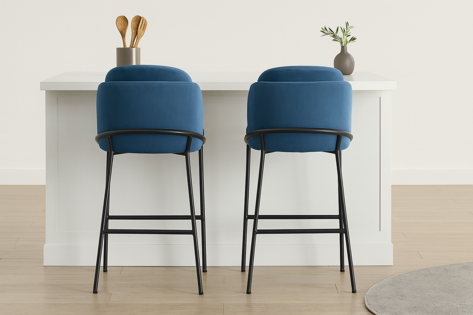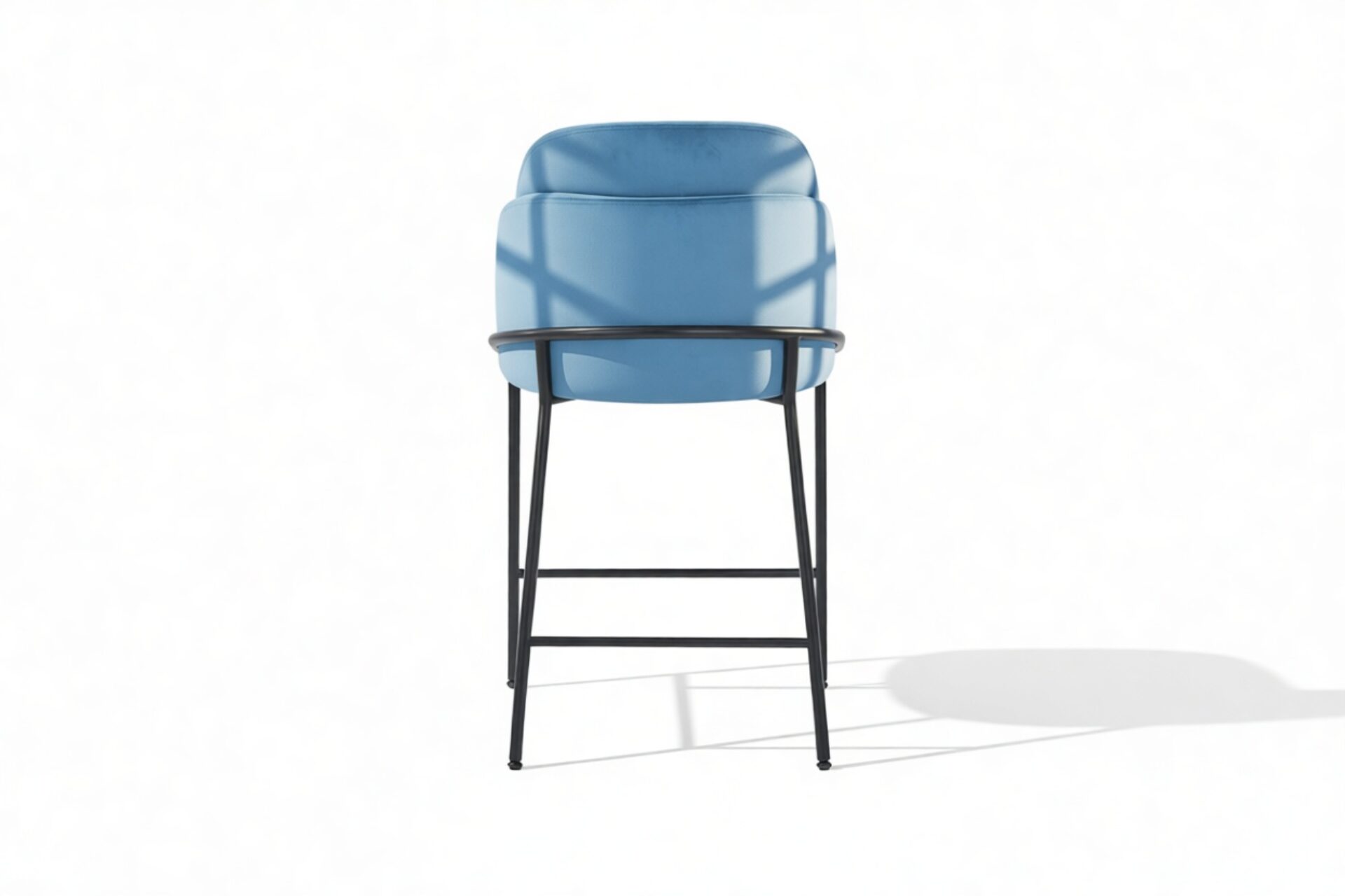 Elevate your counter area with the chic Aegean Blue Velvet Baruch Counter Stool. Blending bold velvet upholstery with sleek black metal legs, this stool exudes modern sophistication. Designed for comfort, its curved back and cushioned segment offer ergonomic support, while the streamlined structure with matte black finish adds a touch of elegance to your space.