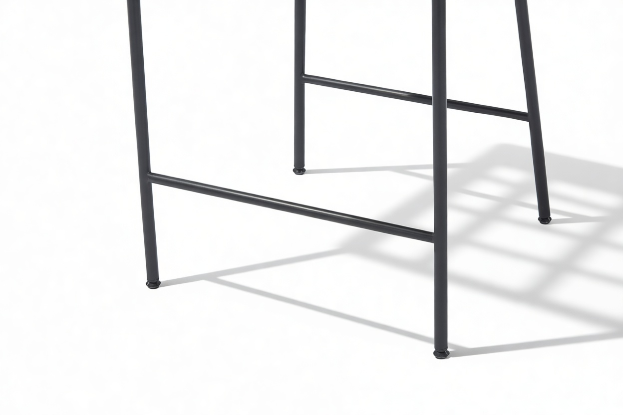 Elegantly crafted with a slender tubular metal frame, this design seamlessly blends curves and gentle edges with a sophisticated matte black finish. The sleek metal framework extends gracefully into the legs, each capped with plastic stoppers to safeguard delicate flooring surfaces.